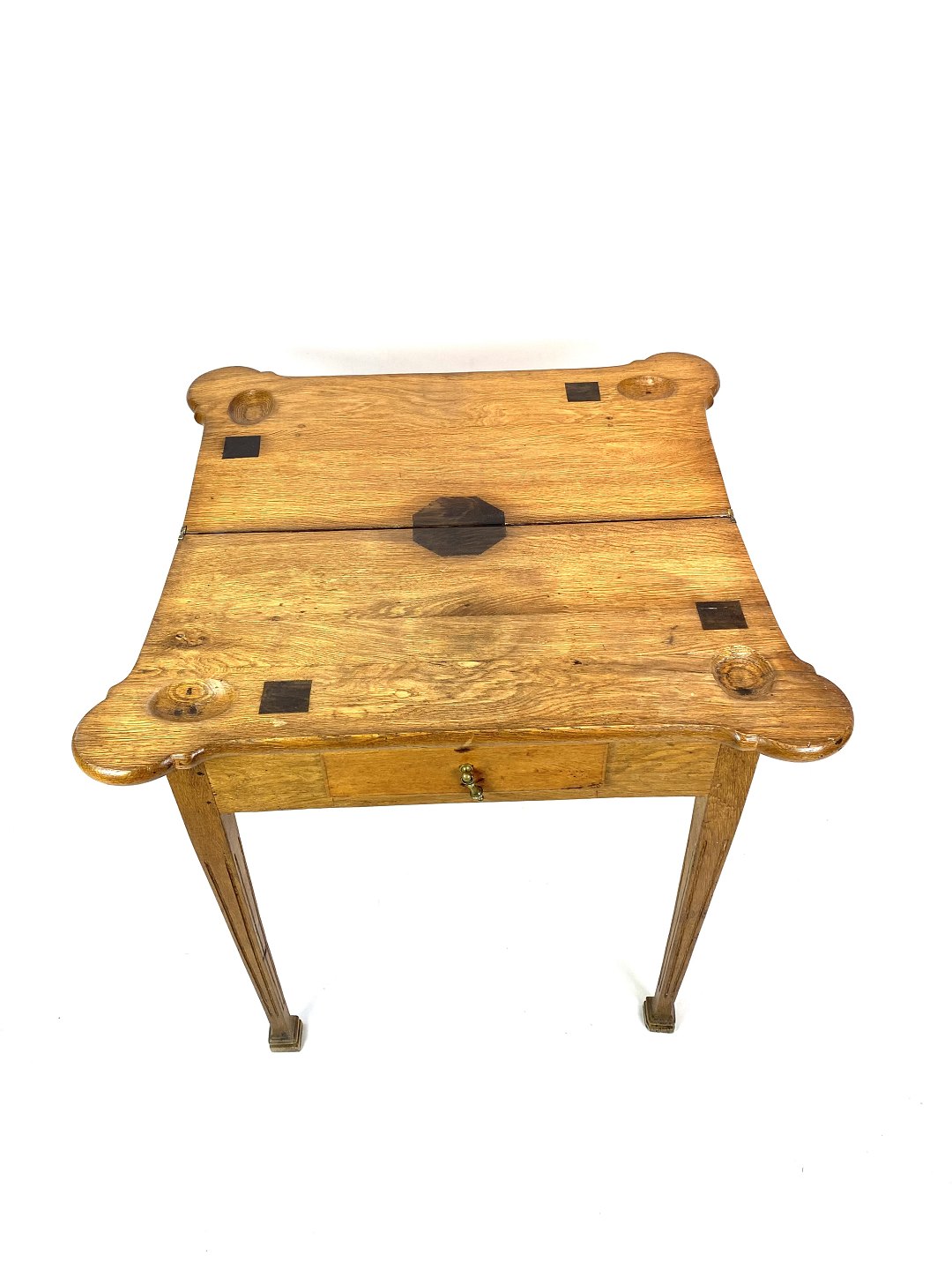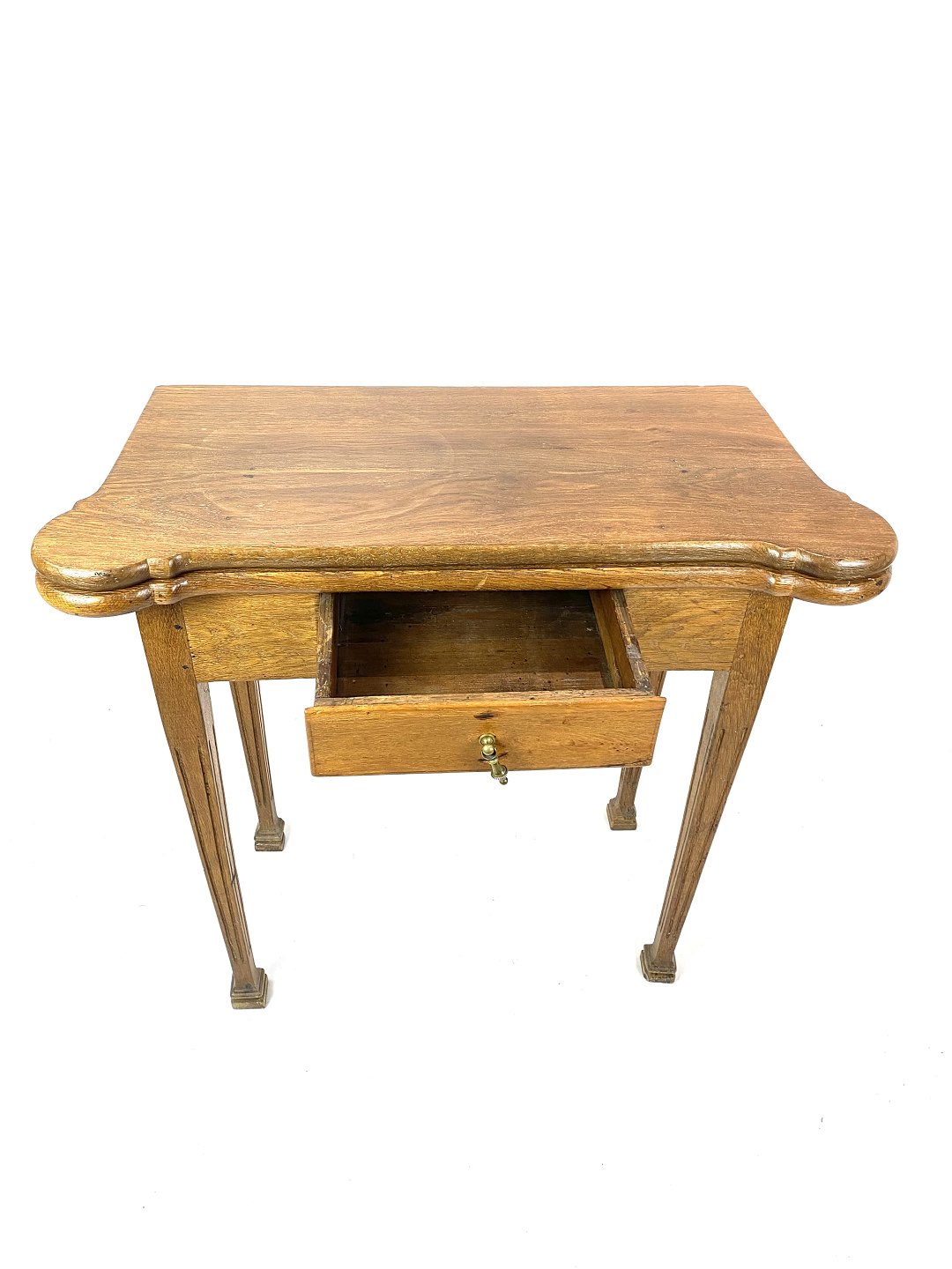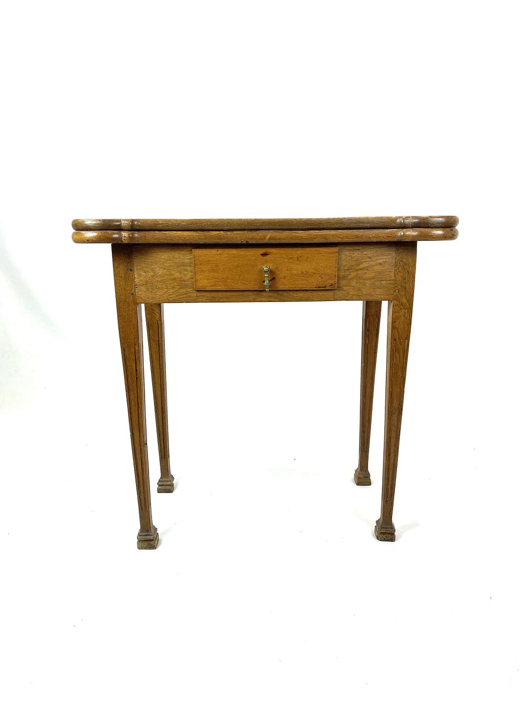 SolgtAntikt spillebord med mindre skuffe af egetræ fra omkring 1830'erne. Bordet står i meget fint brugt stand.