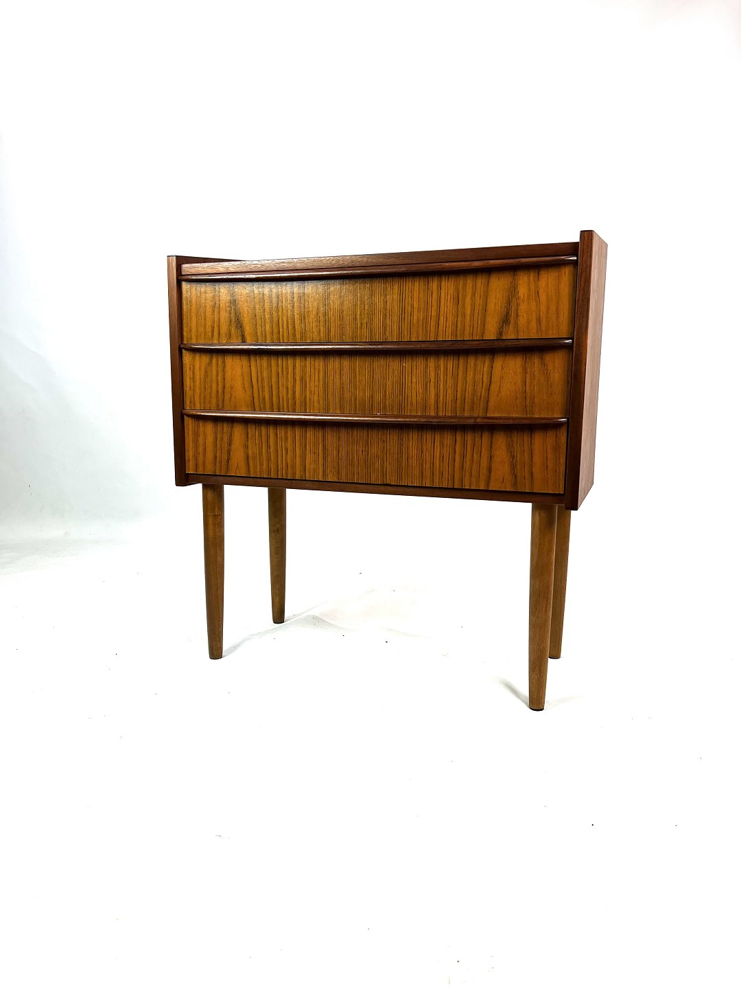 SolgtLille Kommode I Palisander med 3 skuffer fra 1960'erne. Meget brugbart møbel, som passer godt som sengebord, entrémøbel, samt til generelt opbevaring.