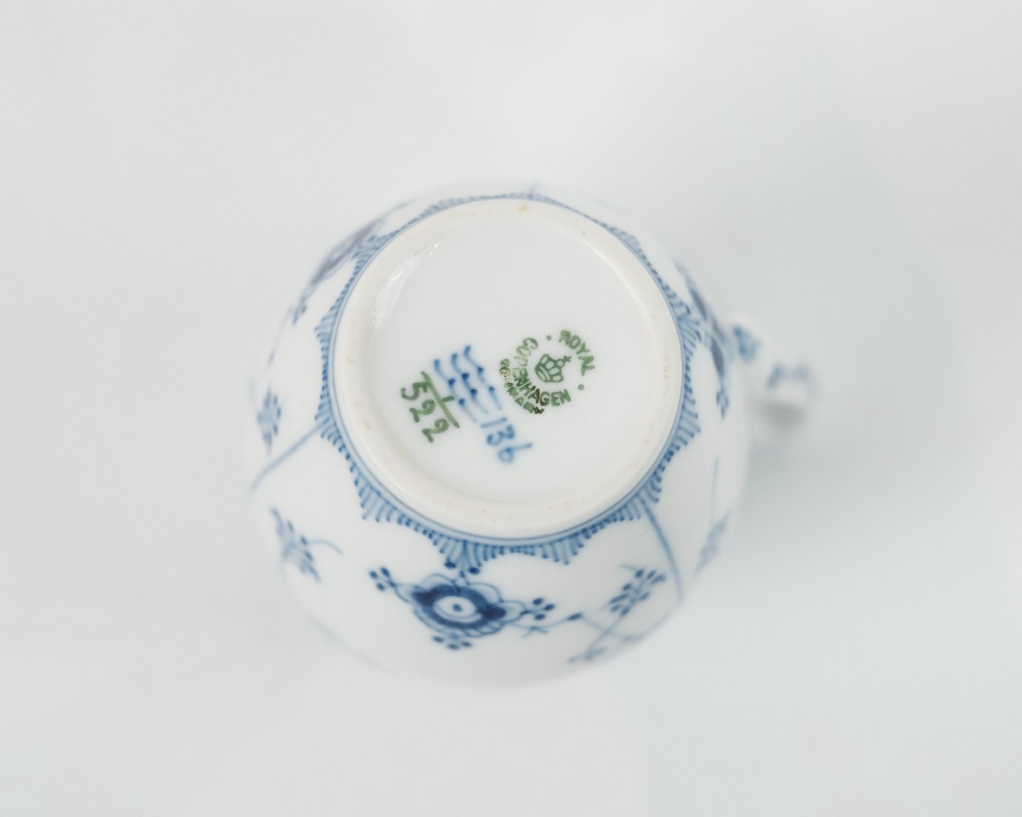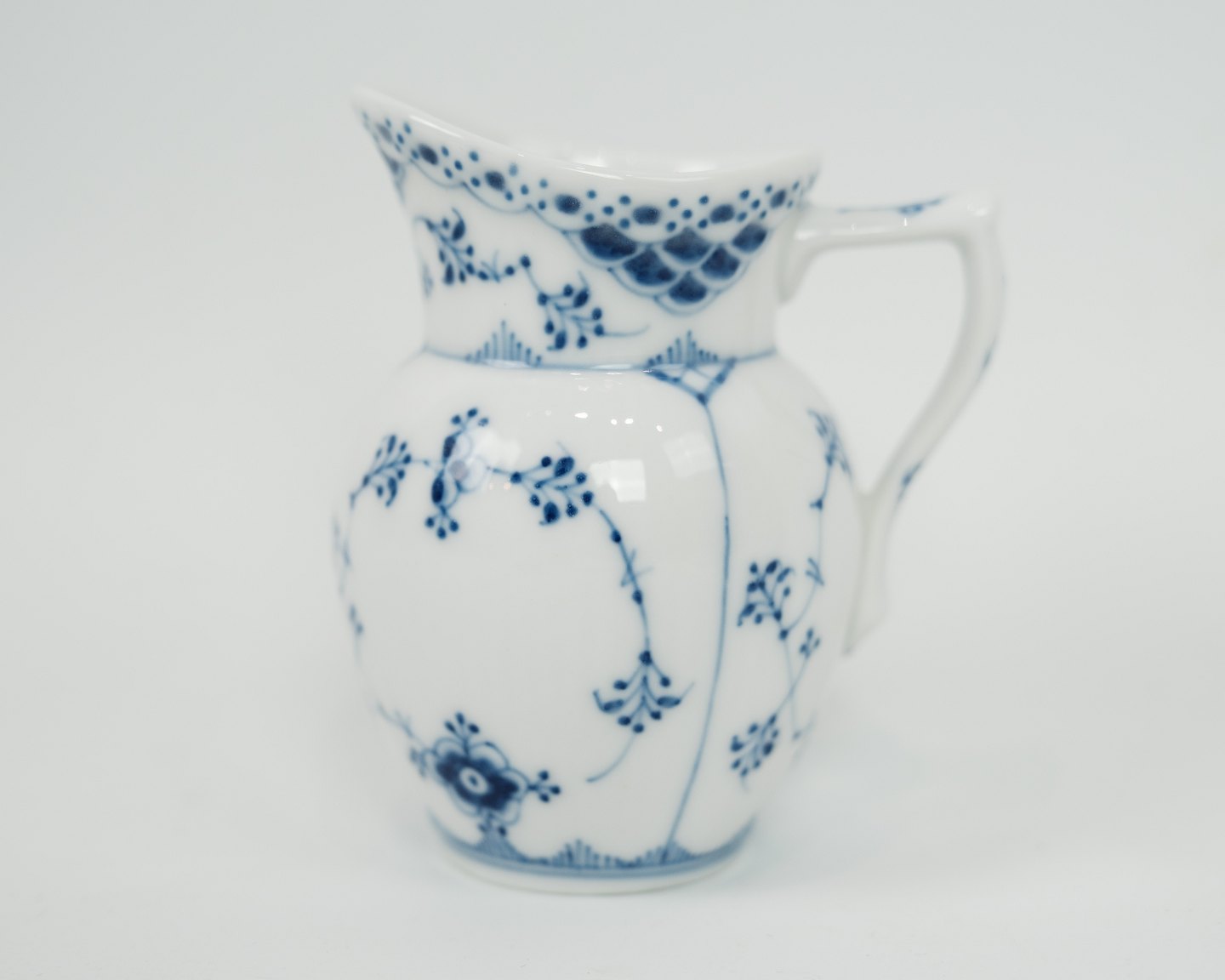 Royal Copenhagen blue fluted half-blonde cream jug No. 1/522. 5000m2 exhibition