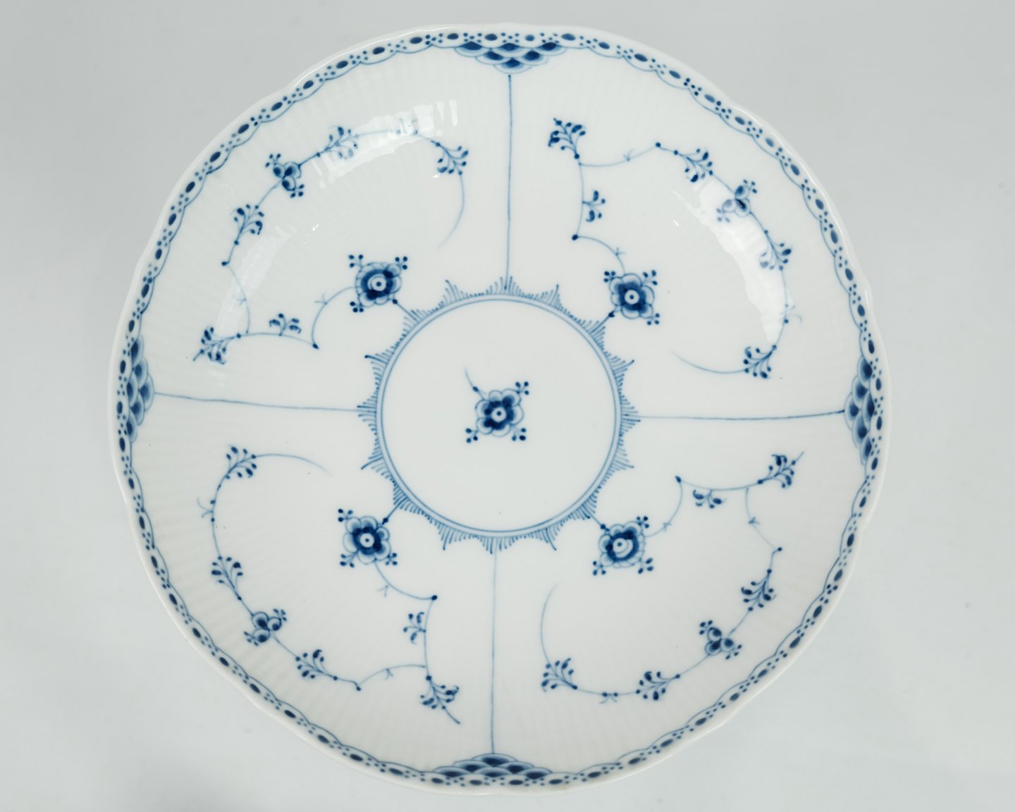 SoldRoyal copenhagen Royal Copenhagen Danish Porcelain Blue Fluted no. 710 Half lace. Salad dish, round with heavy edge. In very good used condition.