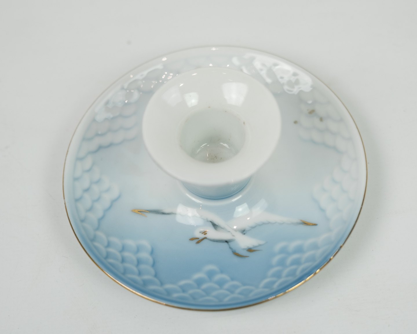 Candlestick from Bing & Grondahl in seagull frame. In very fine condition with gold edge.