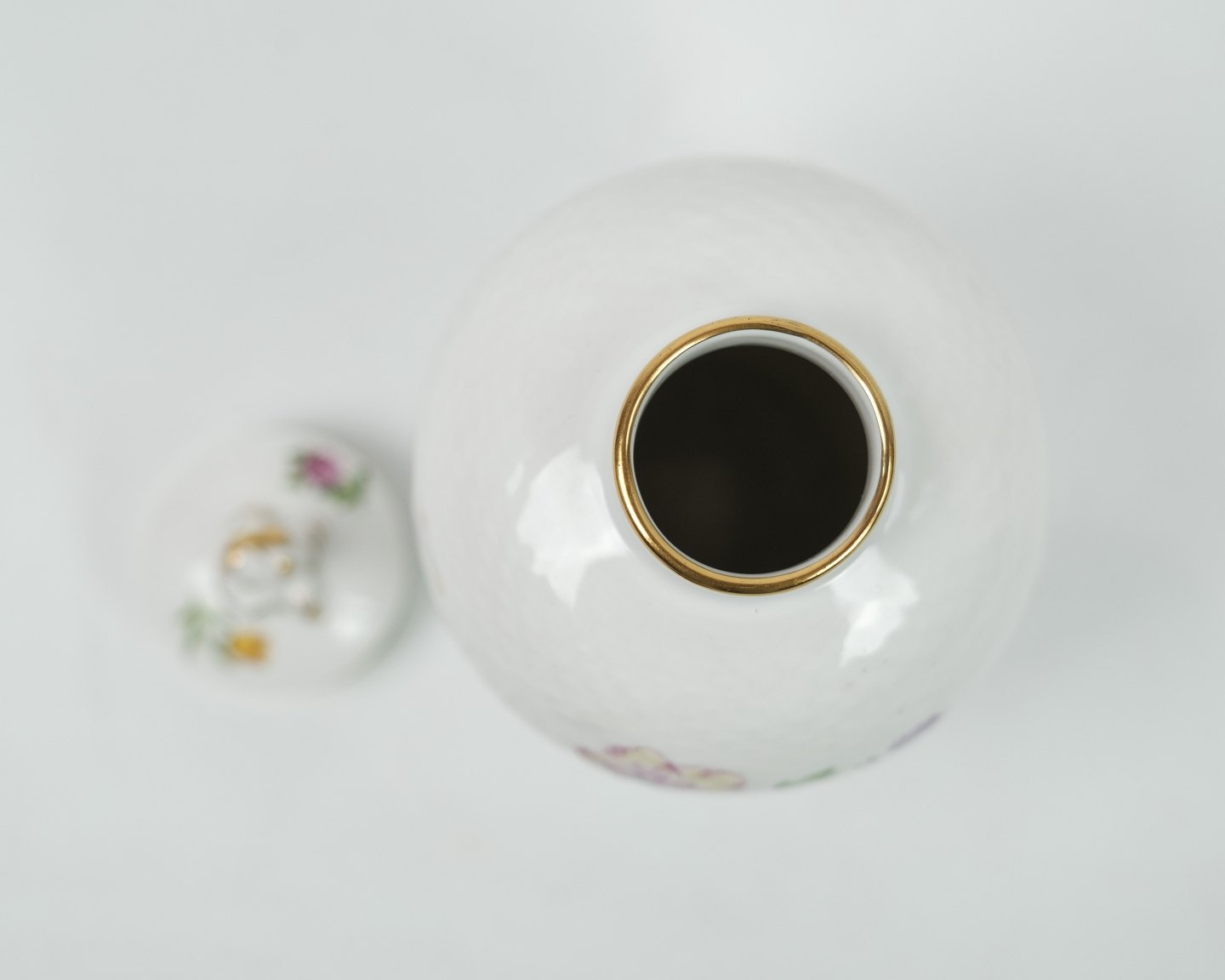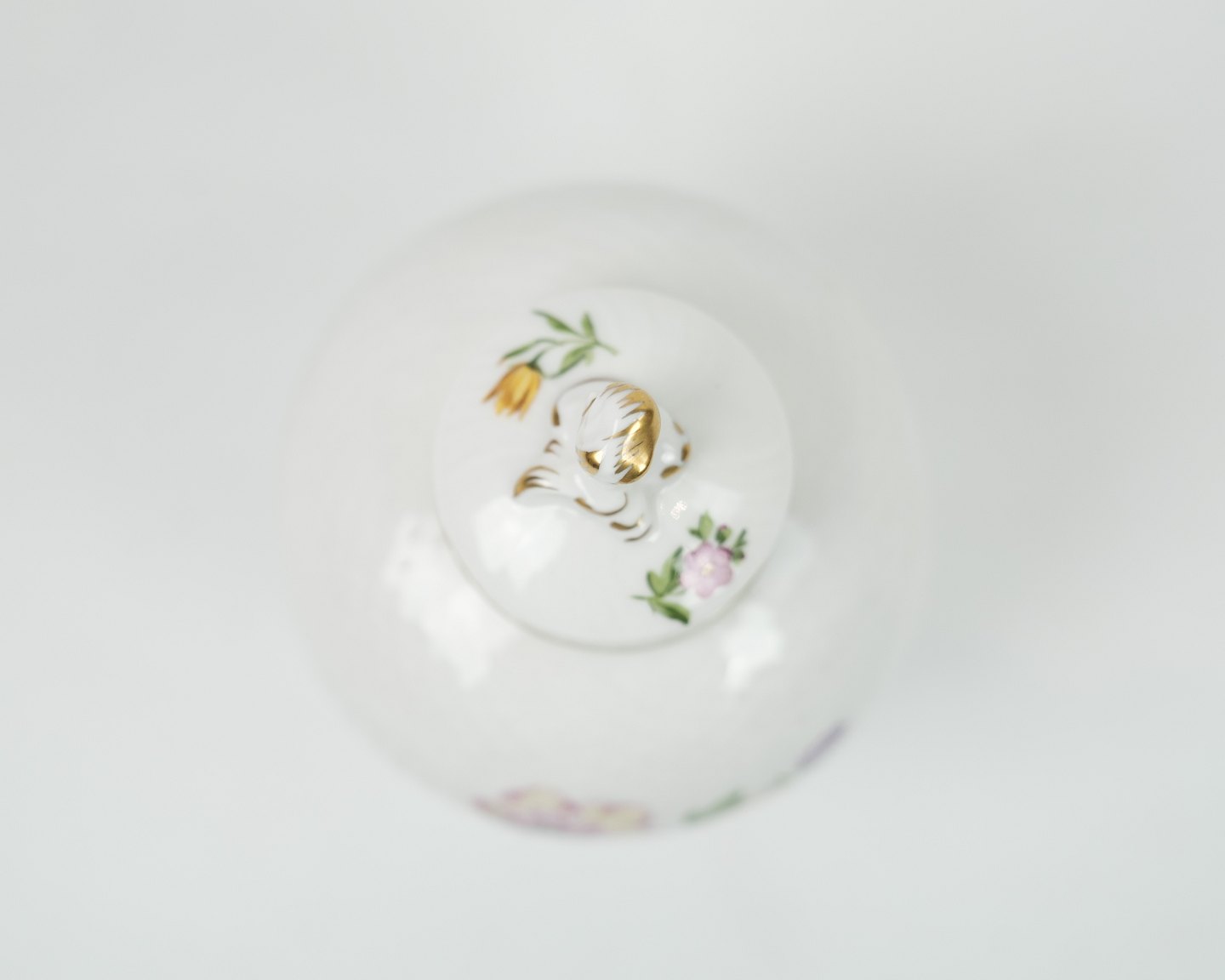 Kgl lågkrukke / bomberier krukke i mønstret saksisk blomst nr. 1684. Fremstår hel og uden skader