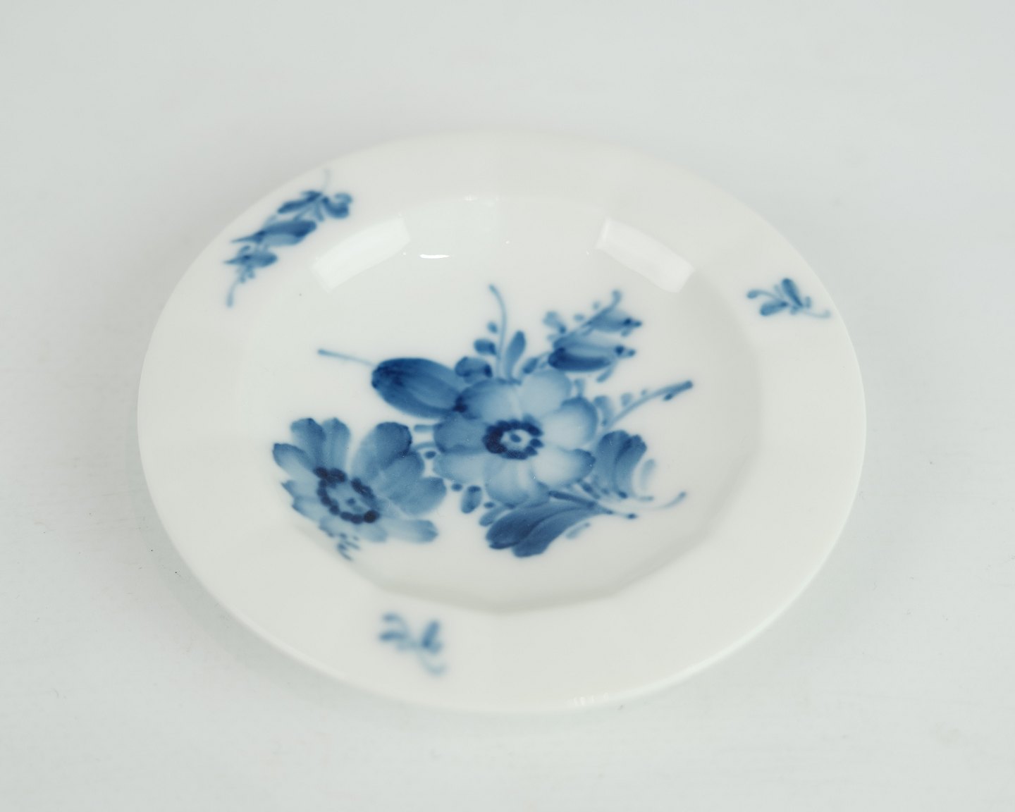 SoldSmall envelope bowl, designed by Arnold Krog in the frame blue flower edged no. 8554. Stands in fine used condition. Used for butter, sushi or ashtrays, among other things.