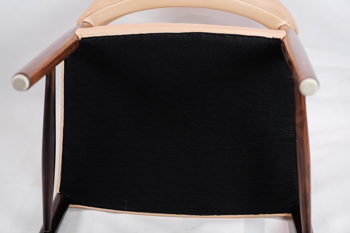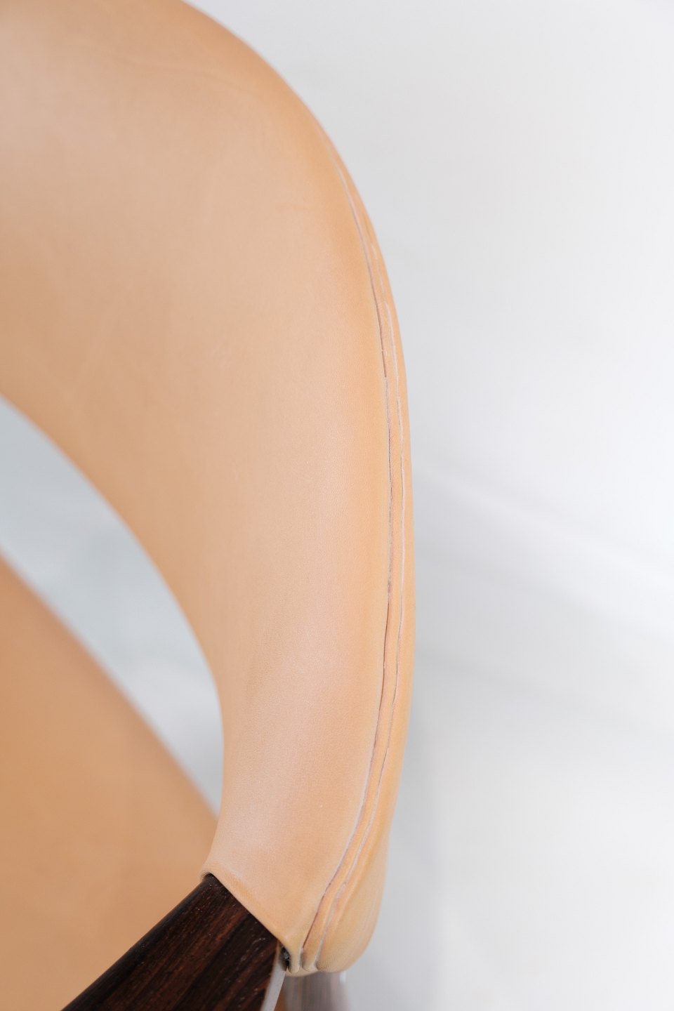 Desk chair / armchair in rosewood with light natural leather designed by Kurt Olsen in the 1960s. 5000m2 exhibition.
