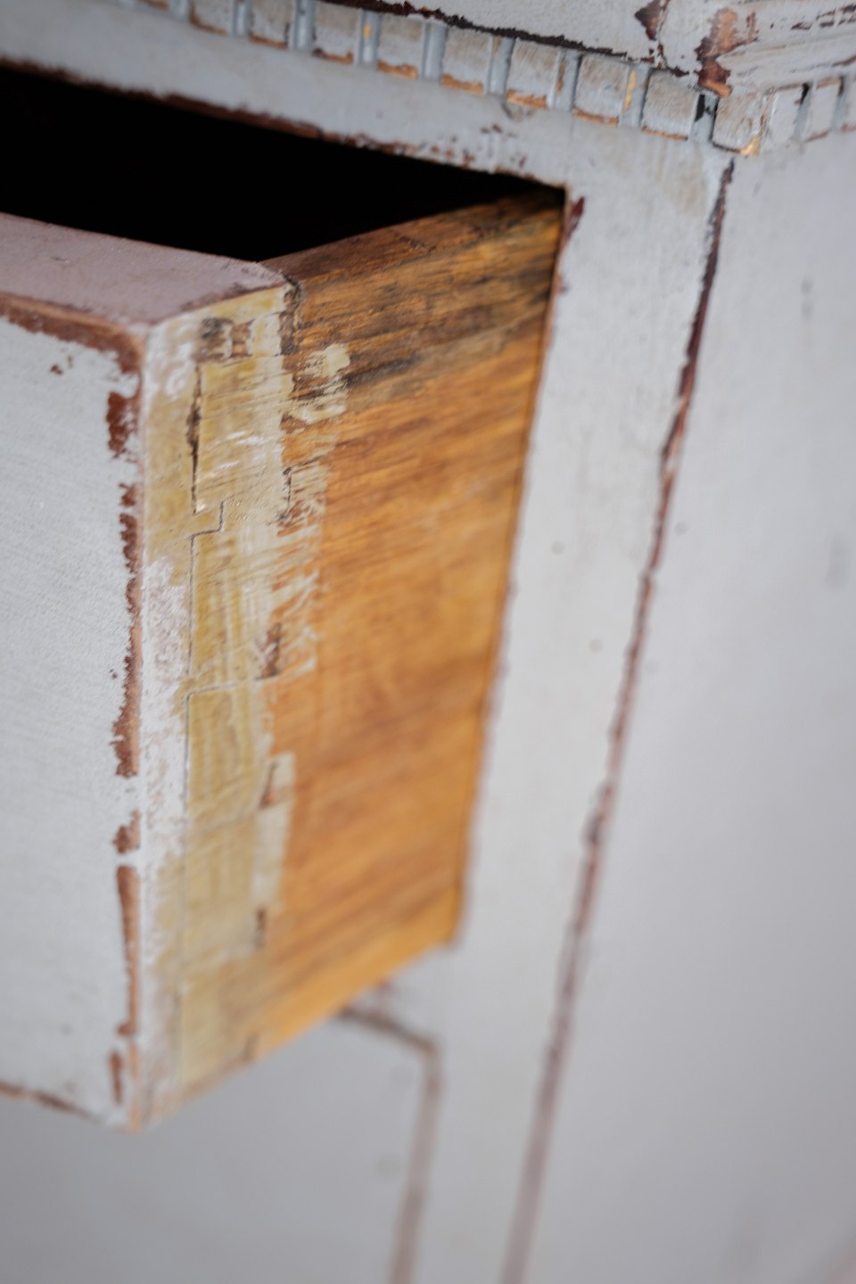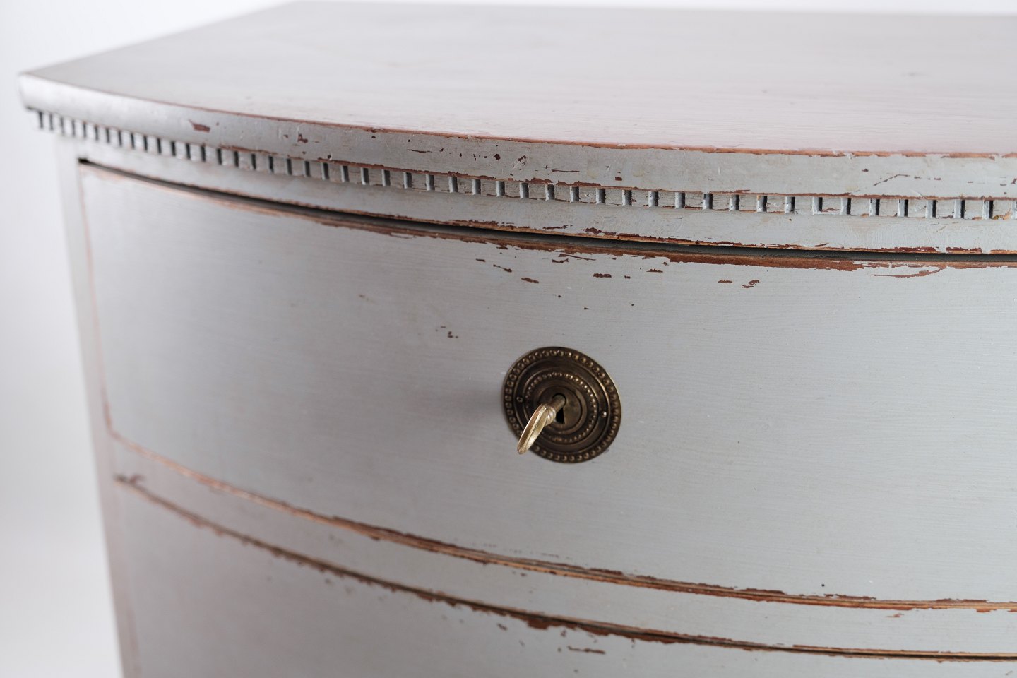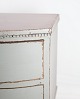 SolgtGustaviansk kommede med to skuffer i gråmalet fra år 1890'erne. Kommoden kaldes en Københavner kommode, da den har en buede front. Den står i meget vintage god stand.