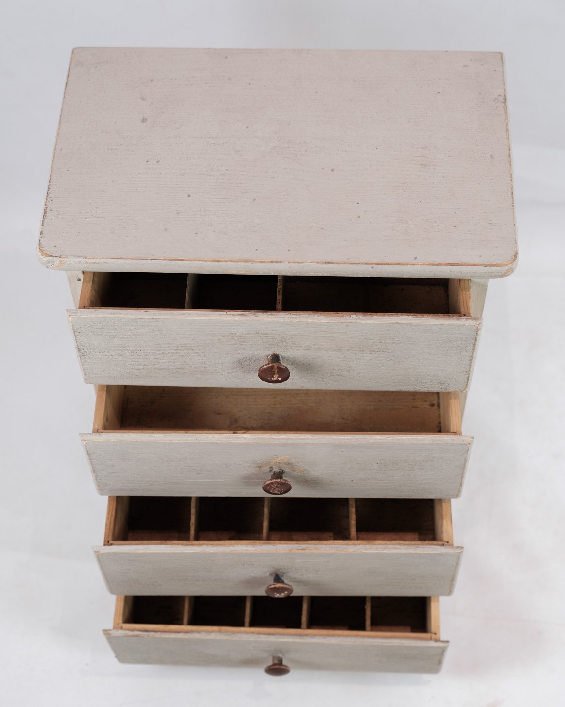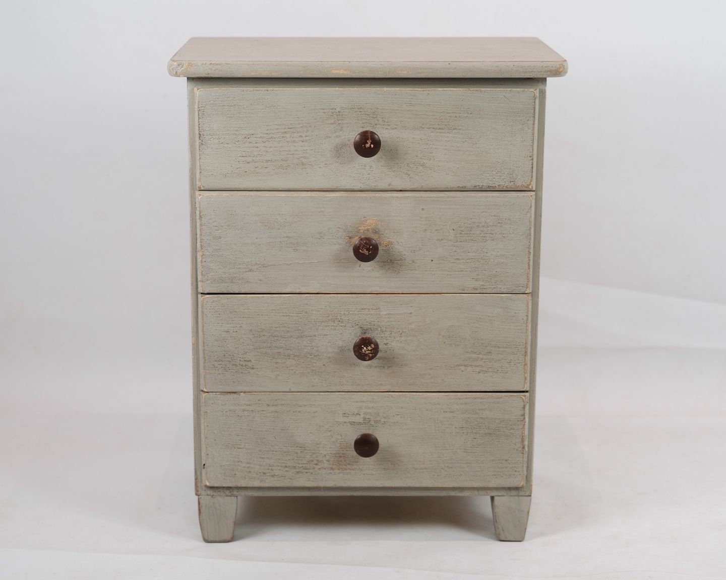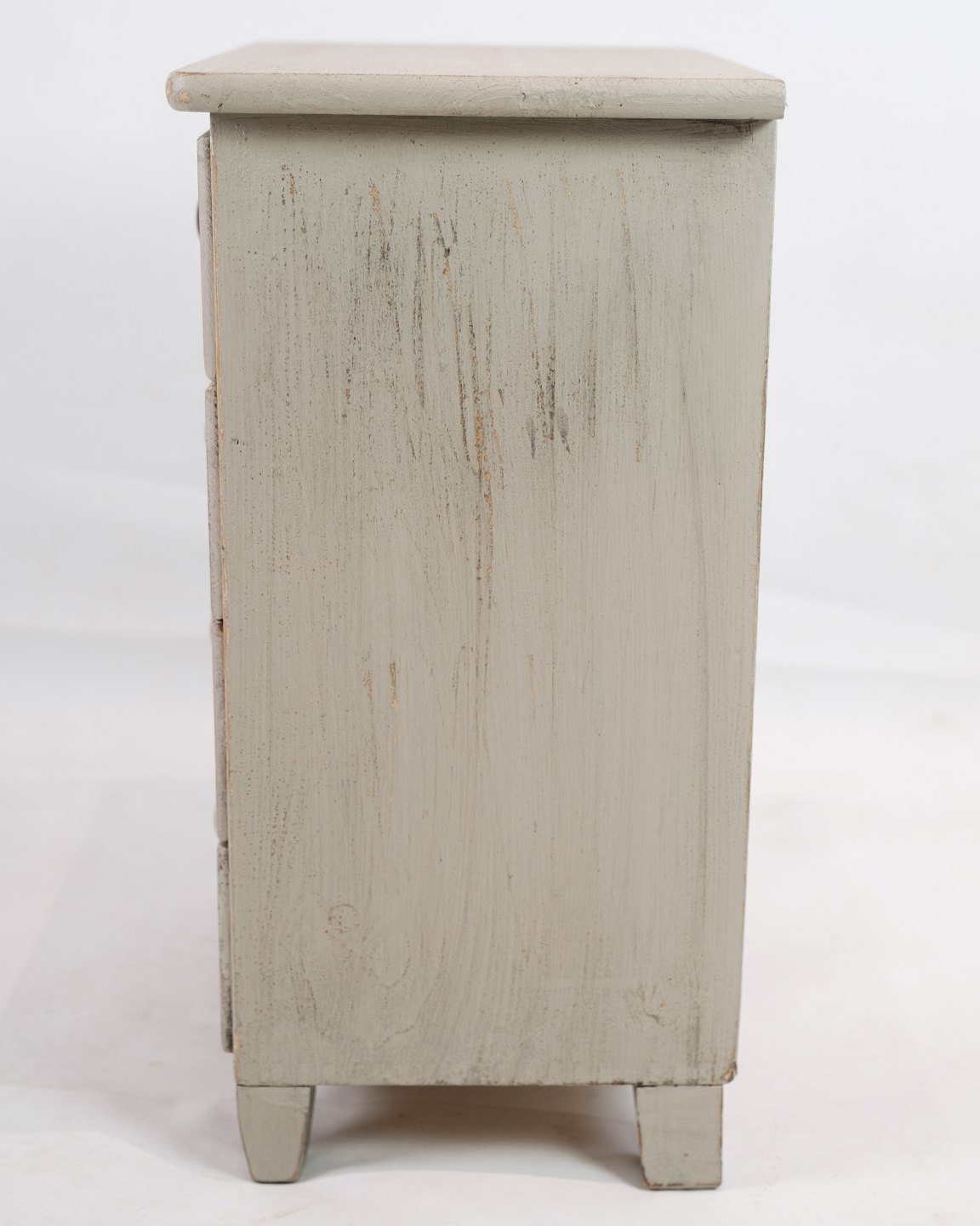 SolgtEt lille gustaviansk grå malet kommode med original bemaling fra omkring år 1840'erne. Står i meget fin original stand.
