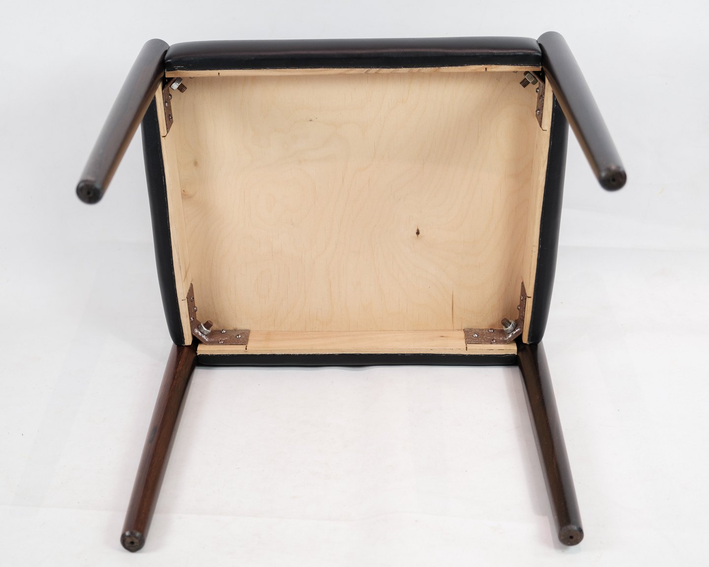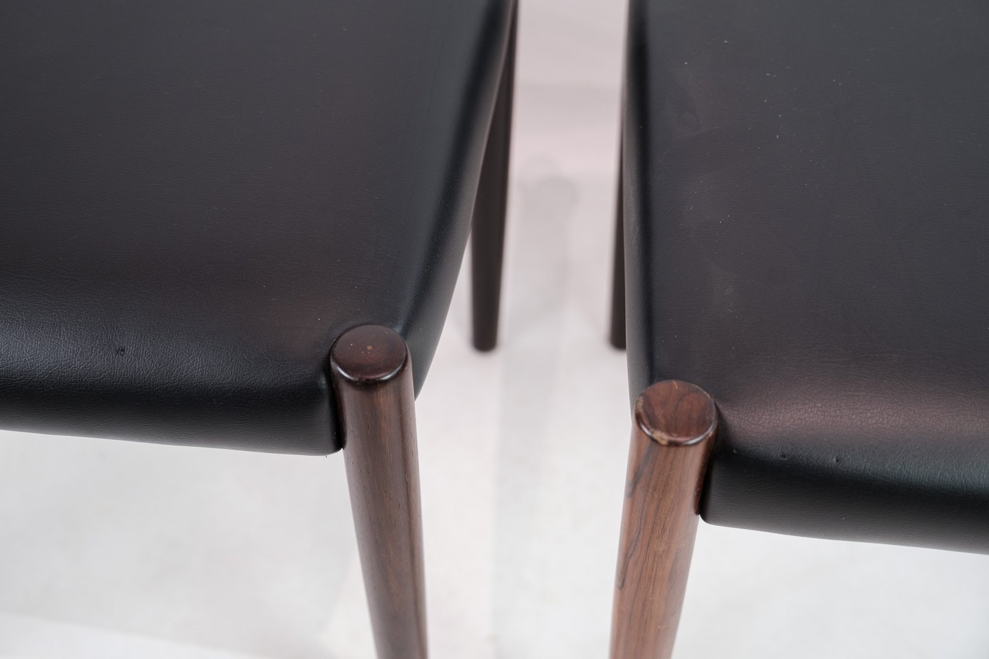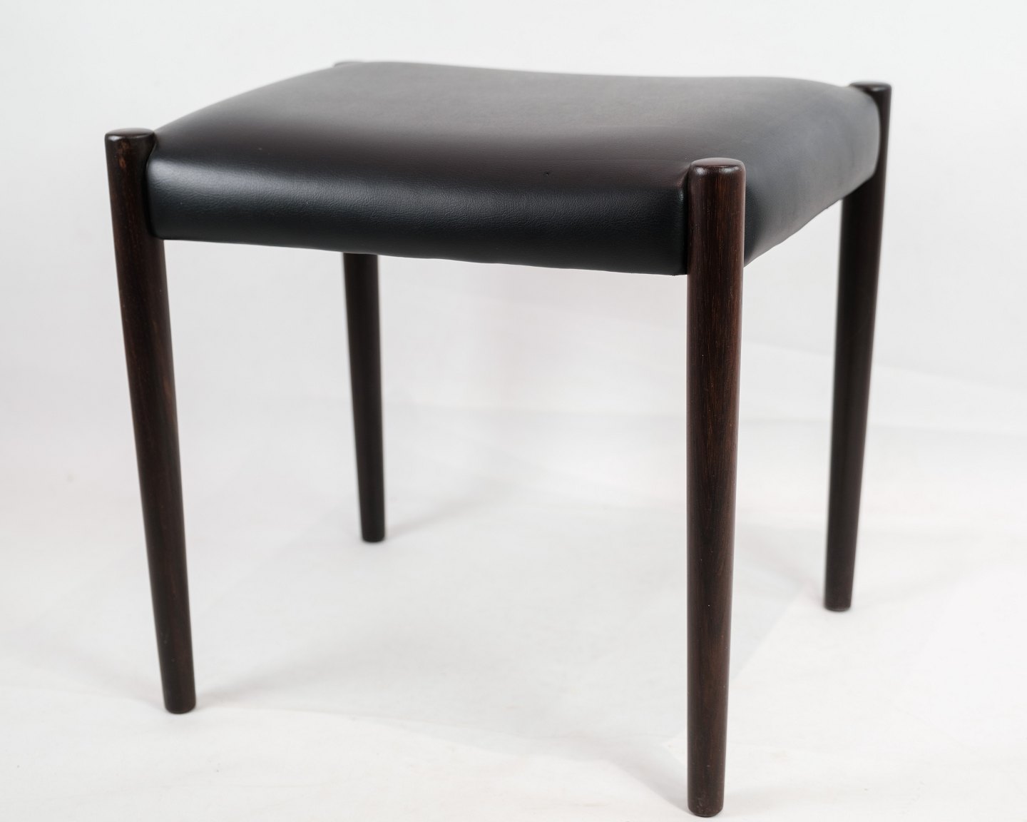 Dette sæt af to skamler er et smukt eksempel på dansk design fra 1960'erne. Skamlerne er fremstillet af palisandertræ, som giver dem en varm og naturlig farve med en smuk træstruktur. Den sorte læderpolstring tilføjer et elegant og tidløst touch til designet og sikrer samtidig komfort og holdbarhed.