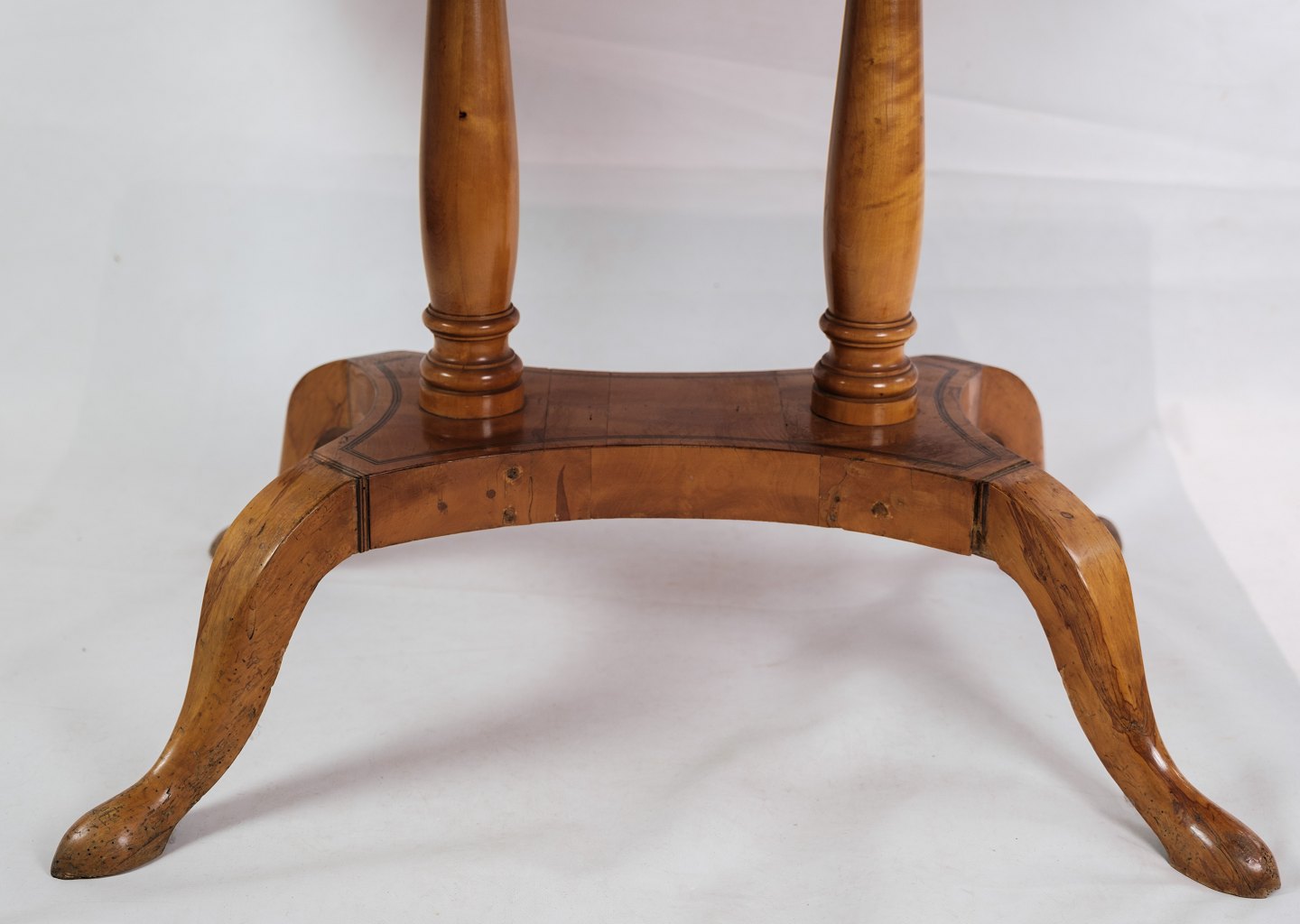 Empire-spisebordet, et antikt stykke med indviklet intarsia-arbejde, fremstillet af birketræ og stammer fra Danmark i 1840, er et bemærkelsesværdigt vidnesbyrd om imperiets håndværk og storhed.
