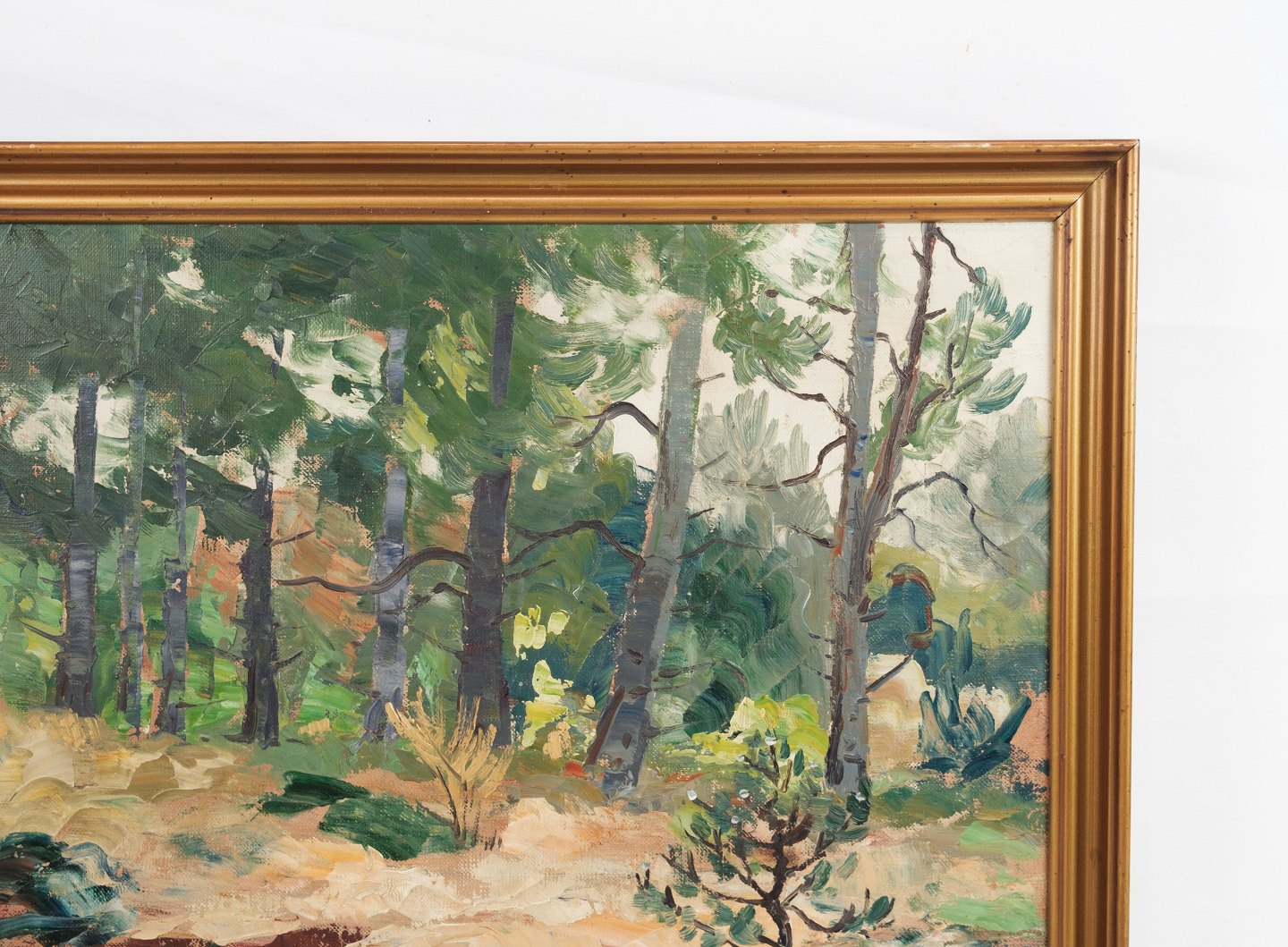 Oliemaleri lavet på lærredet med motiv af skov / træer fra omkring år 1940'erne. Står i meget fin brugt stand.