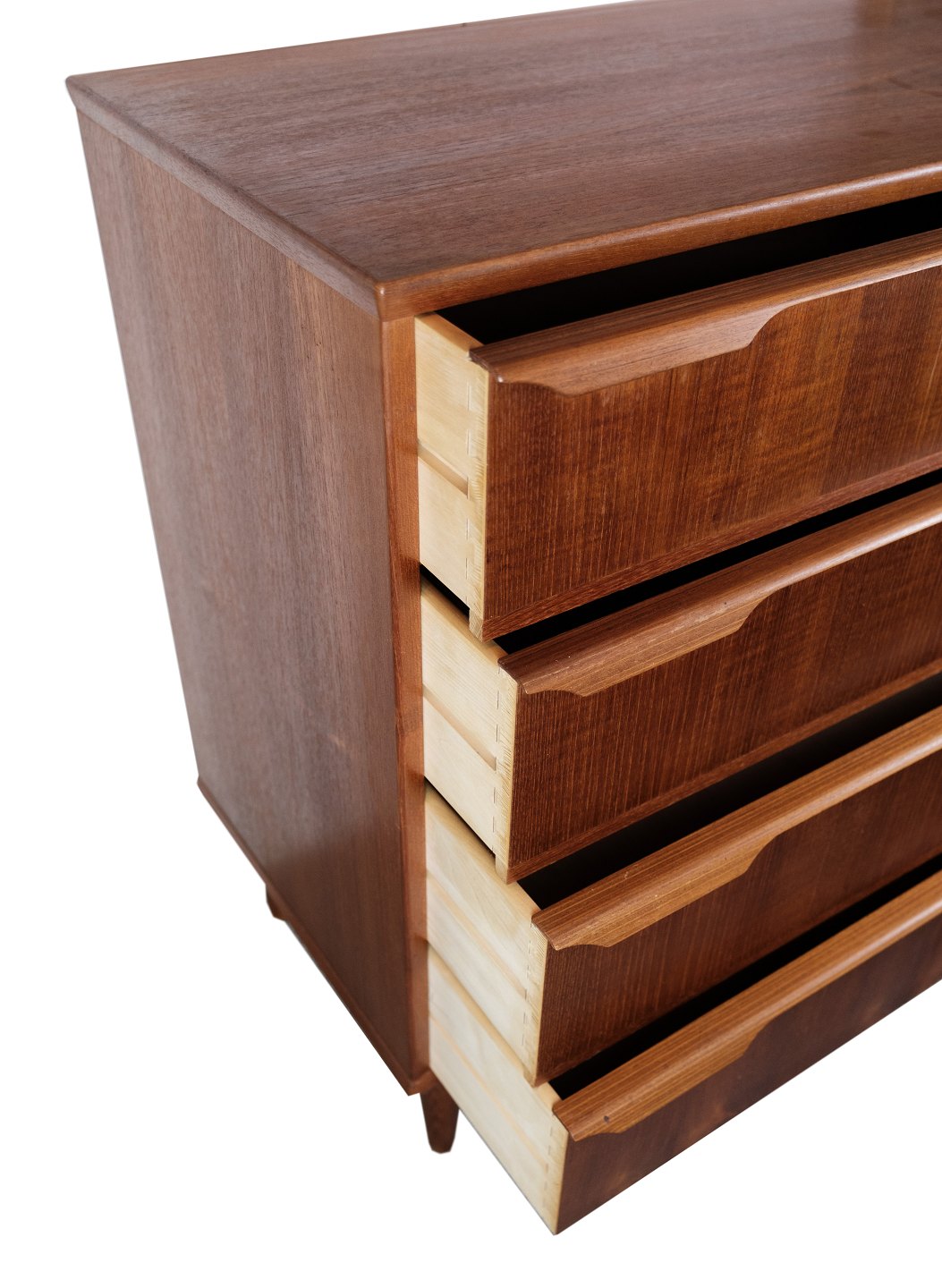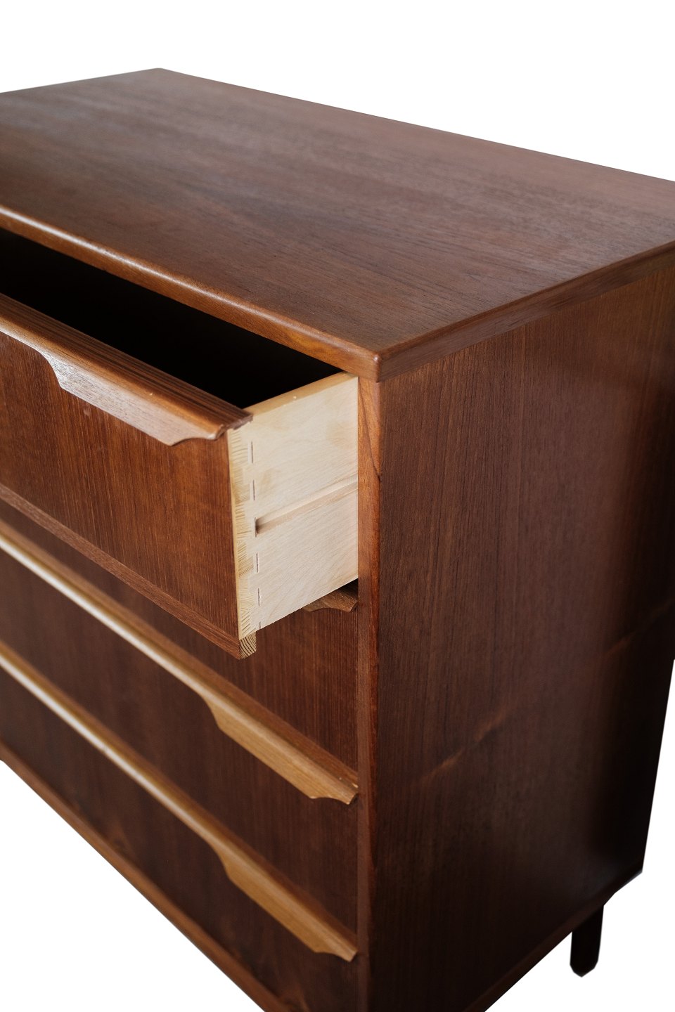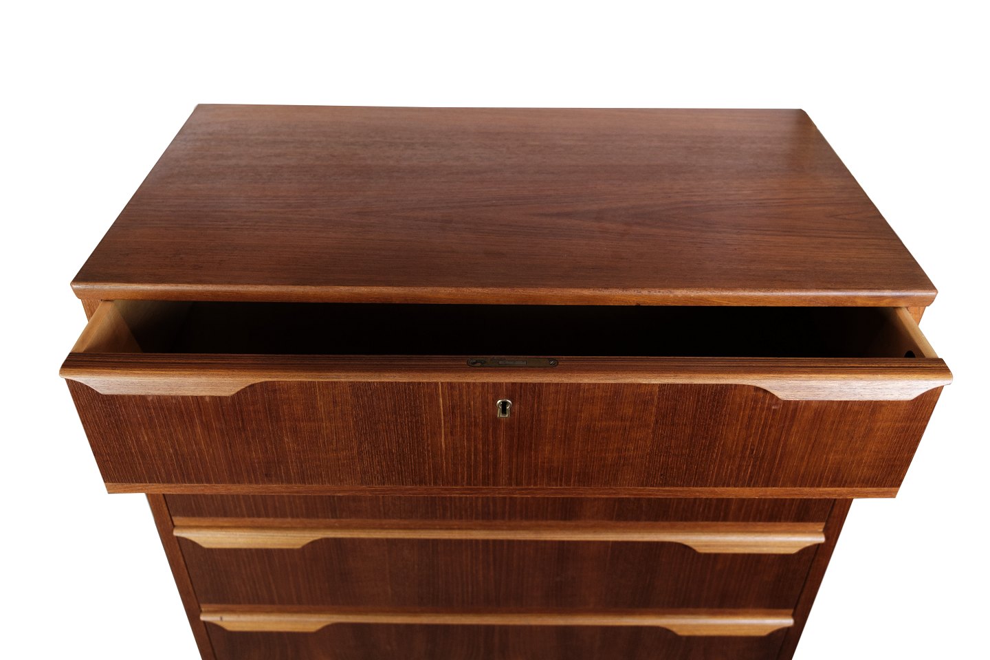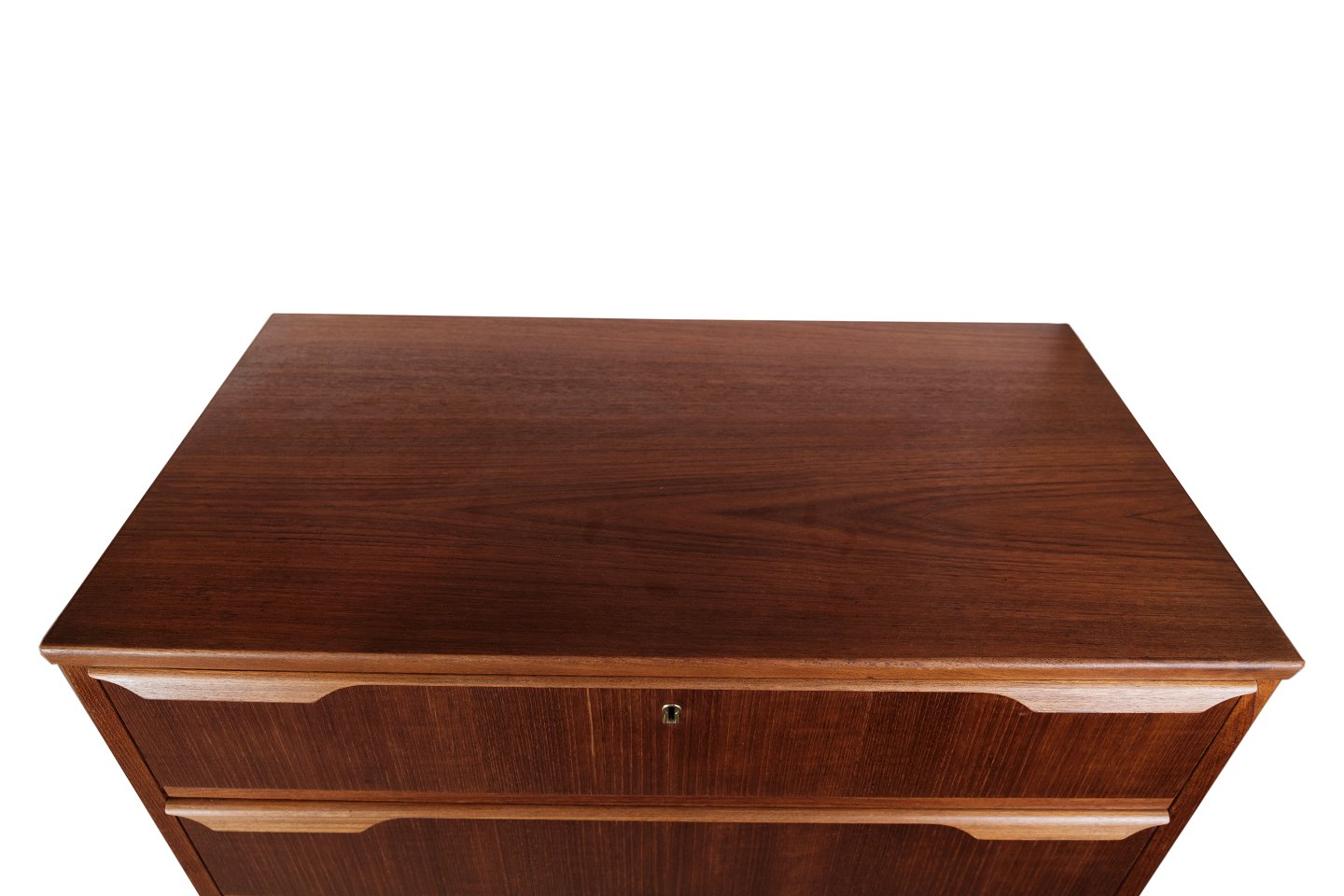 SoldA teak chest of drawers of Danish design from the 1960s. The chest of drawers has 4 drawers and the key is in the top drawer. is in very fine used condition.