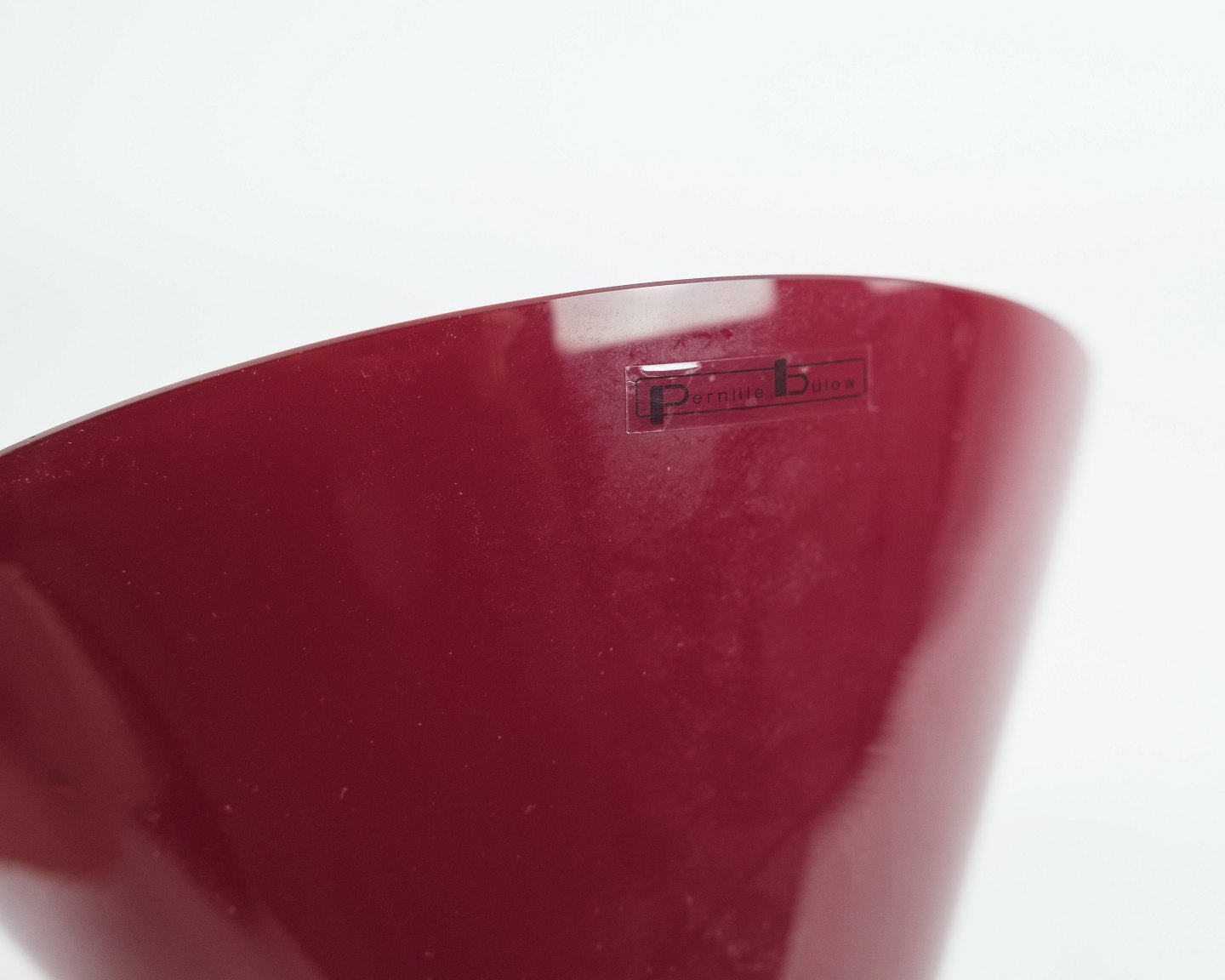 Glasskål, designet af Pernille bülow i rød og hvide farver. Står meget flot i standen.