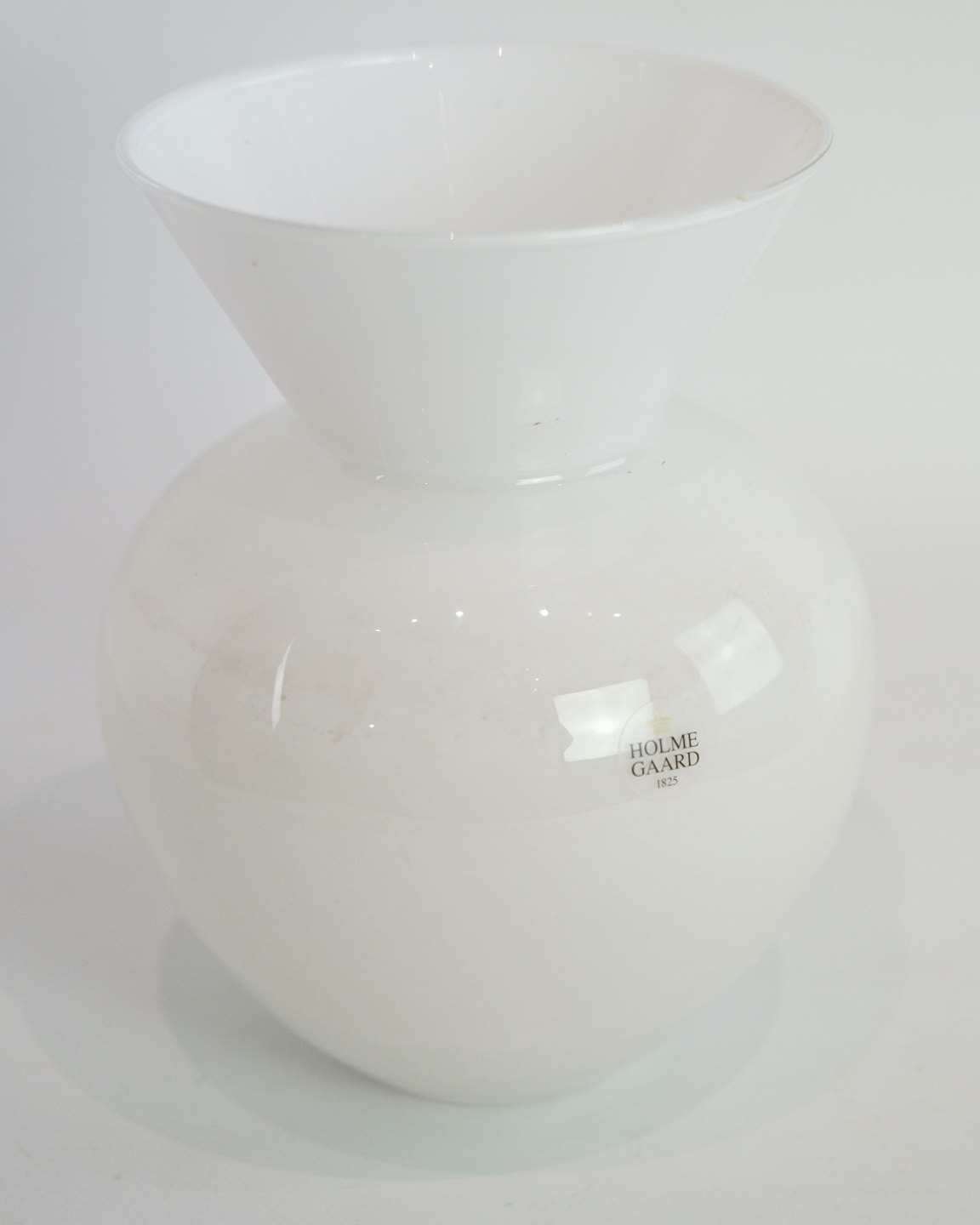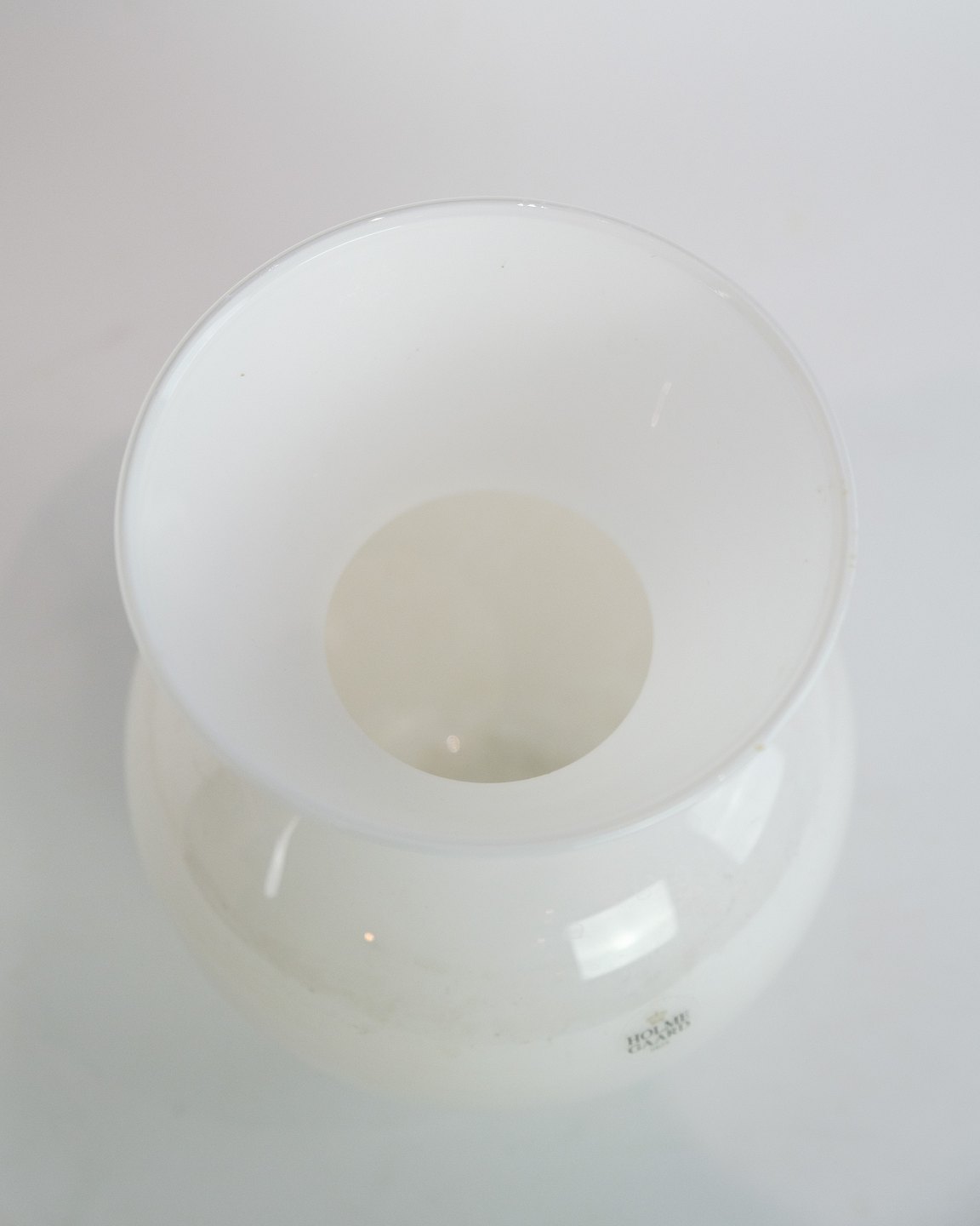Hvid vase i glas produceret af Holmegaard fra omrking 1970'erne. Står i god stand uden skader.