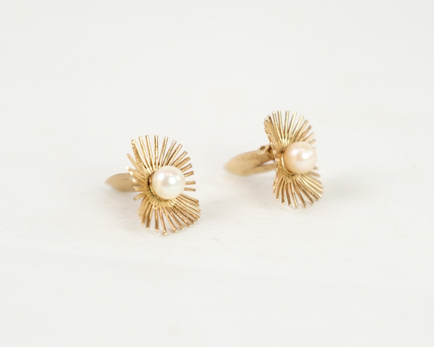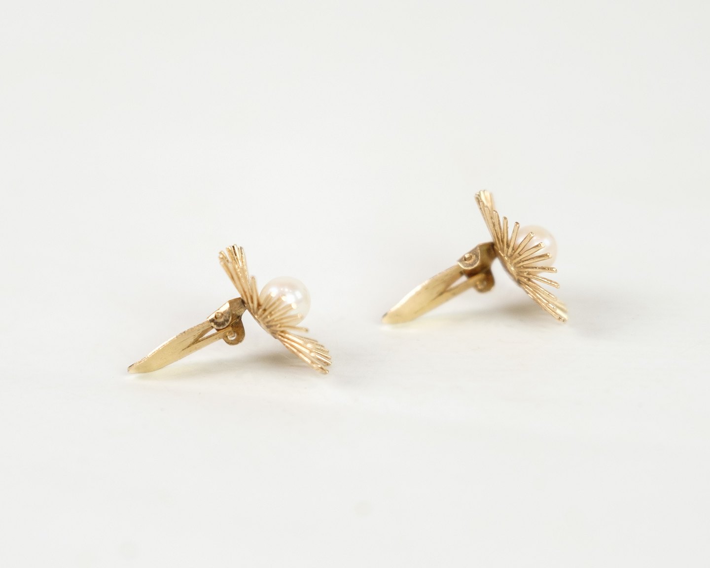 Vintage 14 carat ear clips stamped 585, bra designed by Bernhard Hertz - Copenhagen. The ear clips are adorned with 1 cultured pearl in the color delicate pink. Ear clips of very high quality.