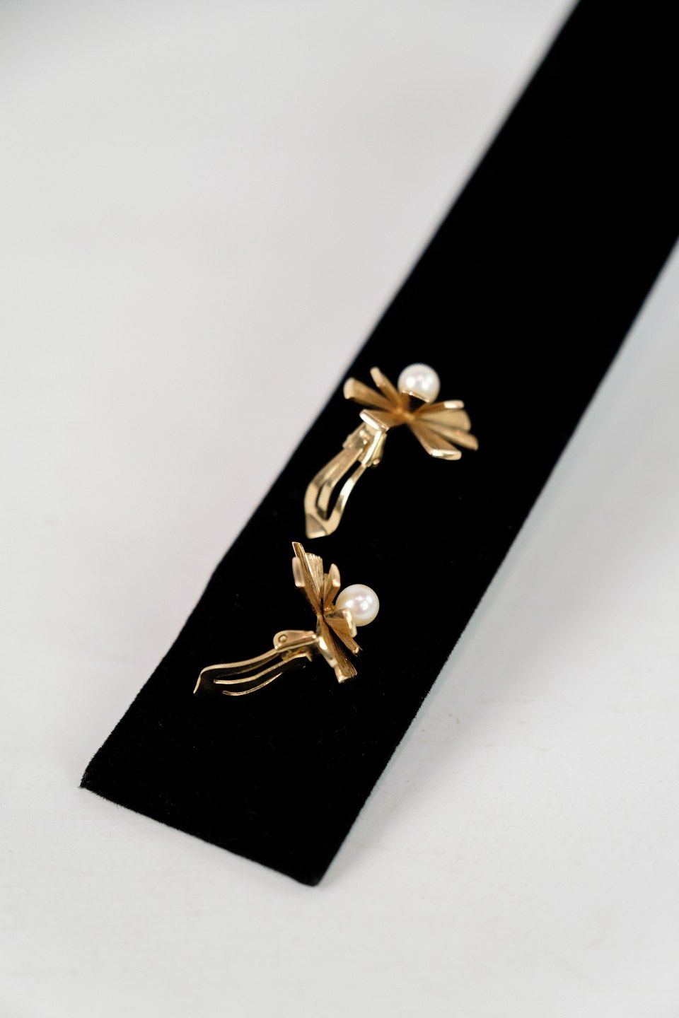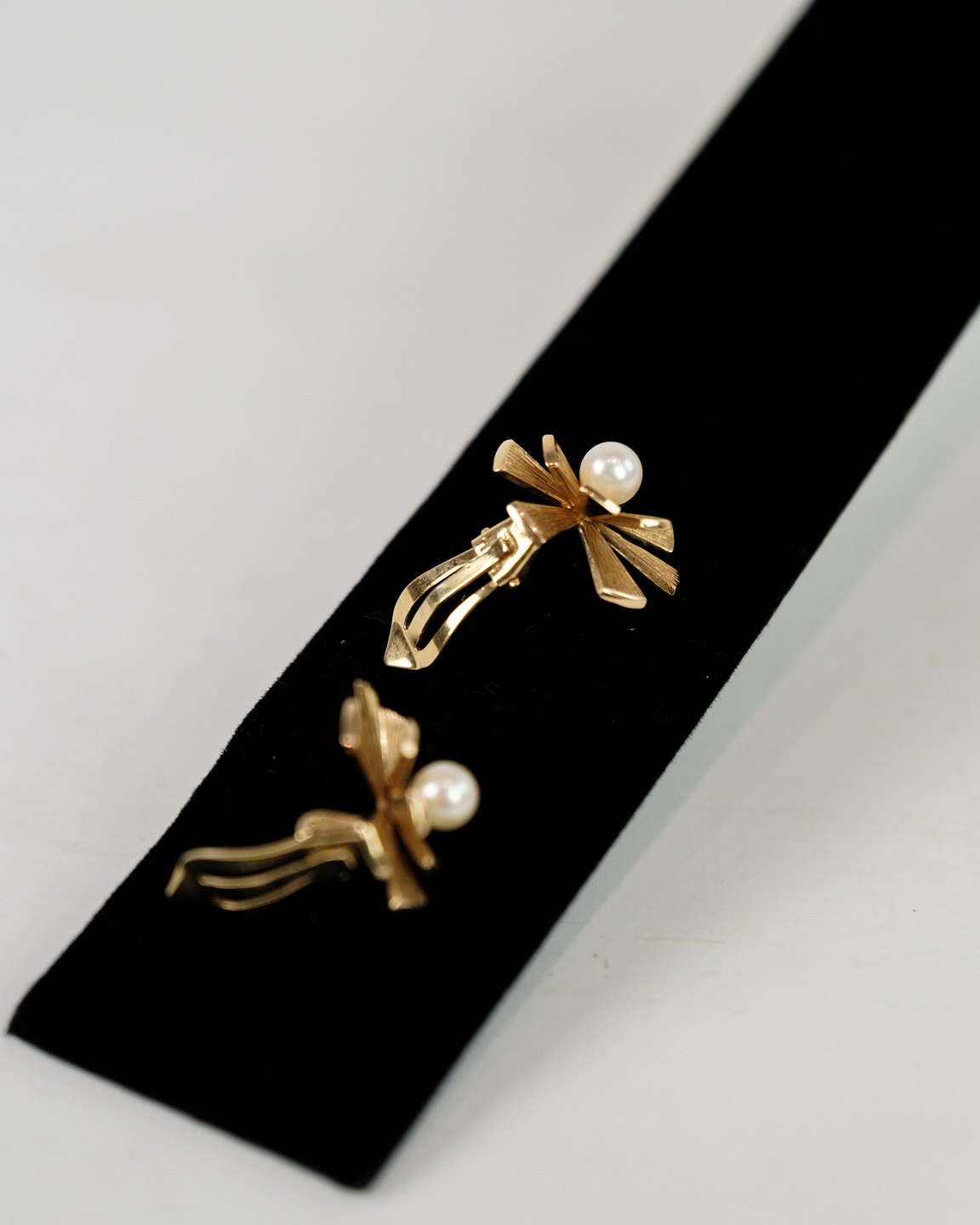 Vintage Ole Lynggaard øreclips af 14 karat guld med kultur perle af meget høj kvalitet. Begge øreclips er stemplet Ole L. 585.