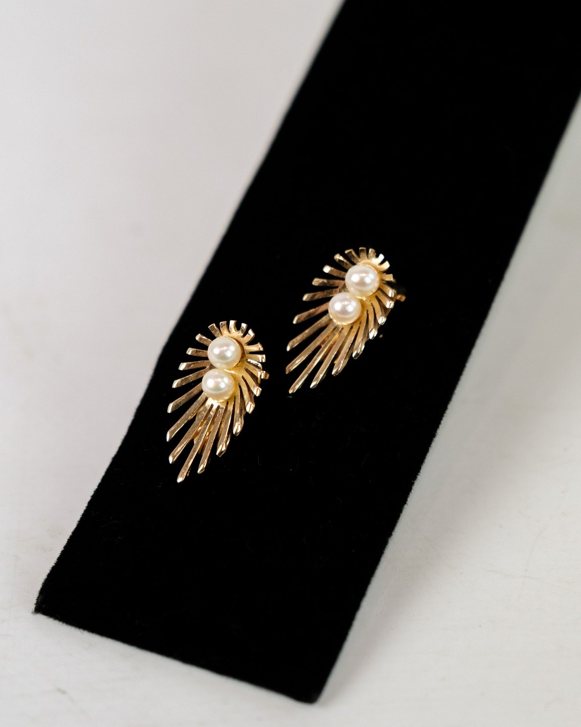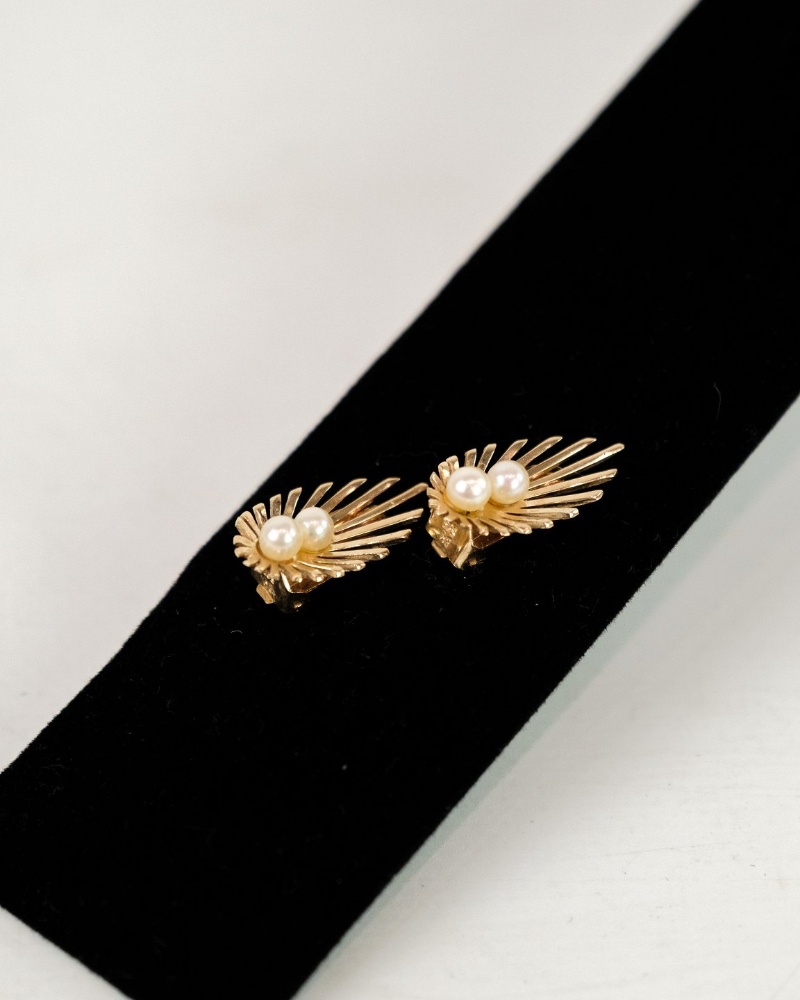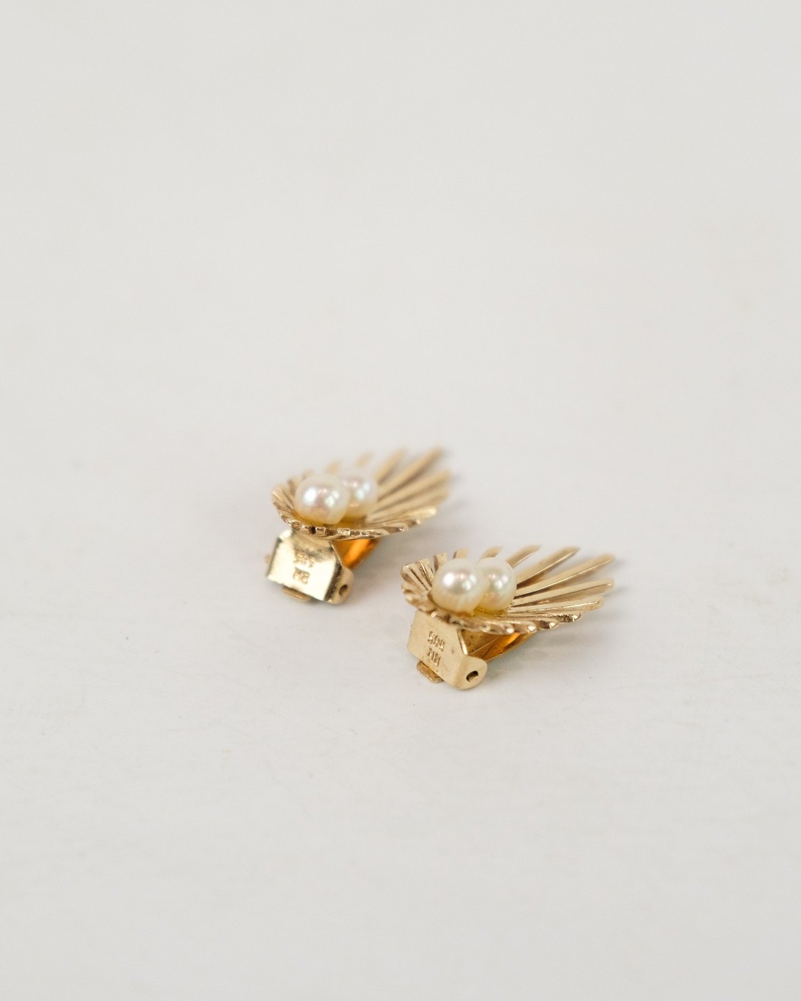 Vintage 14 carat ear clips stamped 585, bra designed by Bernhard Hertz - Copenhagen. The ear clips are adorned with two cultured pearls in the color delicate pink. Ear clips of very high quality.