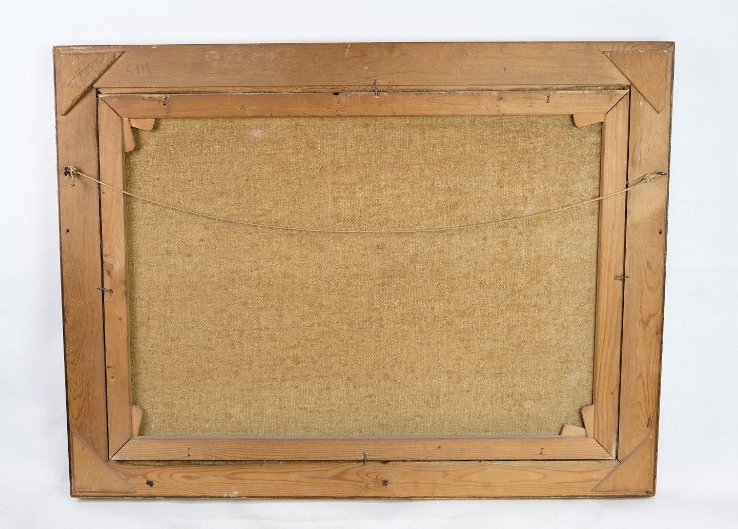 SolgtOliemaleri på lærredet med motiv af hønsegård og marker malet af Johan Jacobsen (1883-1953) fra omkring 1940'erne. Står i meget fin brugt stand med original forgyldt ramme.