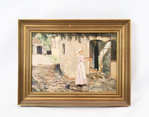 Oil painting painted on canvas with green and brown shades by Sixten Wiklund (1907-1986) from around the 1950s. Stands undamaged with original gold-plated frame.