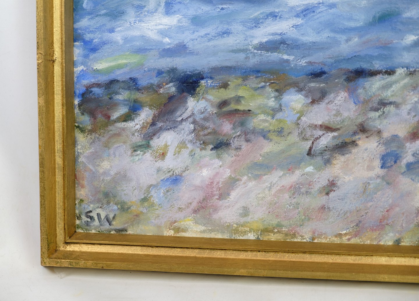 Oliemaleri på lærredet med motiv af strand og hav malet af Sixten Wiklund (1907-1986) fra omkring 1950'erne. Står i meget fin brugt stand.