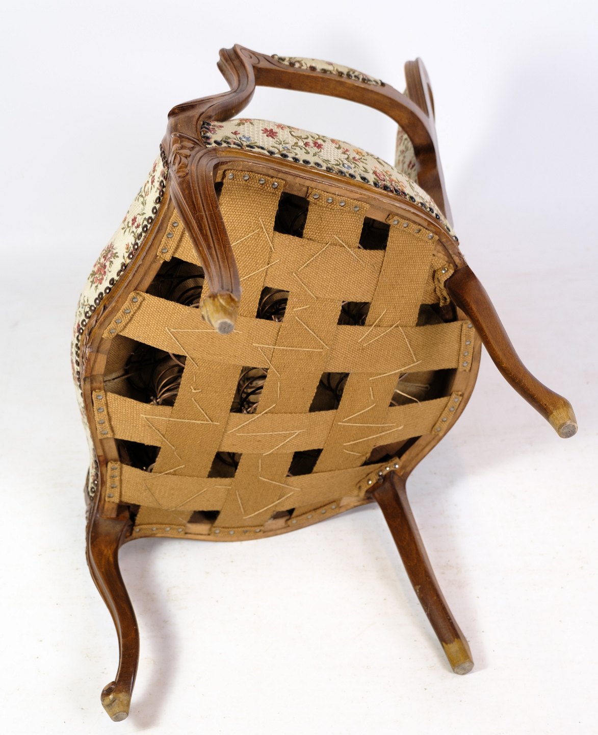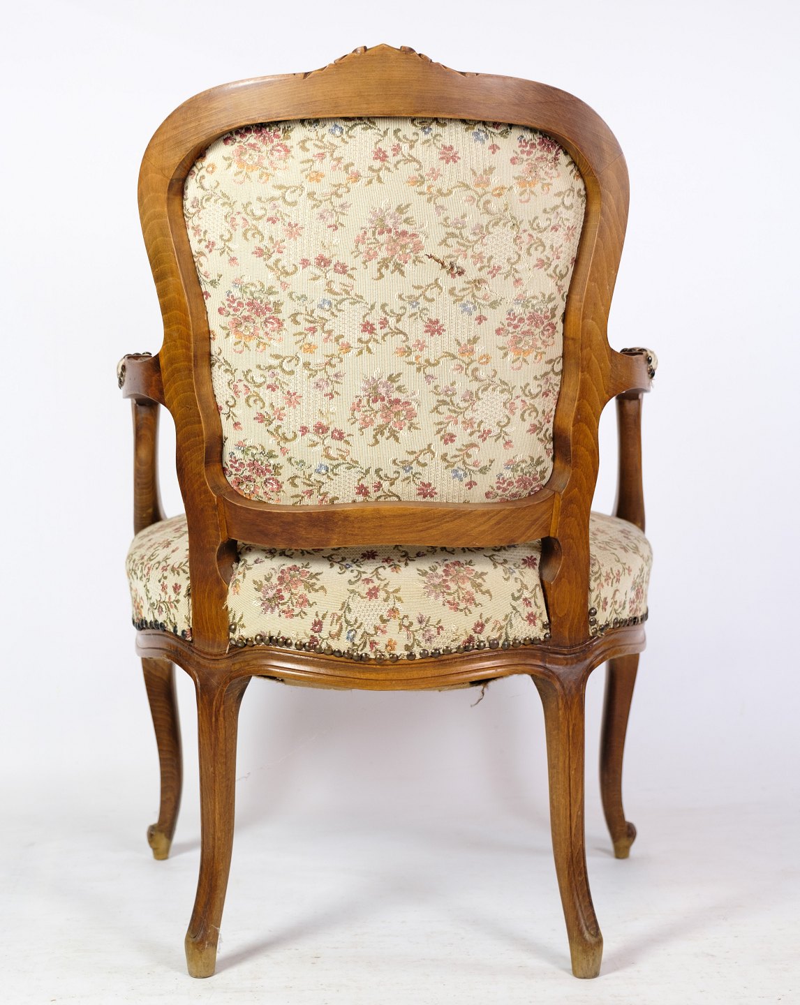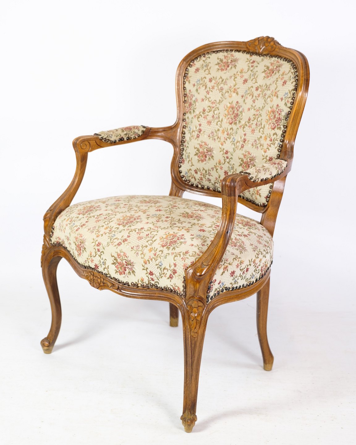 Et par nyrokoko armstole med dekorativt stof i lyst træ fra omkring 1930'erne er en smuk repræsentation af tidlig 20. århundredes møbeldesign og æstetik. Disse stole kombinerer elegance og raffinement med en subtil lethed og charme, der er karakteristisk for rokokostilen.