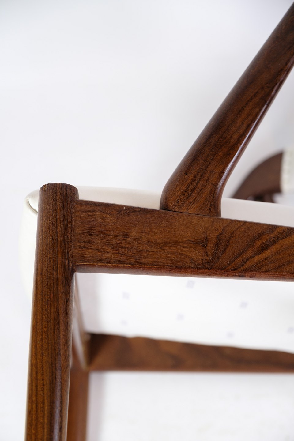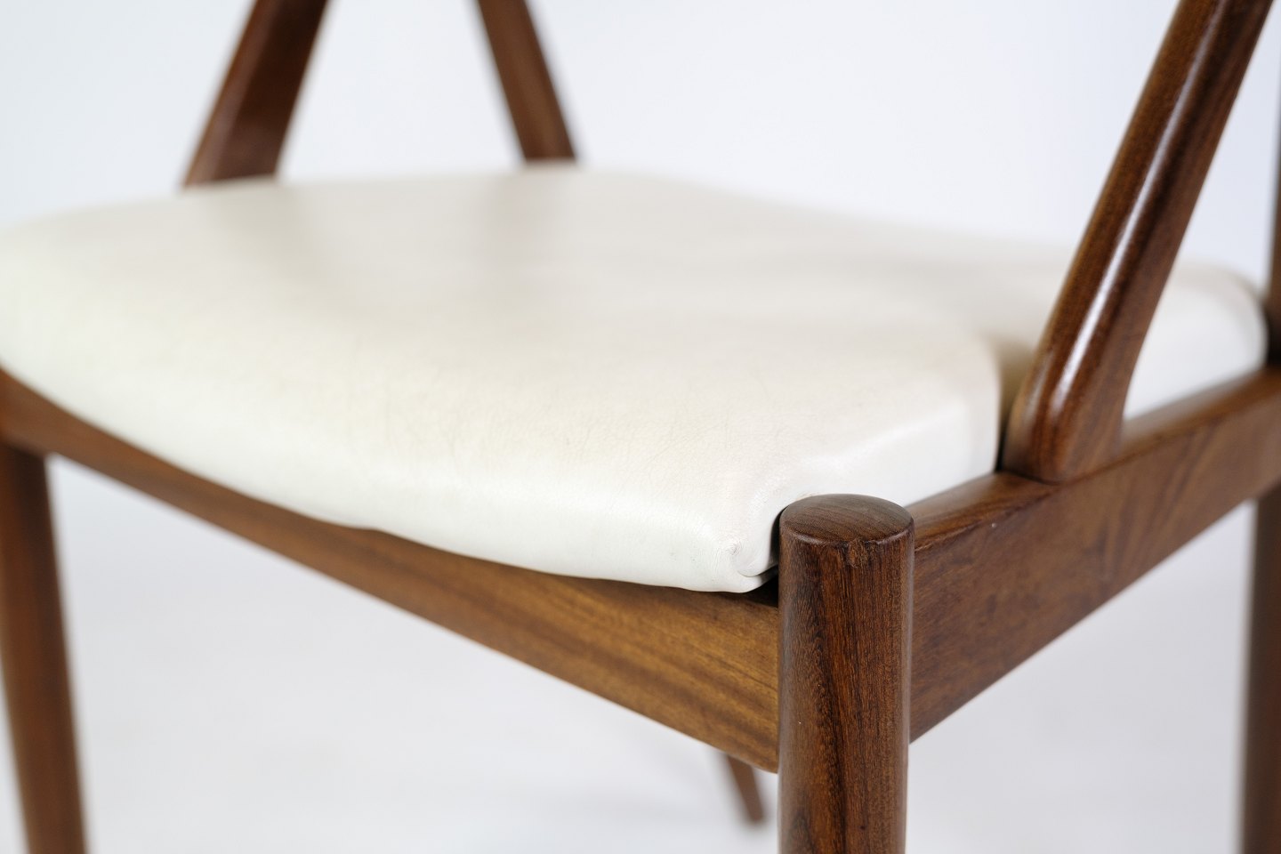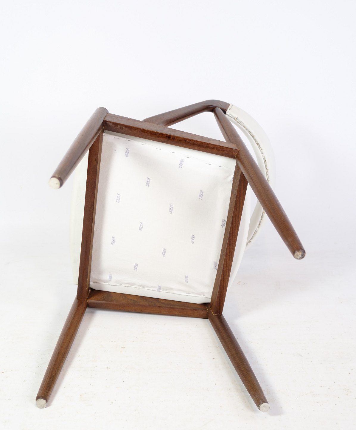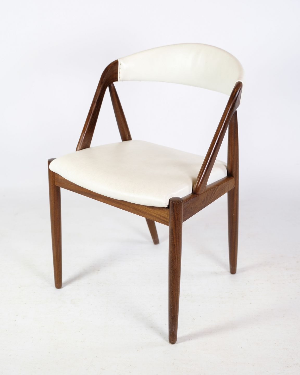 The chair, designed by Kai Kristiansen and made of teak wood, model 31 from around the 1960s and upholstered in white leather, is a remarkable piece of furniture that represents the Scandinavian design tradition in the most beautiful way.