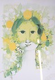 SoldSerigraphic poster by Bjørn Wiinblad with a motif of a woman from around the 1970s