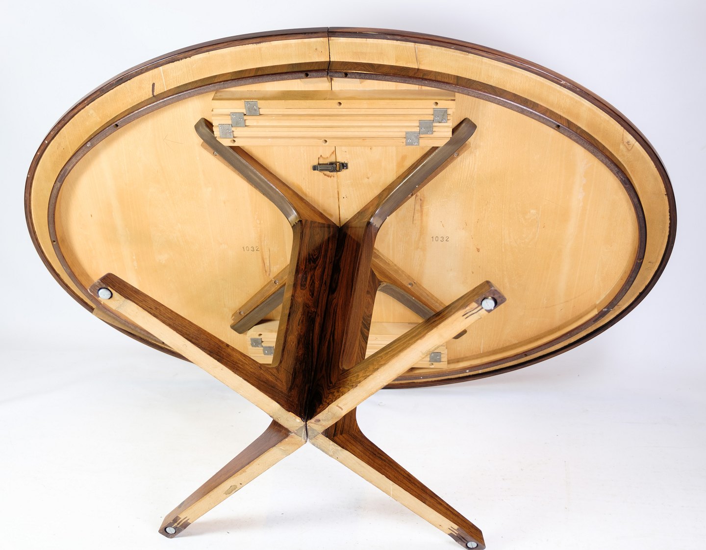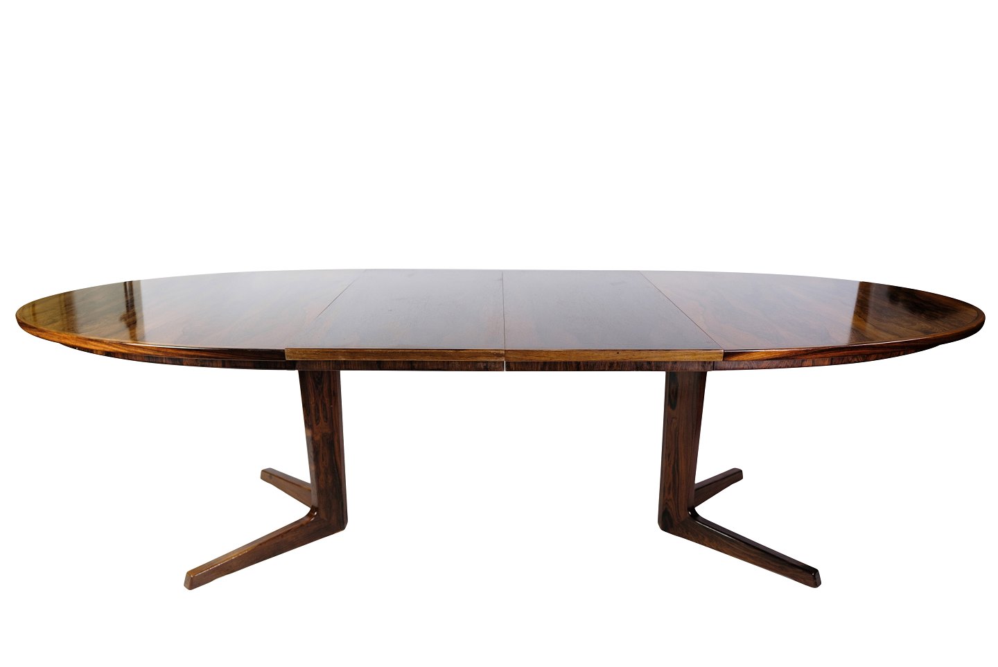 SoldRosewood dining table designed by Bernh. Pedersen & Søn from around the 1960s. The dining table is of high quality. Each piece of furniture is made in the same factory built by Bernh. The Pedersen family in 1902, located in a small community on the Danish nature.