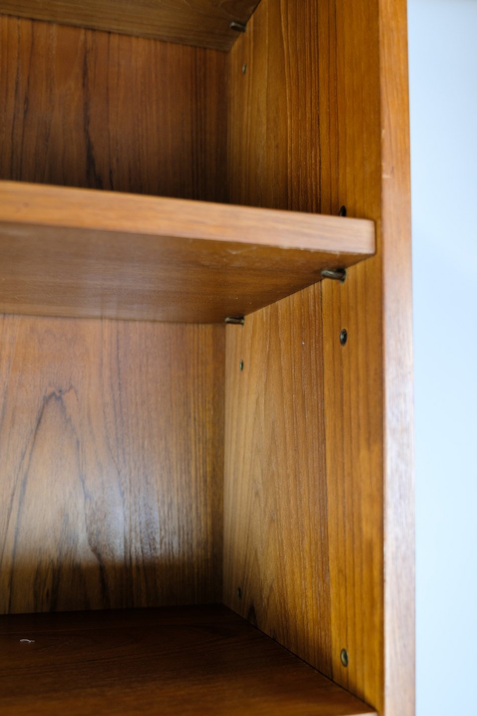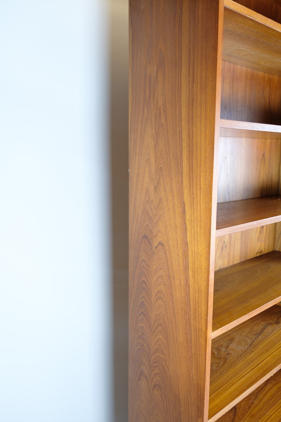 SoldBookcase with removable teak shelves of Danish design from around the 1960s. High quality shelves. 3 pcs in stock.