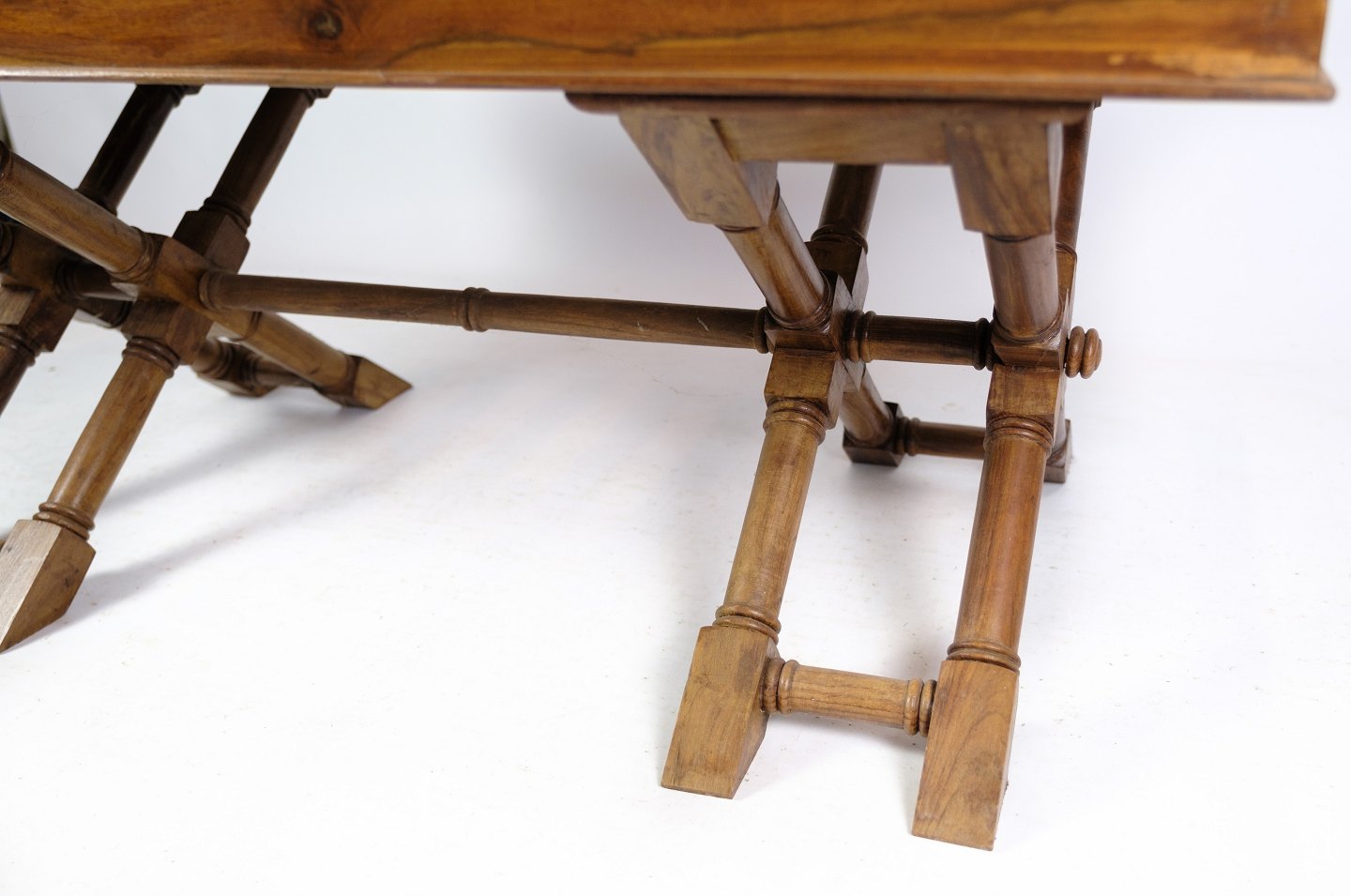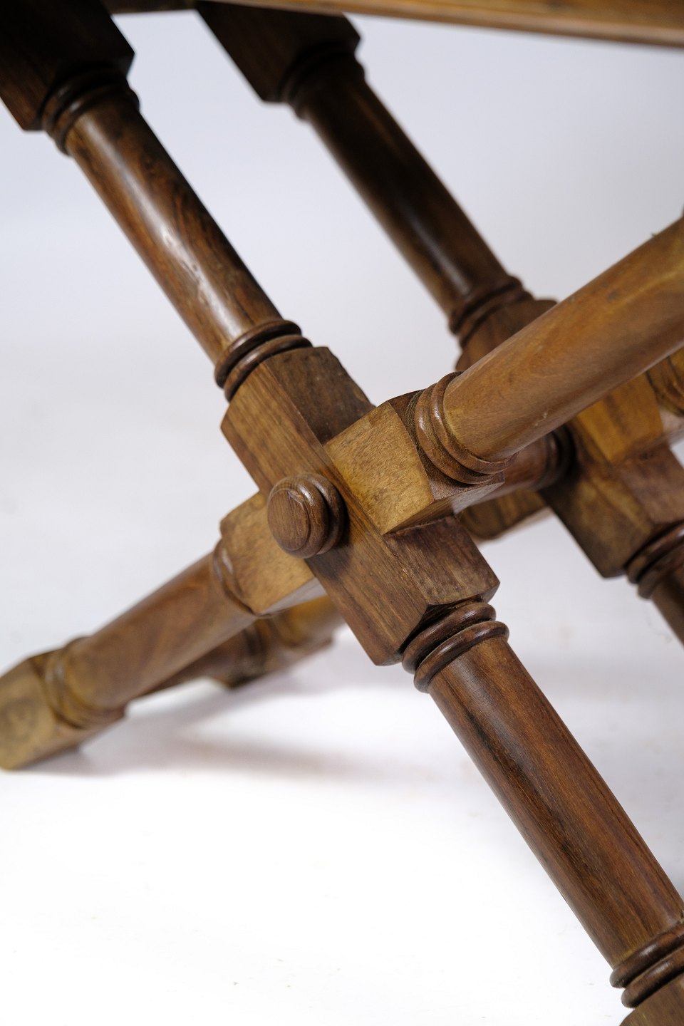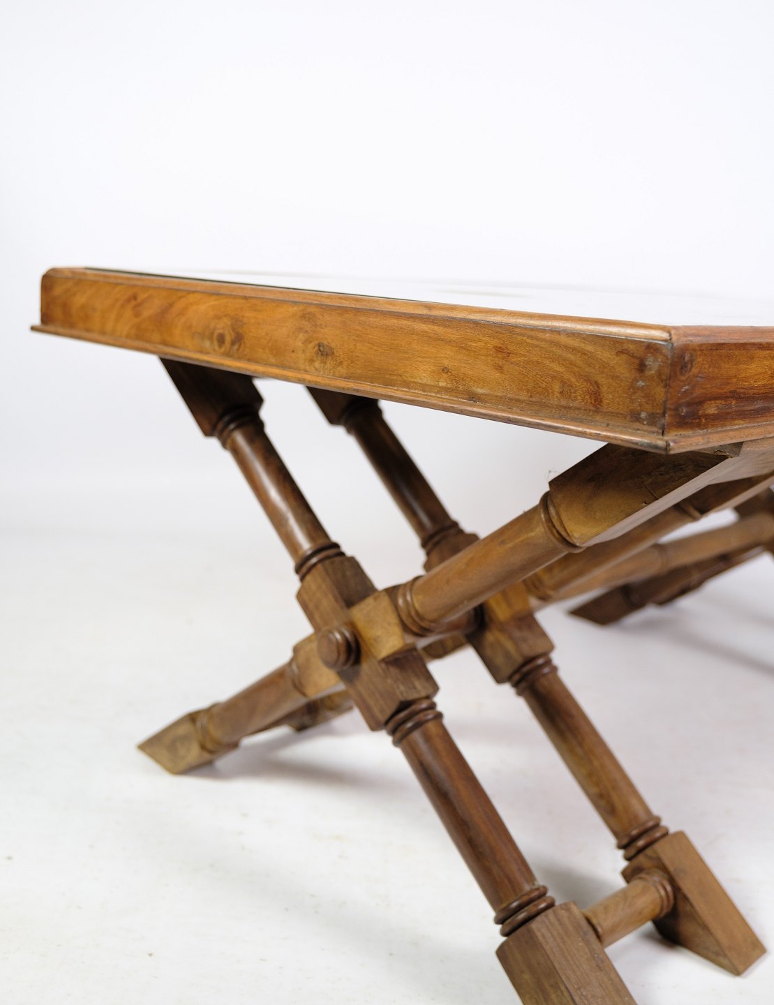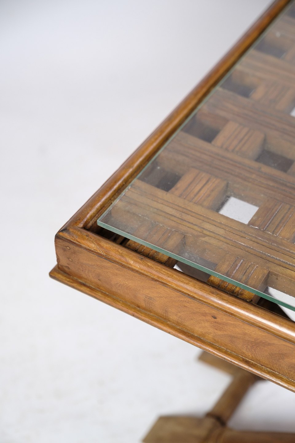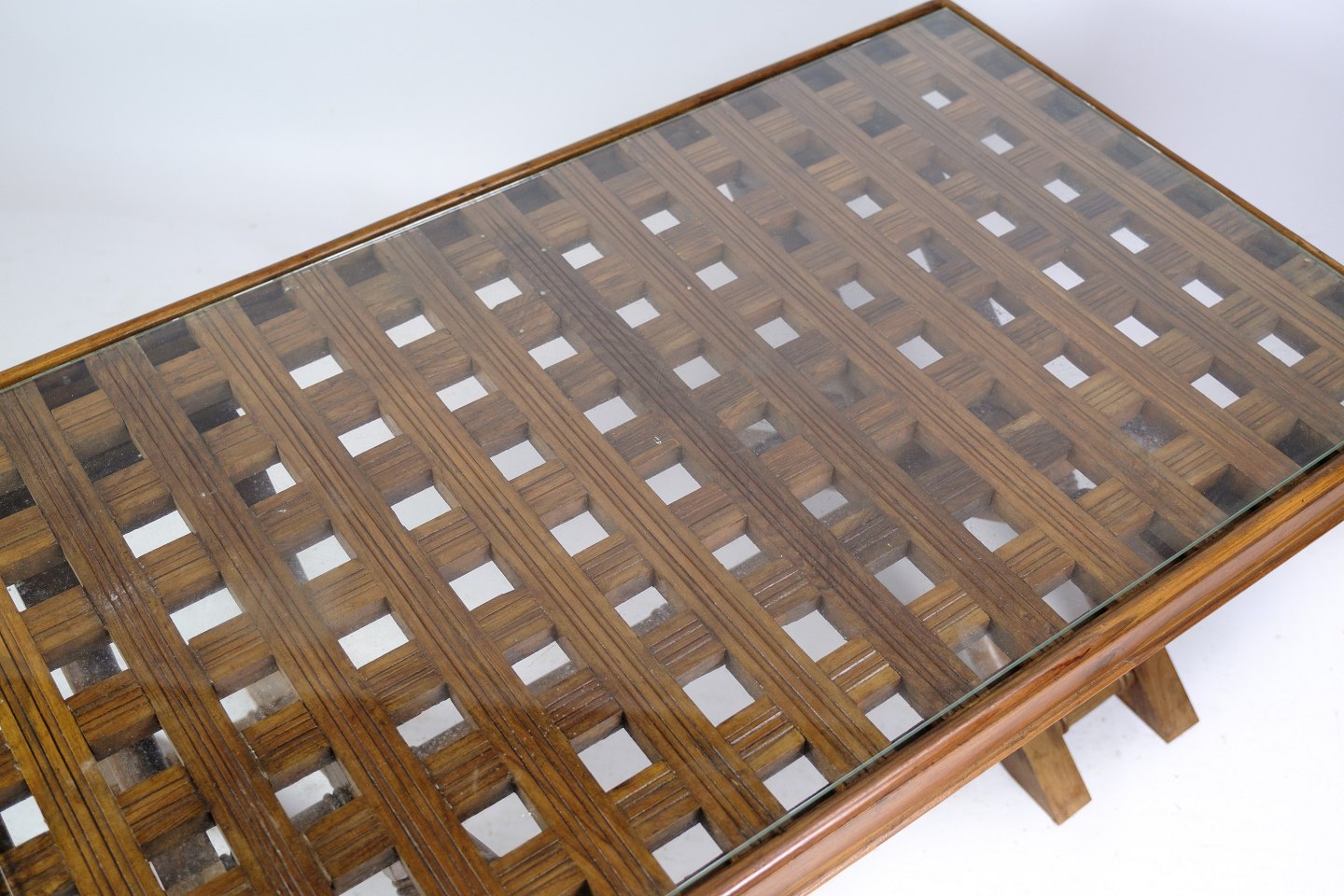 Sofabord i mørkt træ med glas plade fra omkring år 1960'erne.