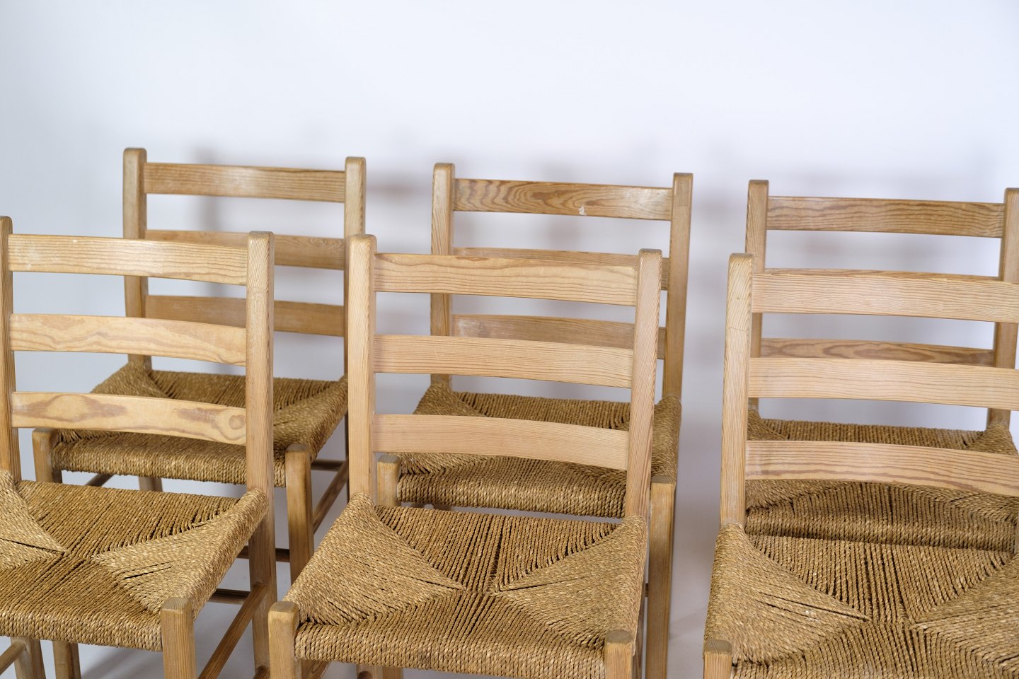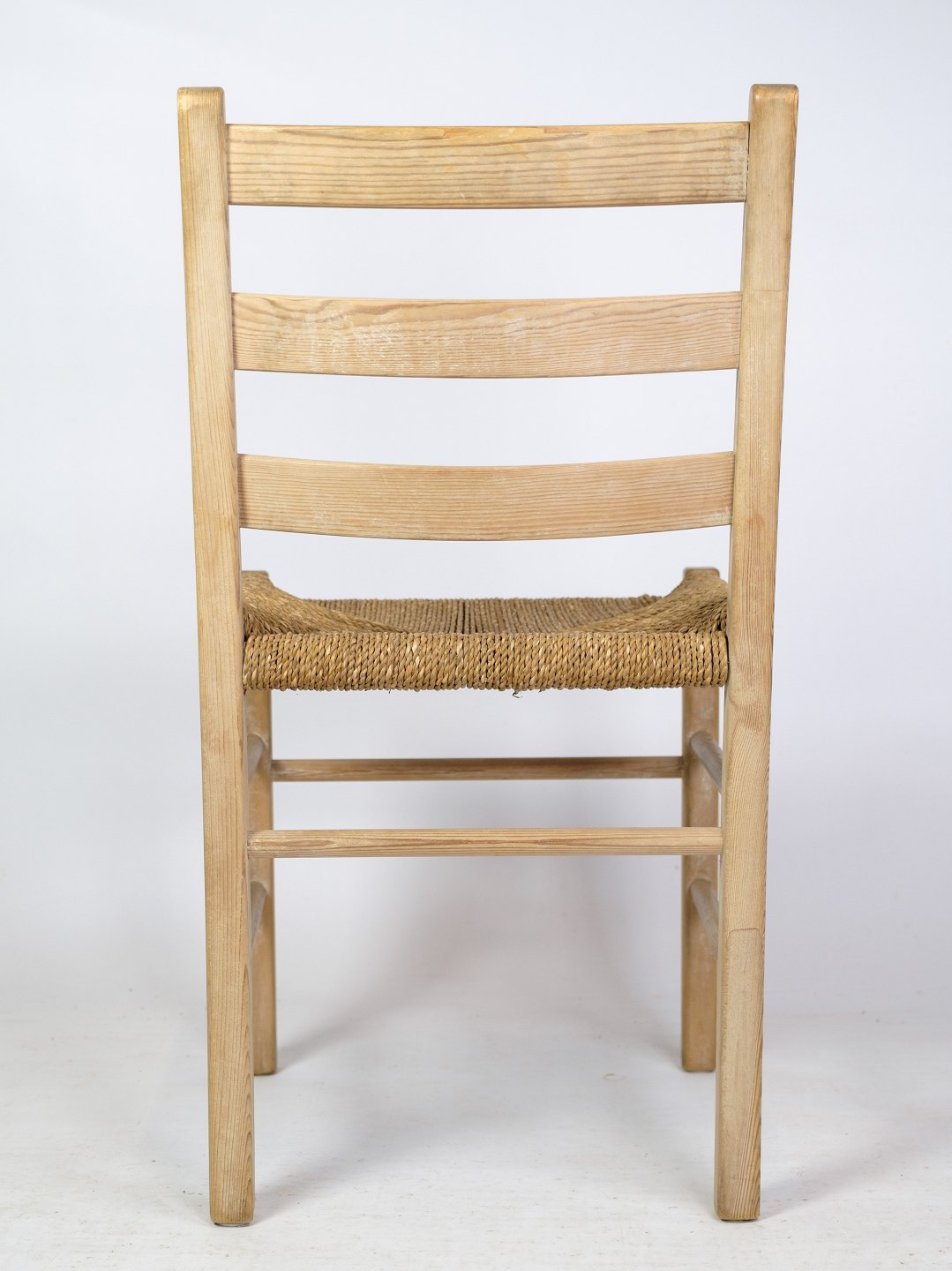 SoldA set of 6 chairs in pine wood with wicker seat from around the 1970s