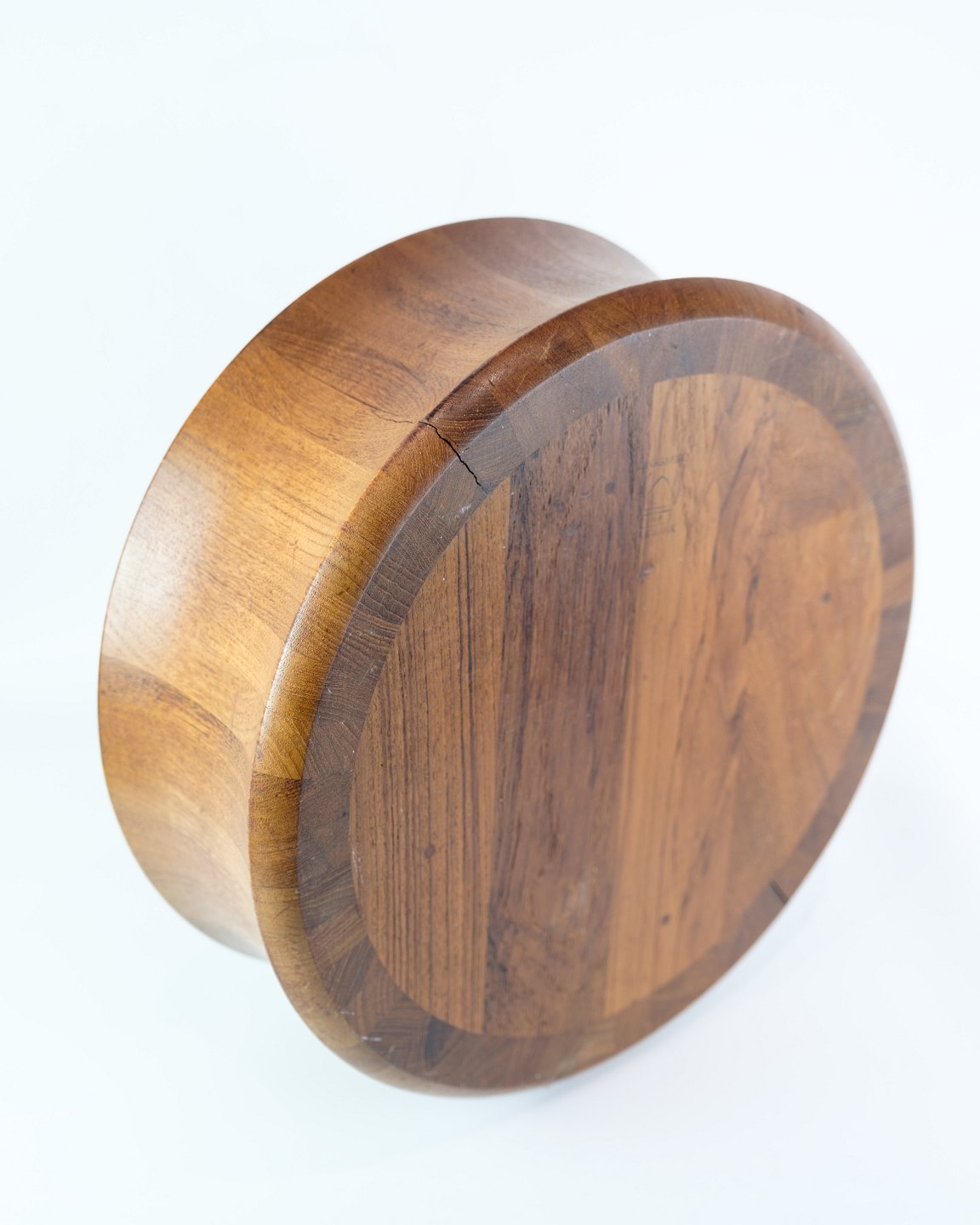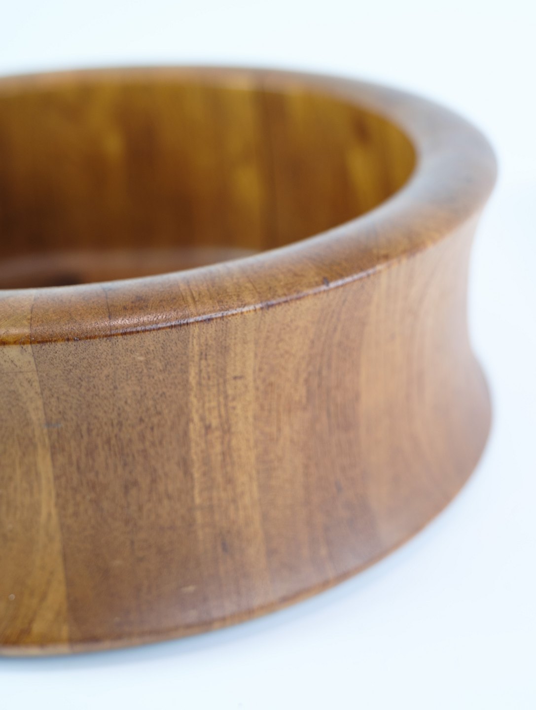 Skål af dansk design i teaktræ med stempel af Digsmed fra omkring år 1960'erne. Revnen vil blive repareret på vores egne værksted inden eventuel salg.