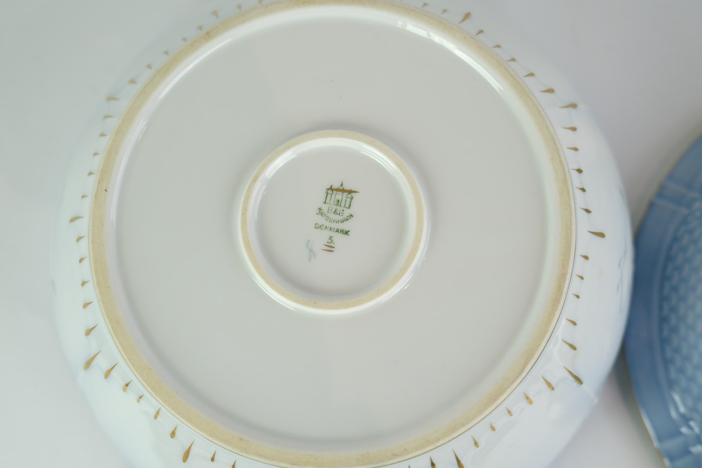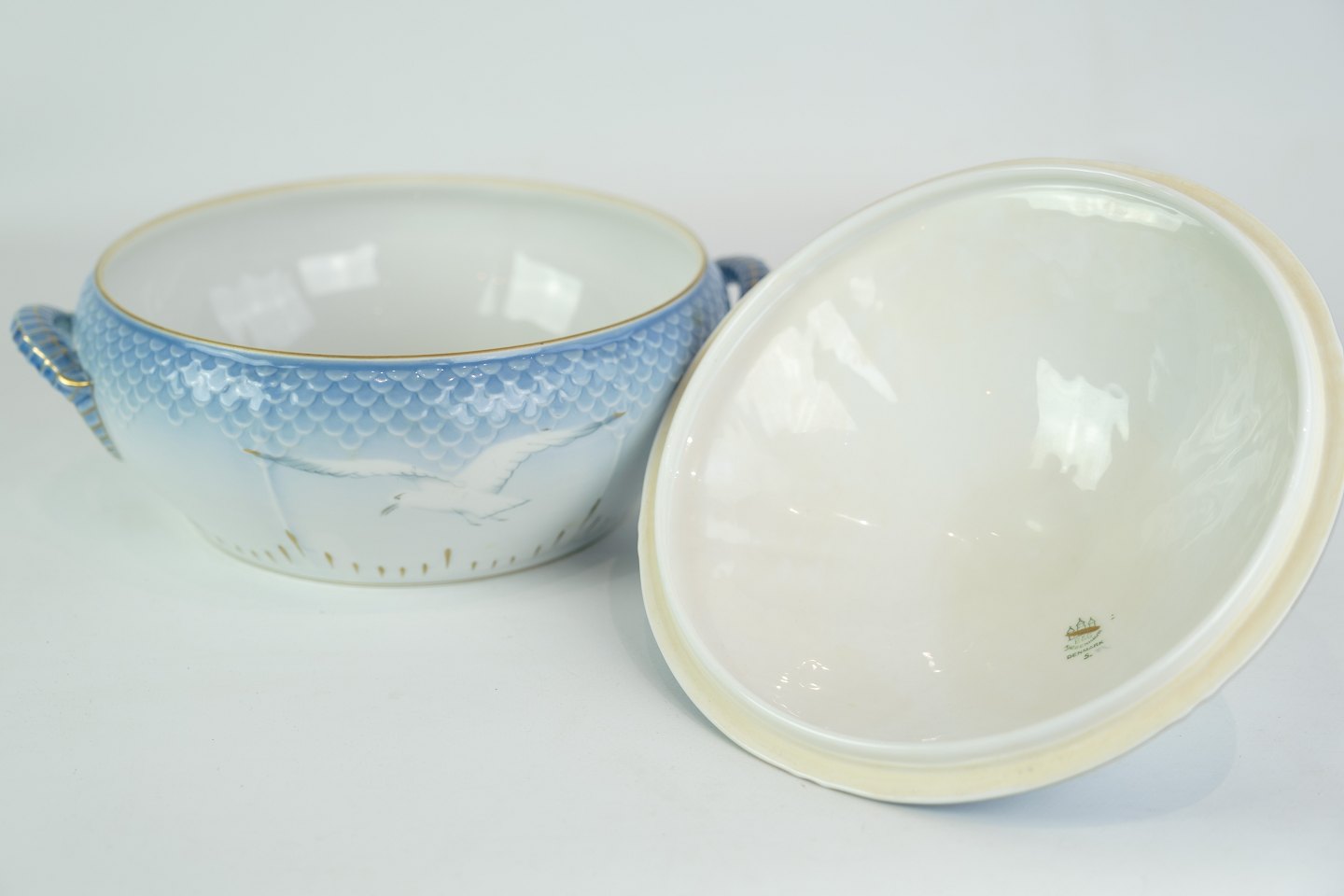 SoldRound tureen from Bing & Grondahl in seagull frame with golden edge.
