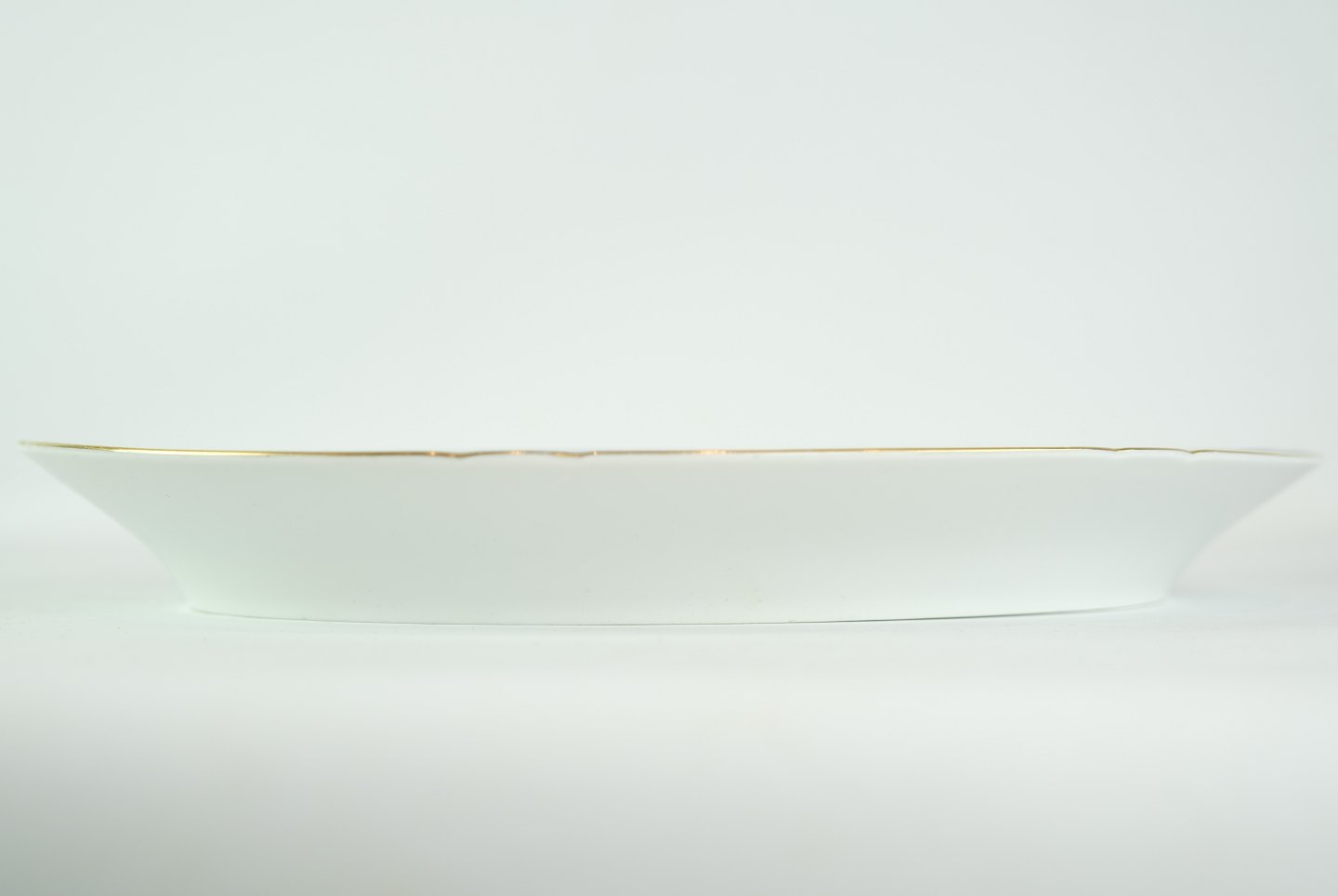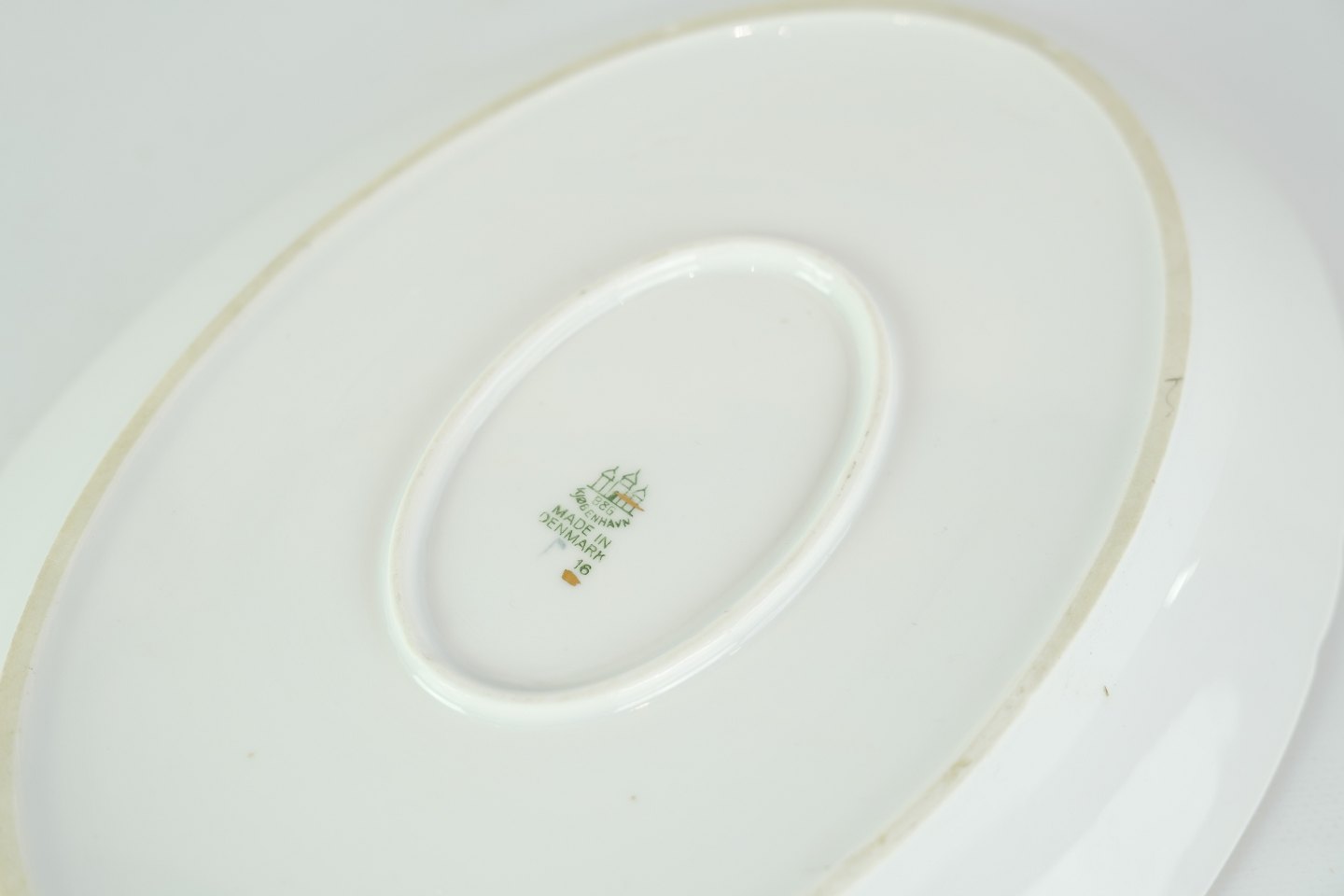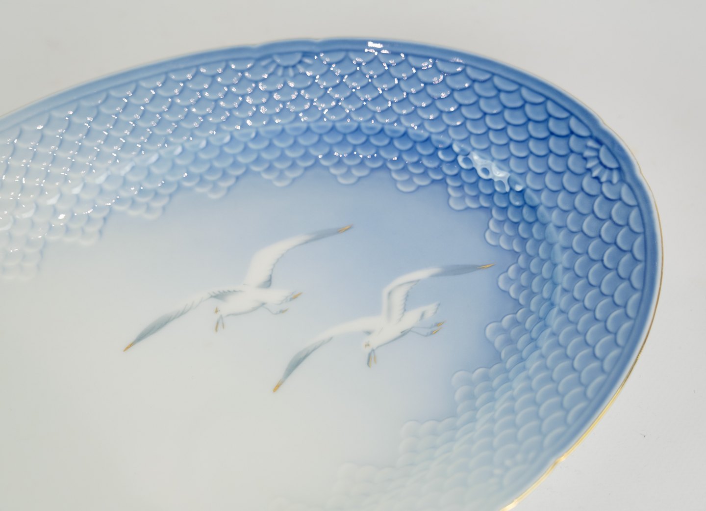 Stort ovalt fad fra Bing & Grøndahl i mågestellet med guldkant no. 16.