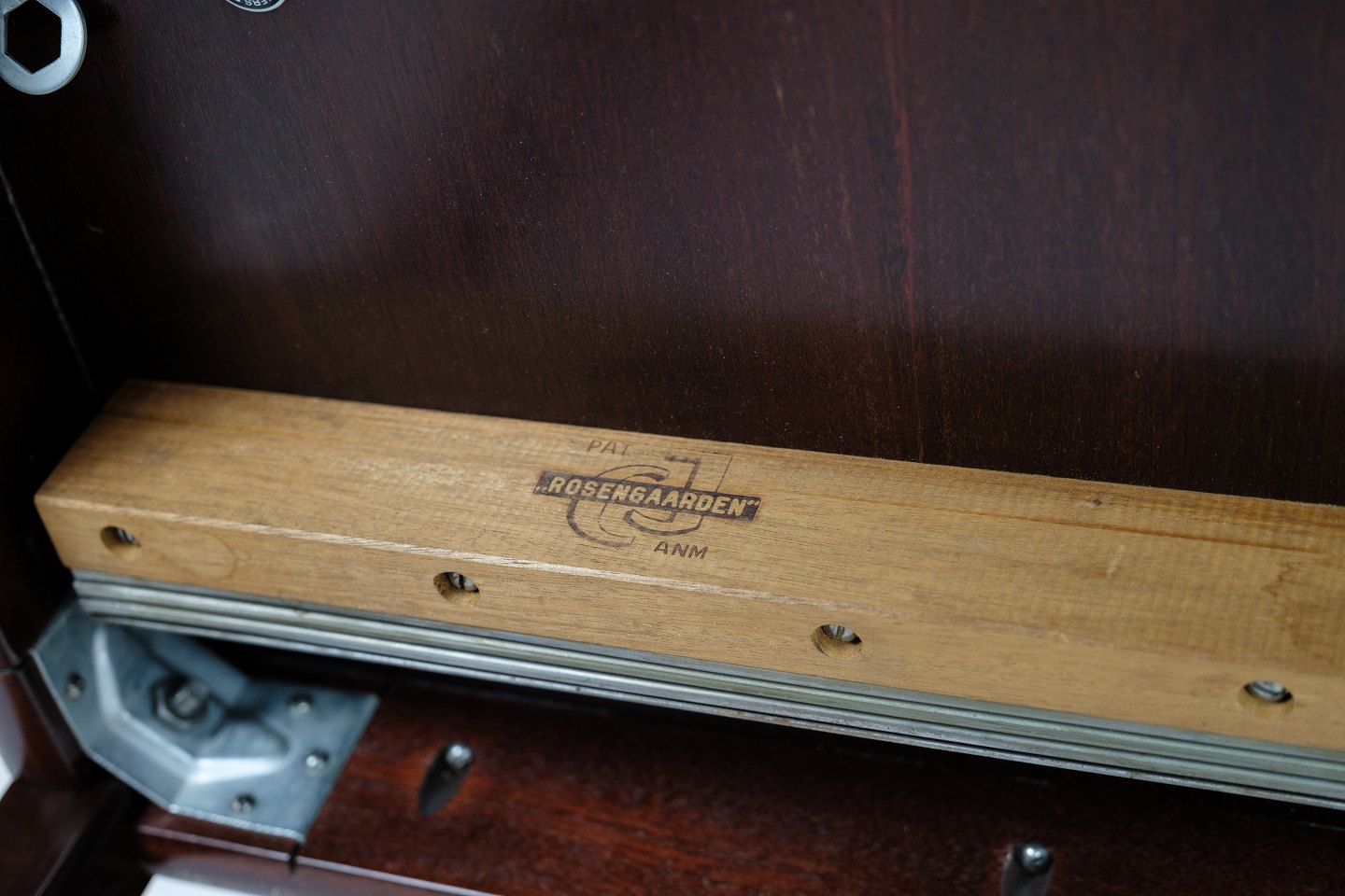 SolgtSpisebord af mørkt mahogni designet af Ole Wancher fremstillet hos P. Jeppesen. Et bord af meget høj kvalitet i god stand.