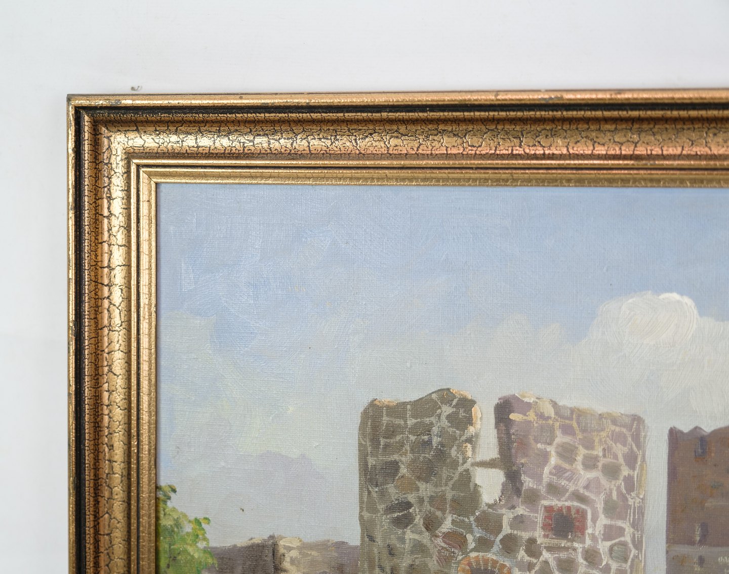 Oliemaleri på lærredet med motiv af borg i Danmark fra omkring år 1920'erne. Signeret