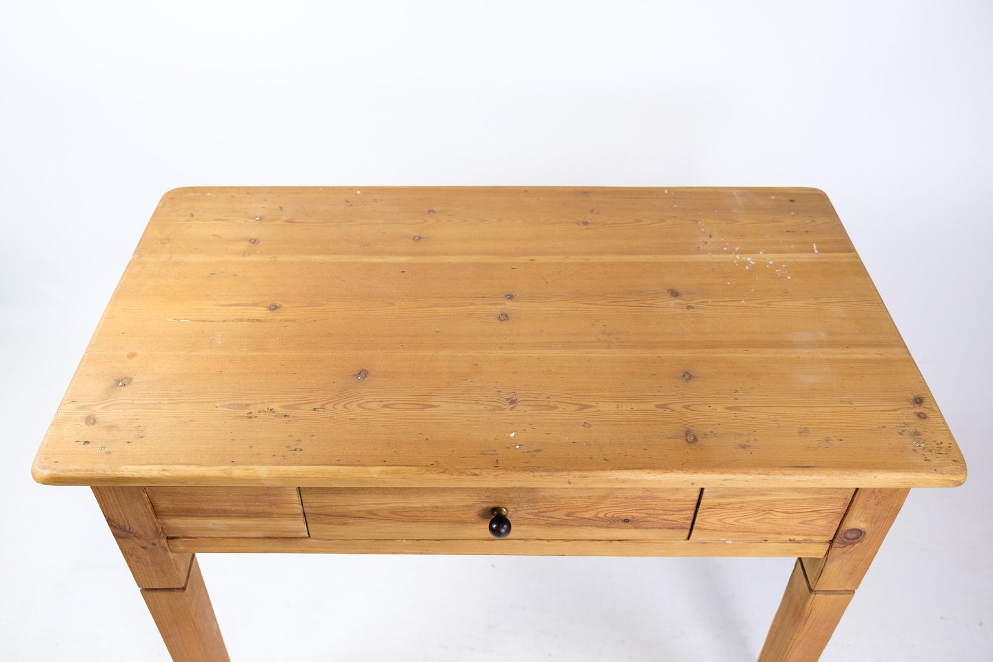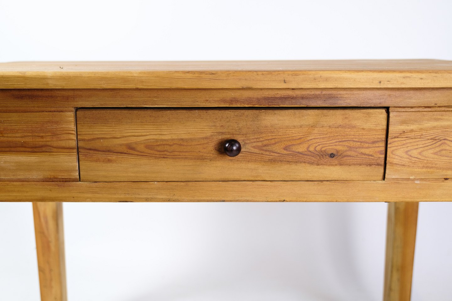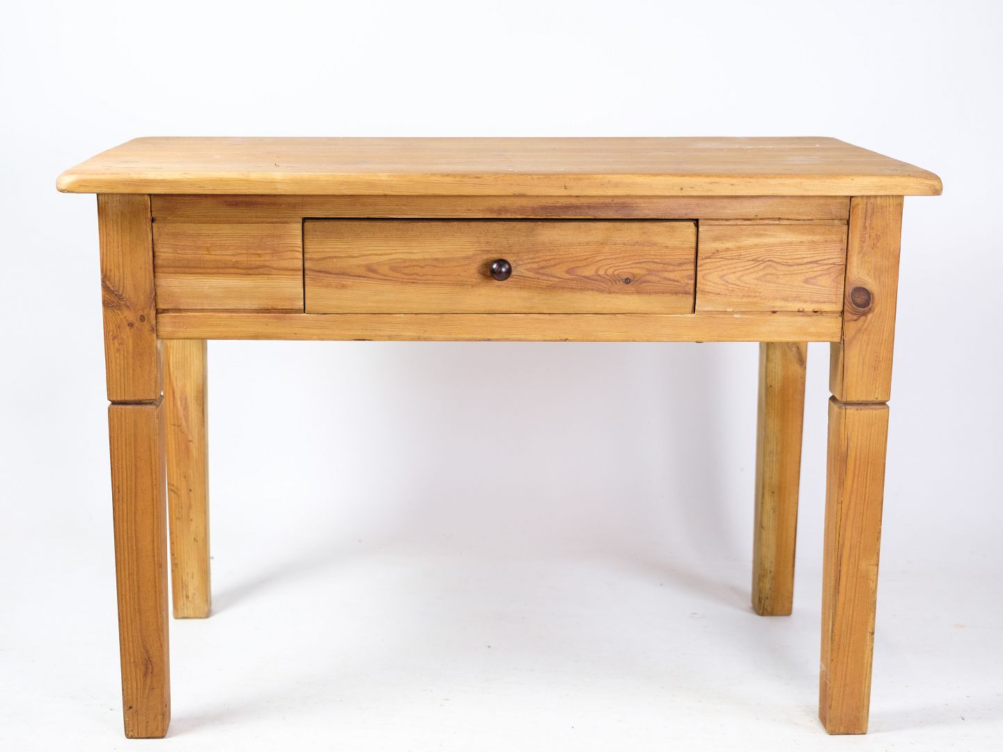 This circa 1920s pine side table with one drawer is a charming example of early 20th century furniture design. Its simple yet sturdy construction and vintage look add character and nostalgic appeal to any room.