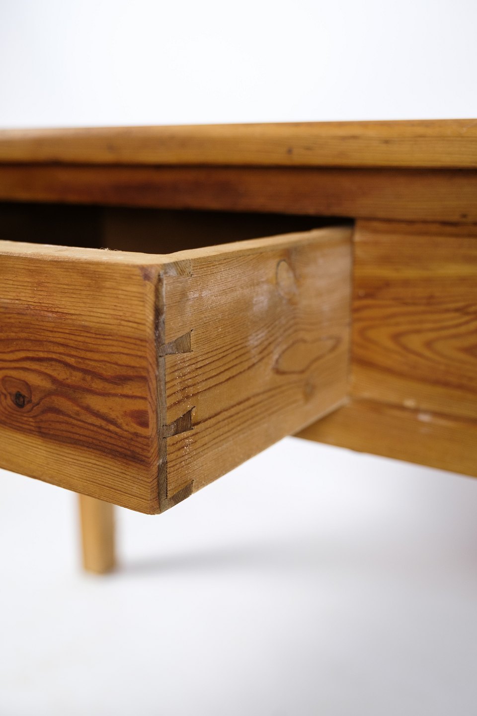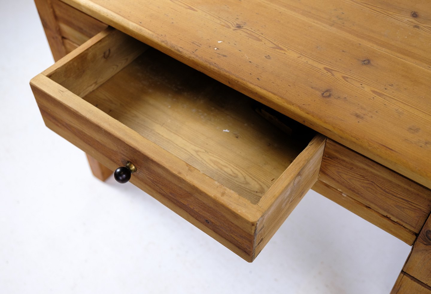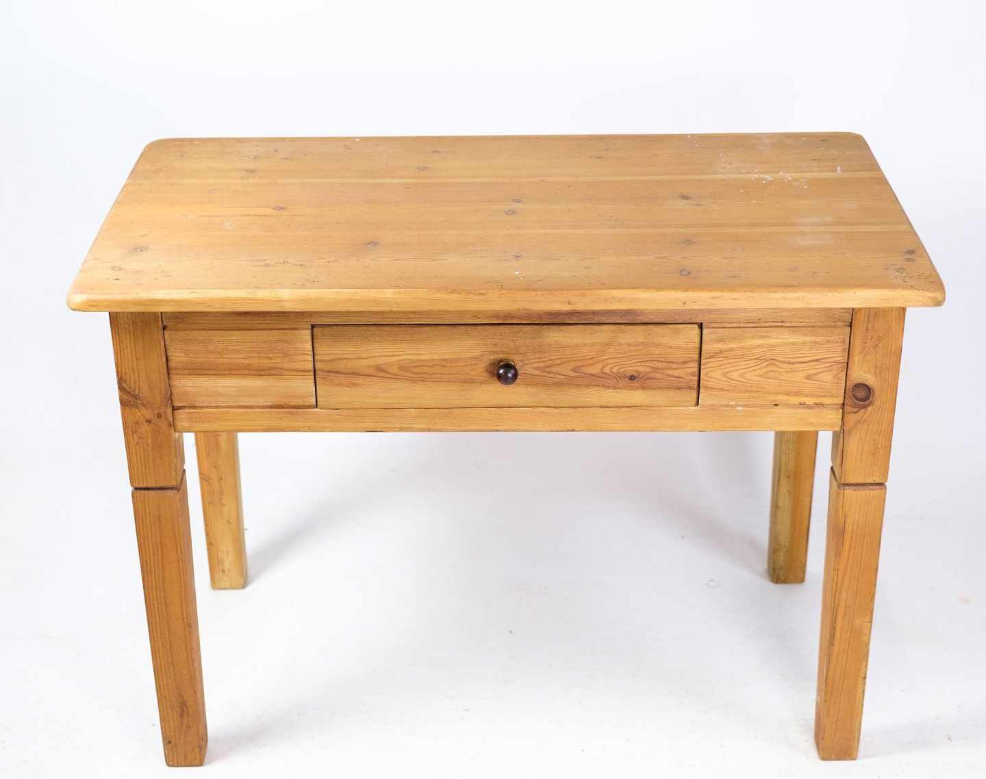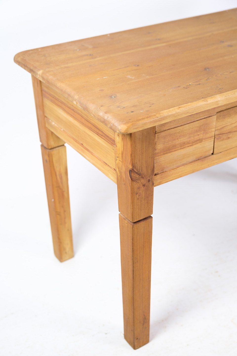 This circa 1920s pine side table with one drawer is a charming example of early 20th century furniture design. Its simple yet sturdy construction and vintage look add character and nostalgic appeal to any room.