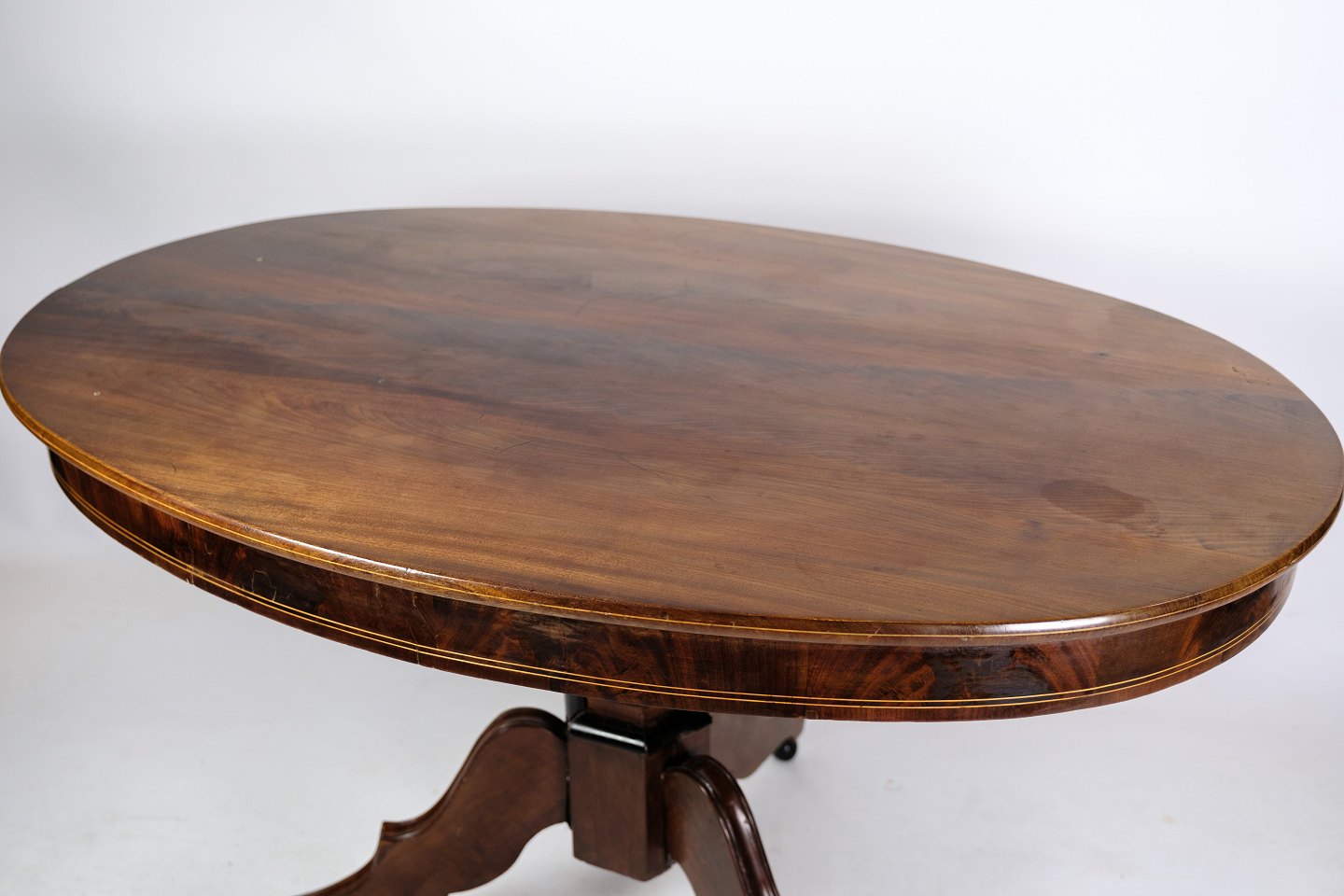 Dining table on a mahogany pillar with marquetry from the late Empire period from around the year 1840s