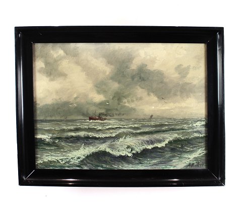 Oliemaleri på lærredet med motiv af et bondehus fra omkring 1930’erne