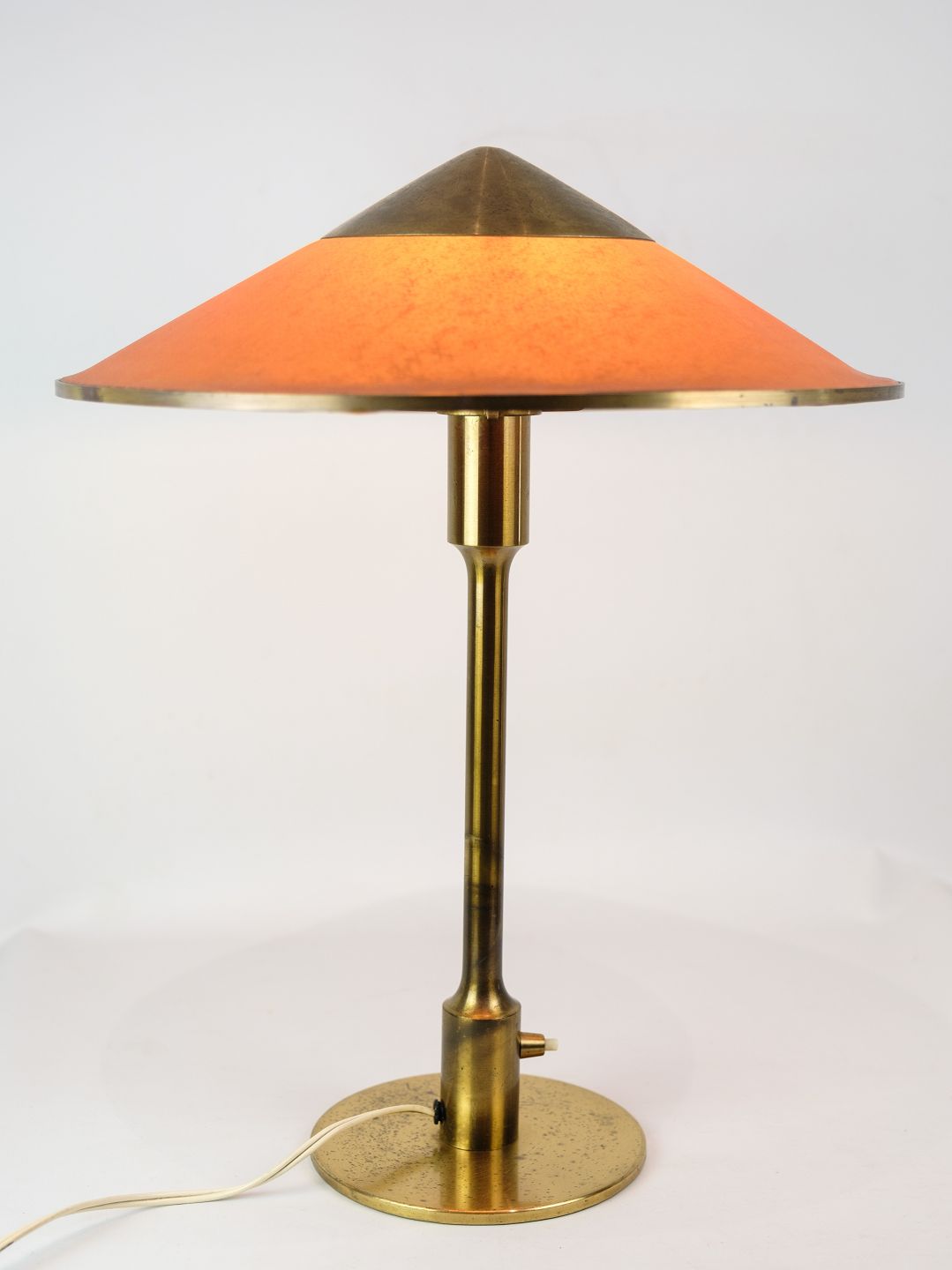 SoldRoyal candle table lamp by Fog and Mørup of amber colored shade plastic and burnished brass. Originally called T3 Minor designed by Niels Rasmussen Thykier in 1930, in 1937 it was taken over by Fog Og Mørup and renamed Royal Candles. The lamp is in very good condition.