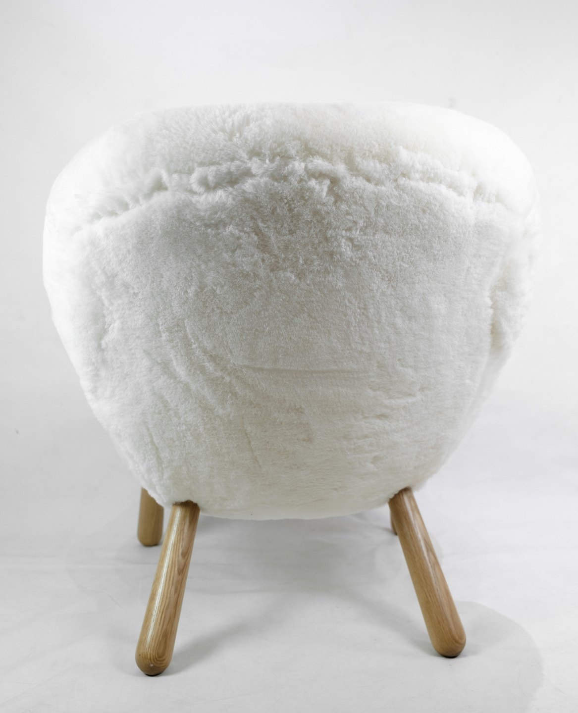 SoldThe Arctander chair known as the "muslingestolen" designed by Philip Arctander with sheepskin. A lounge chair of high quality and incredibly good seat comfort with oak legs.
