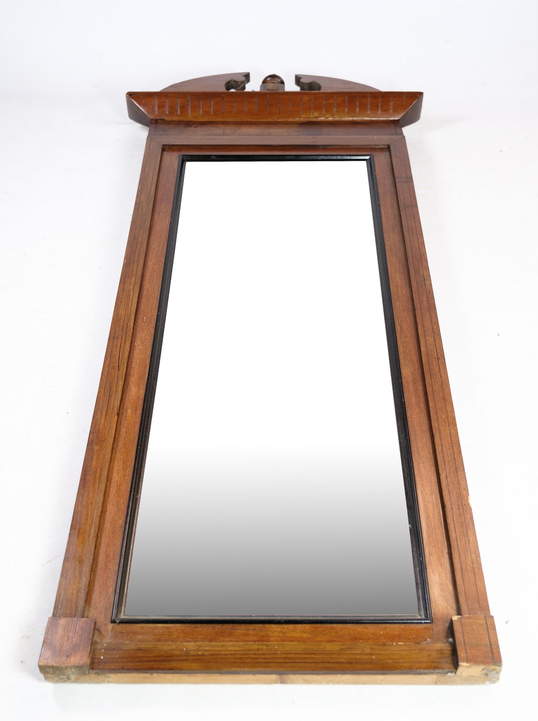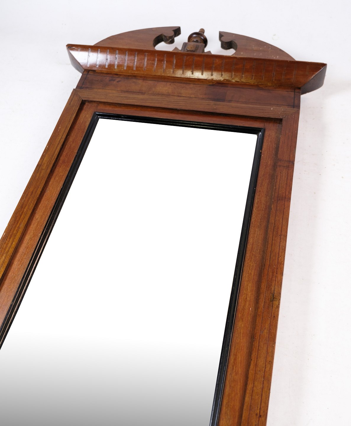 Mirror of hand-polished mahogany, with carvings, made in Denmark from around the 1880s
