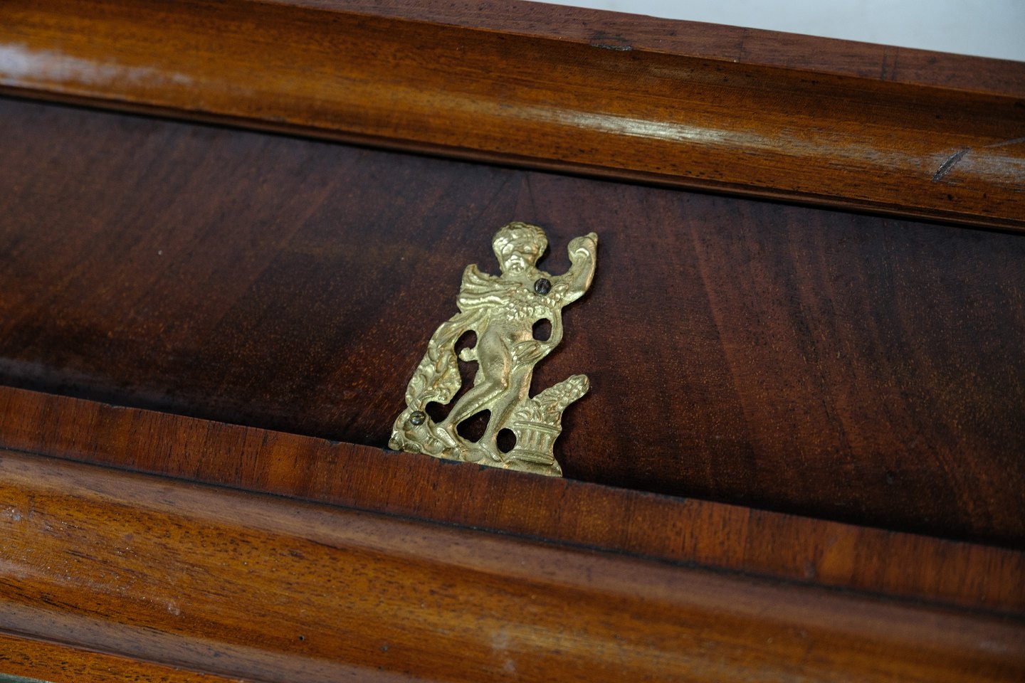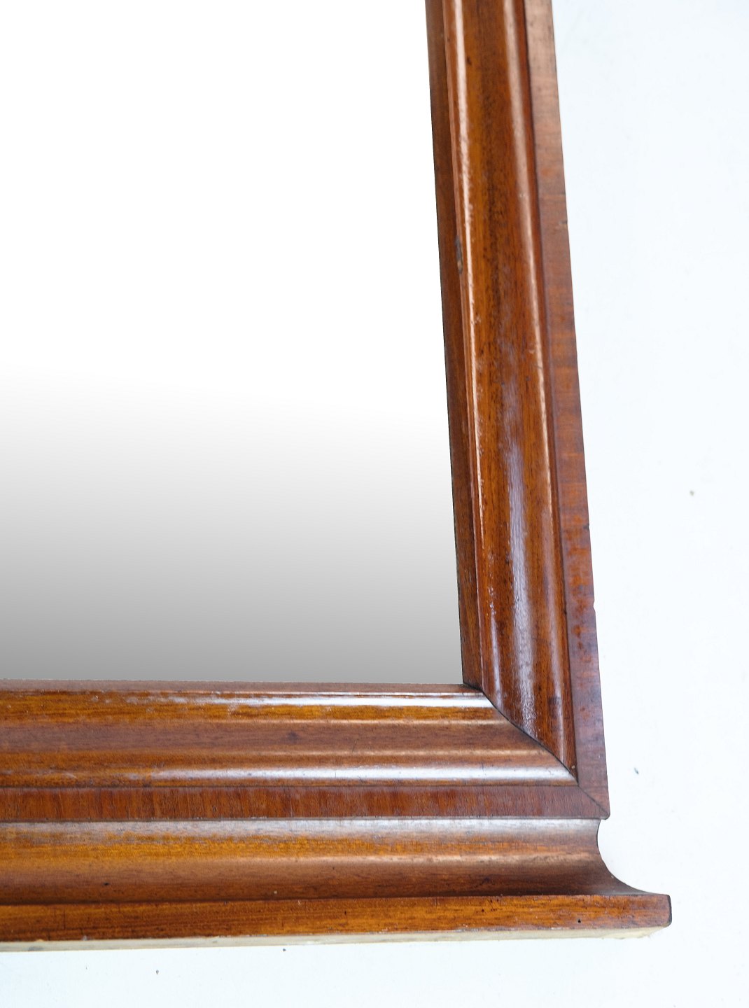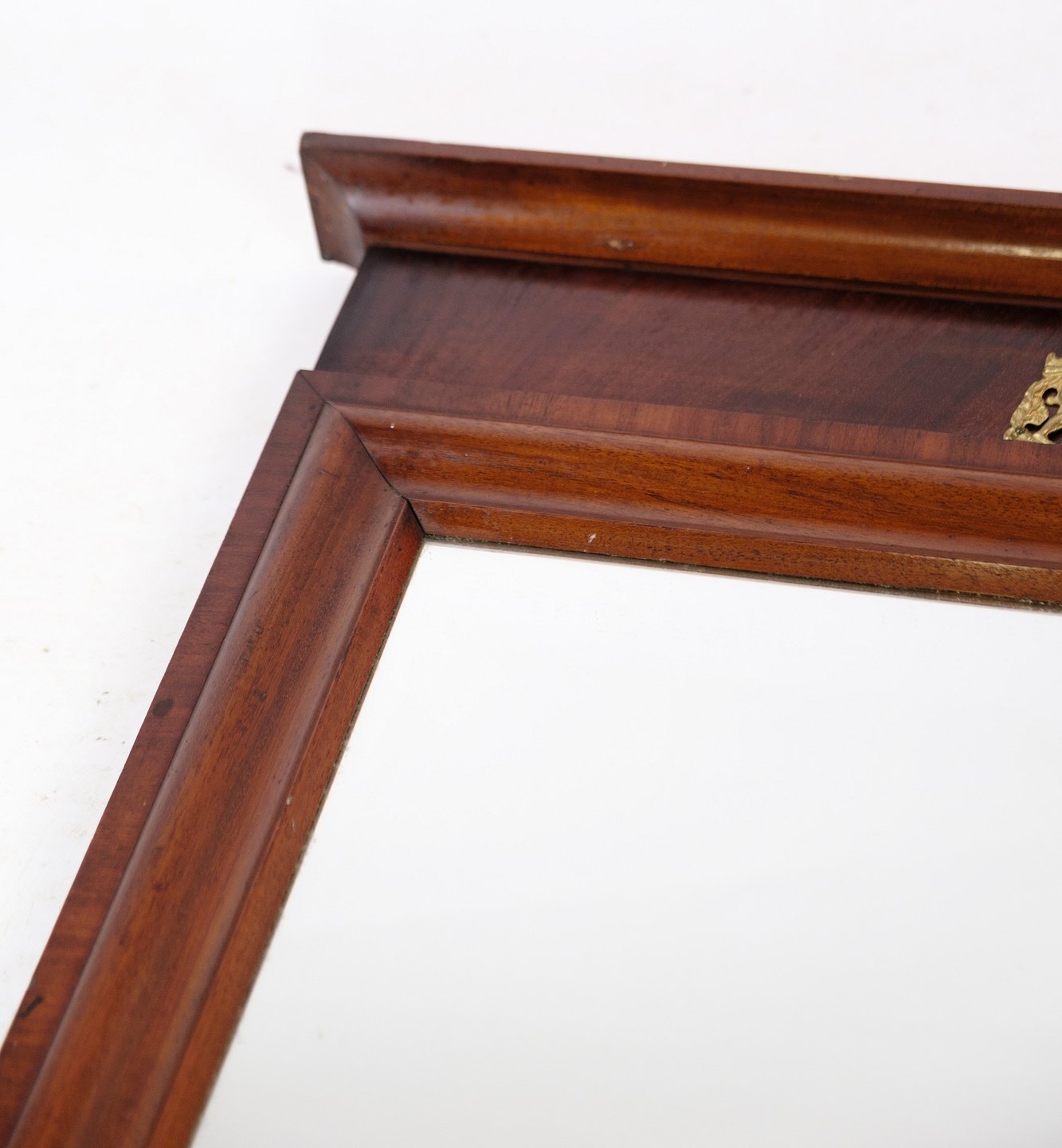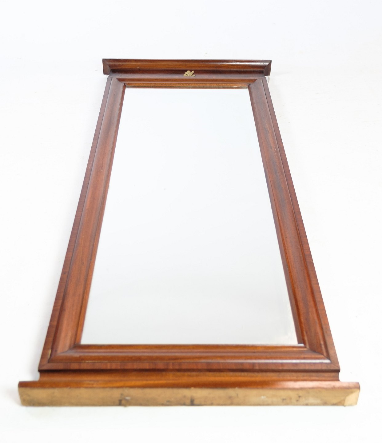Spejl af hånd poleret mahogni, med messing dekoration, lavet i Danmark fra omkring 1880'erne