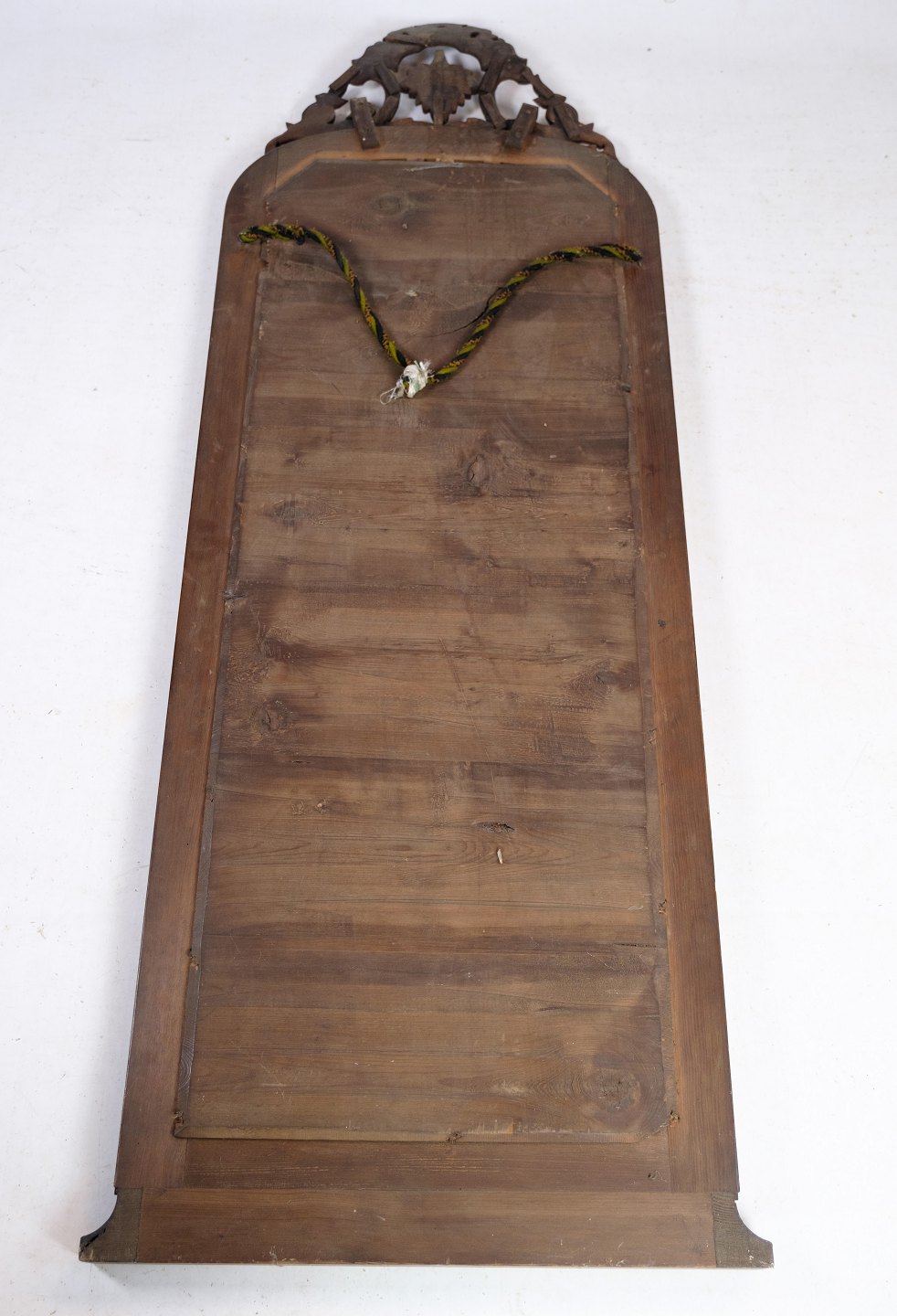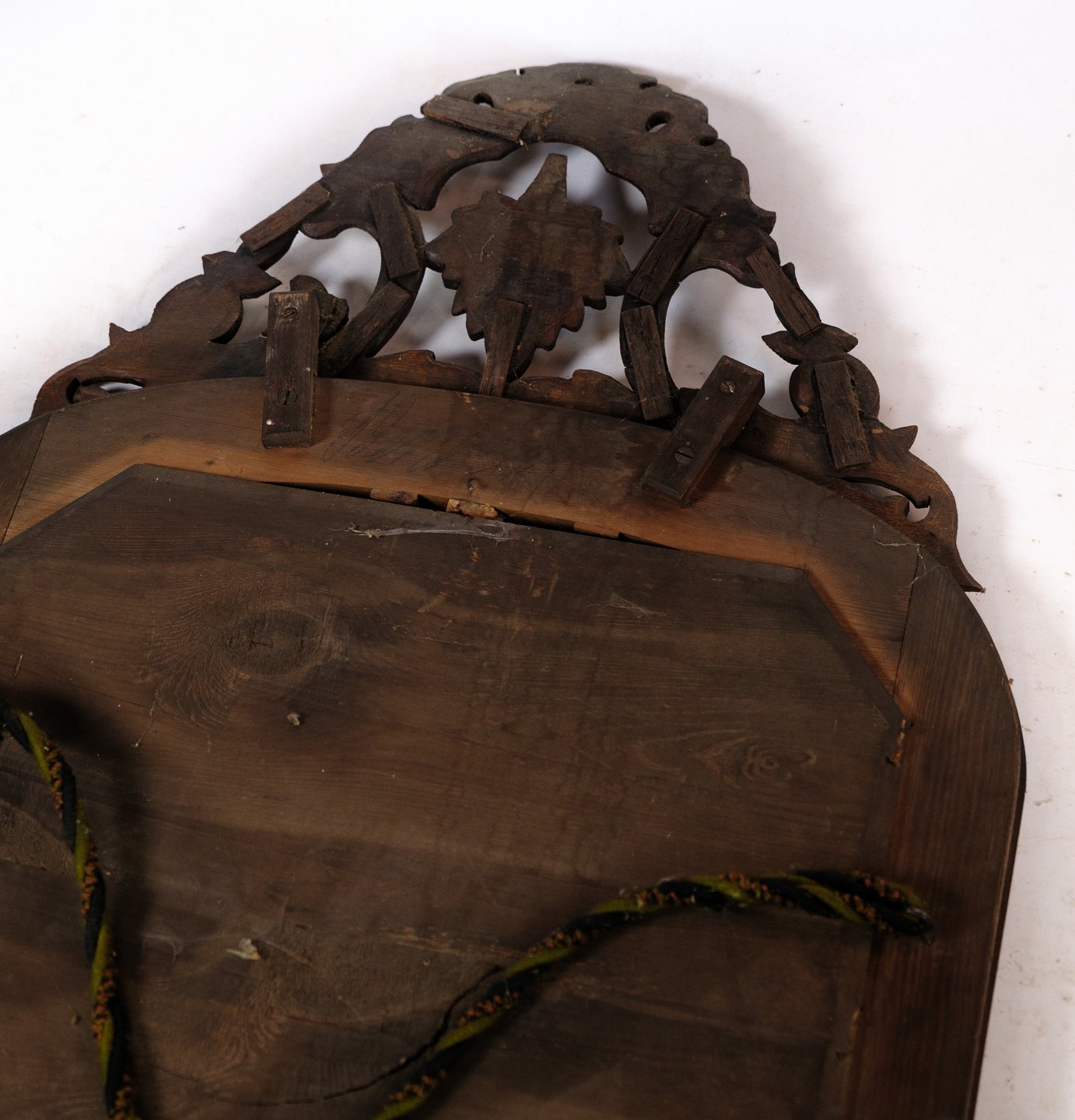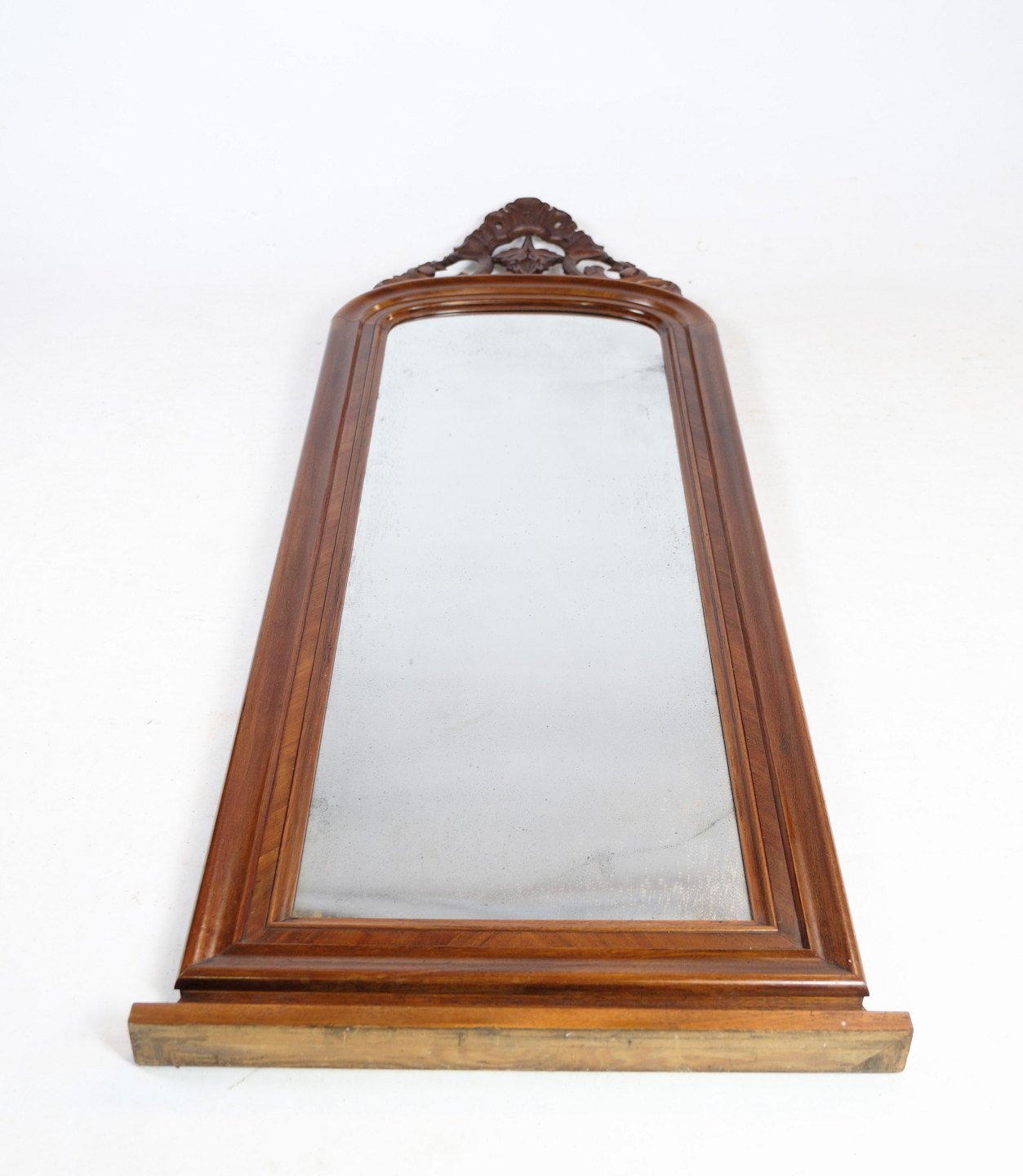 SoldAntique mirror in mahogany wood, decorated with carvings from around the 1860s.