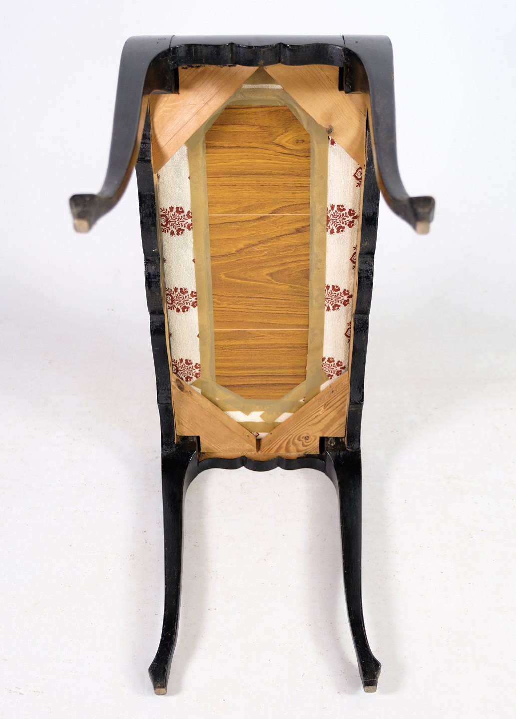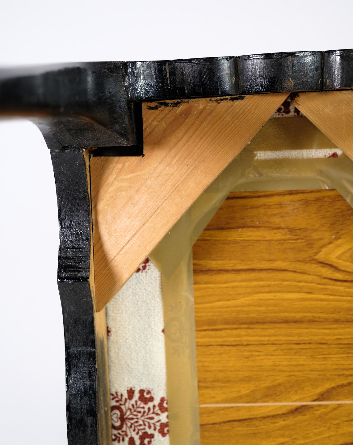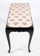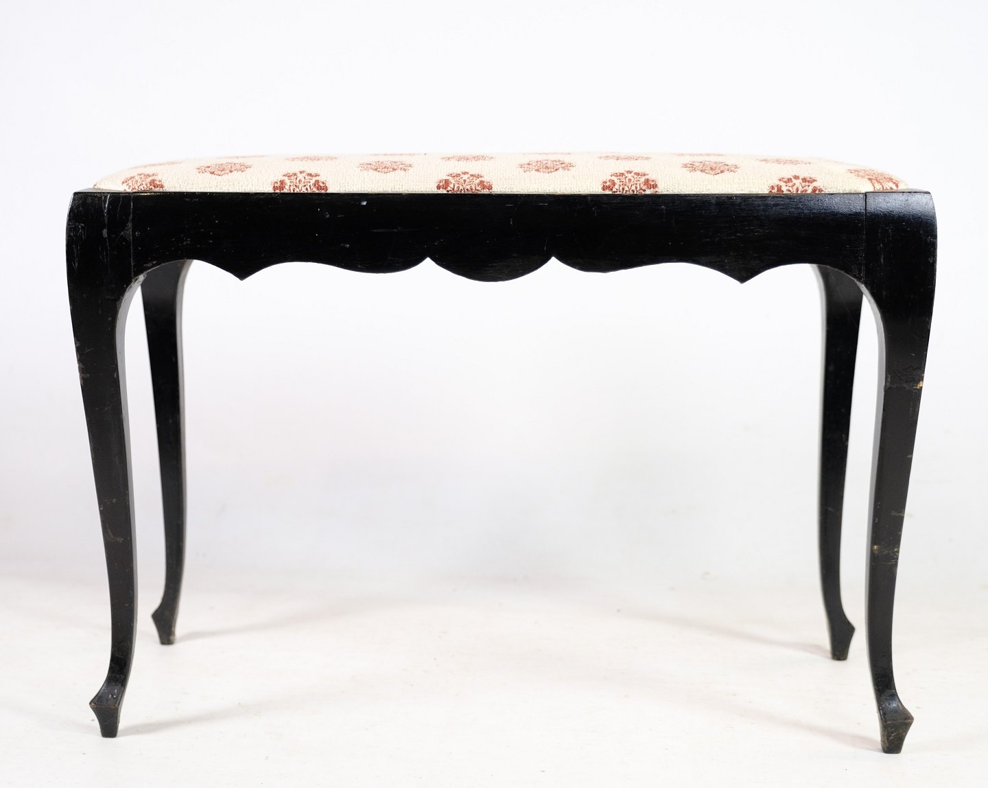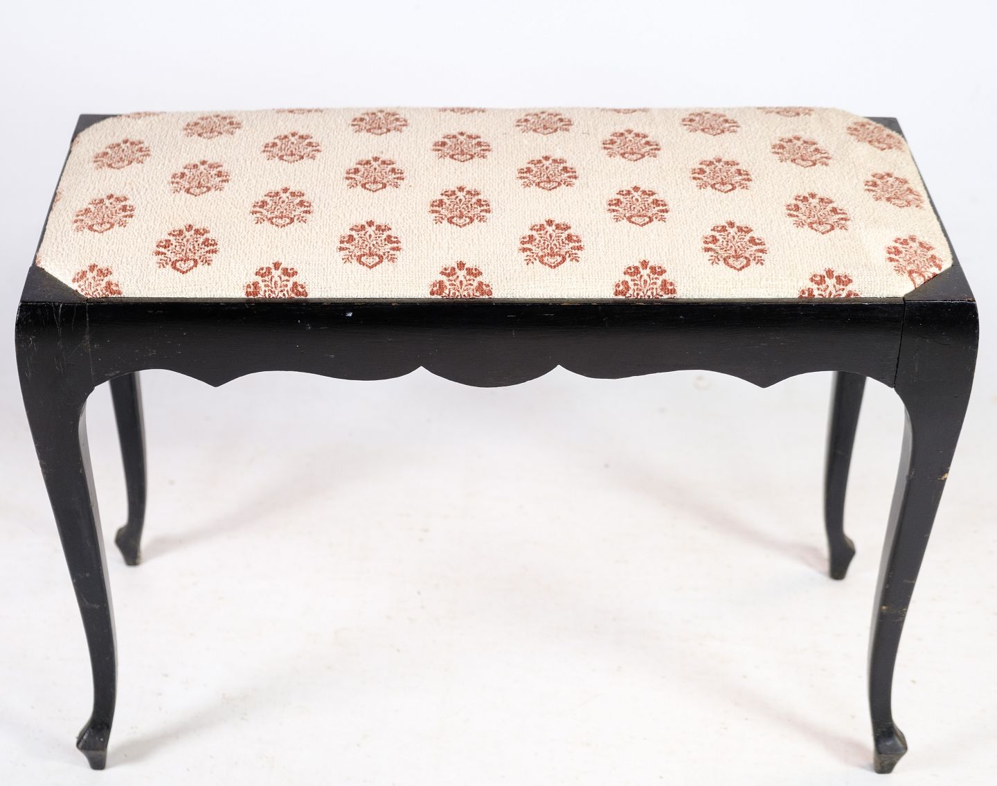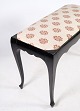 SoldPiano bench in dark mahogany with light wool fabric from the 1930s.