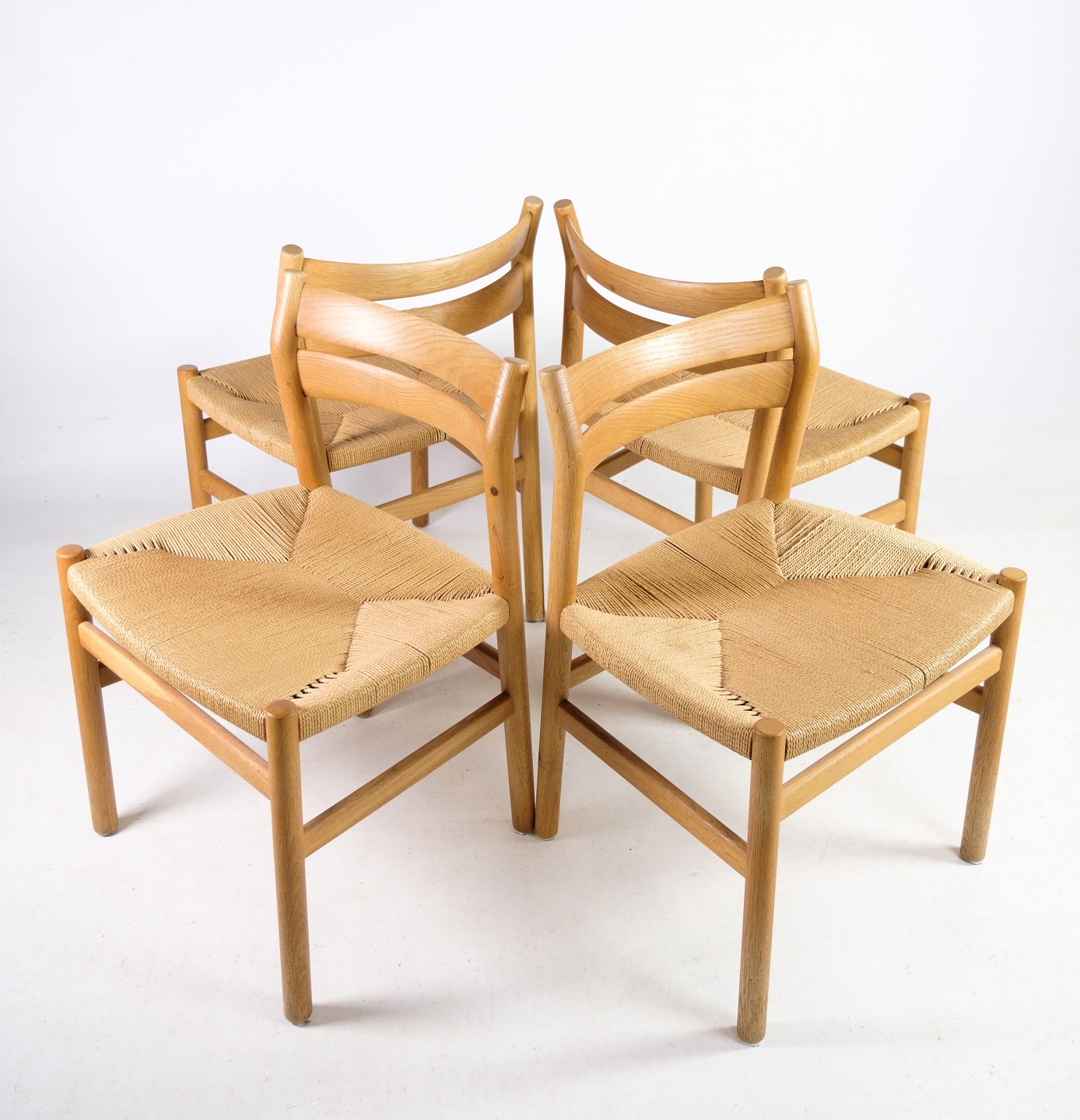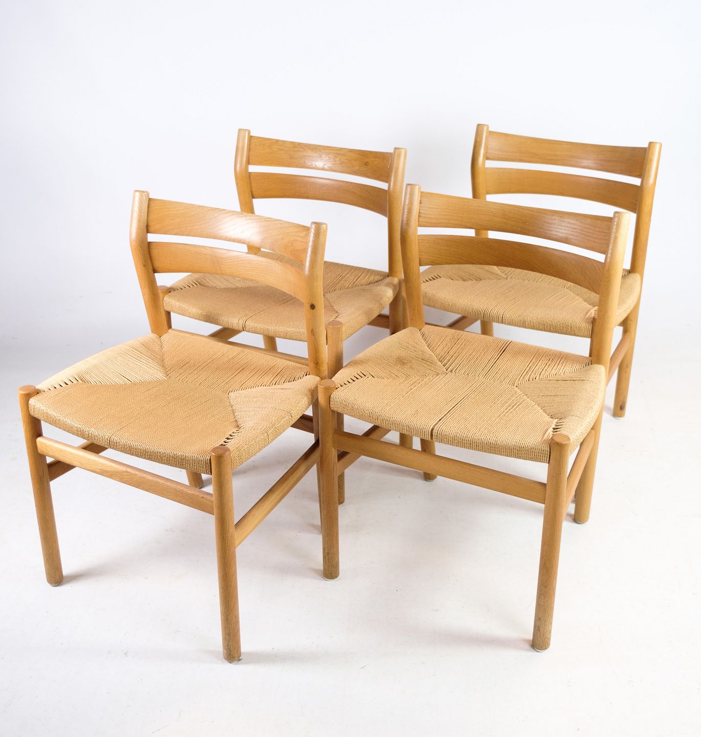 SoldSet of four dining room chairs, model BM1, in oak and wicker designed by Børge Mogensen from the 1960s. The chairs are in good used condition.