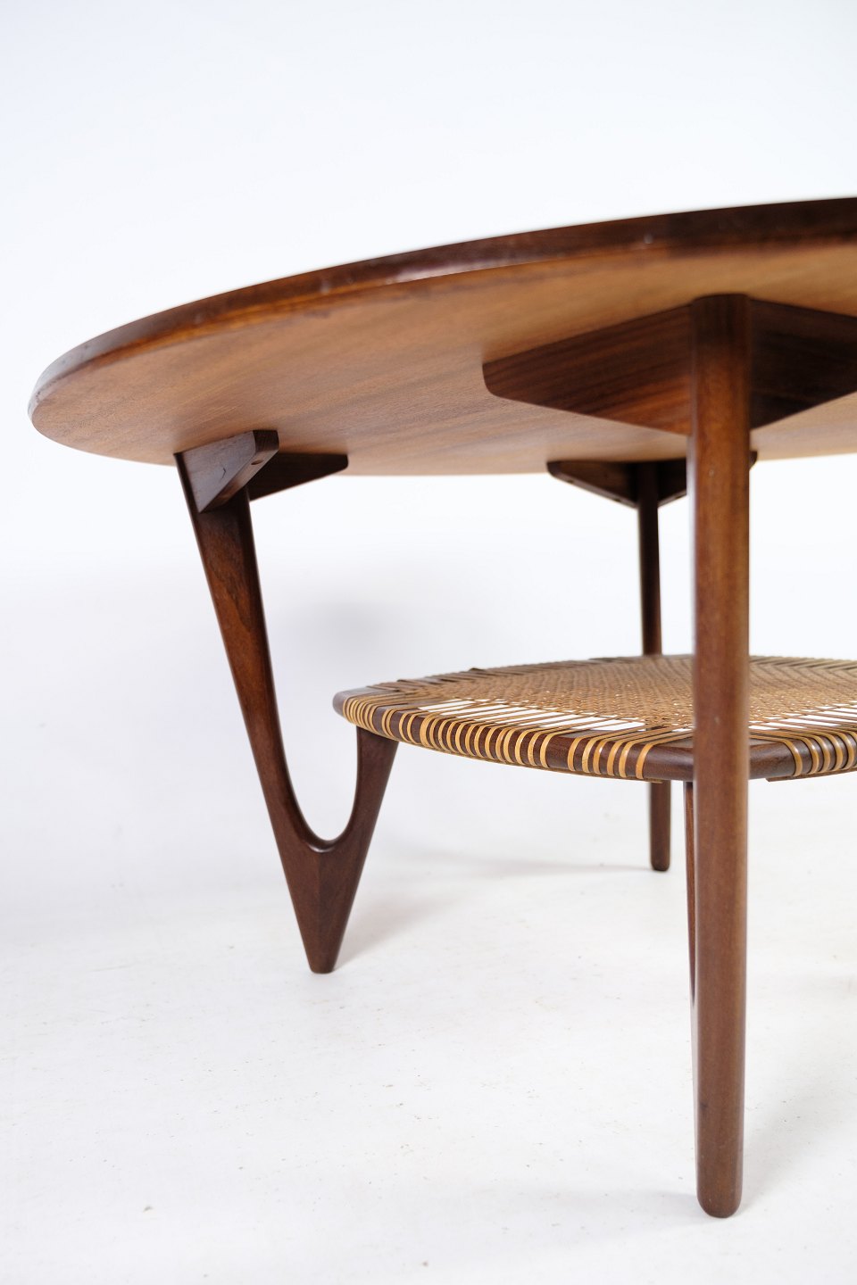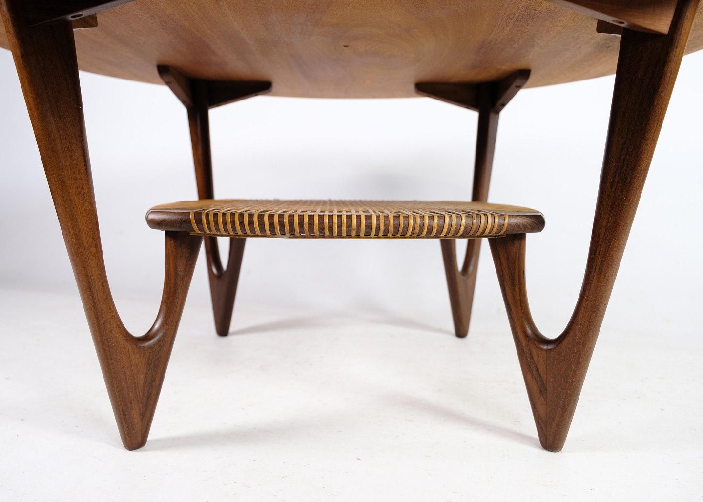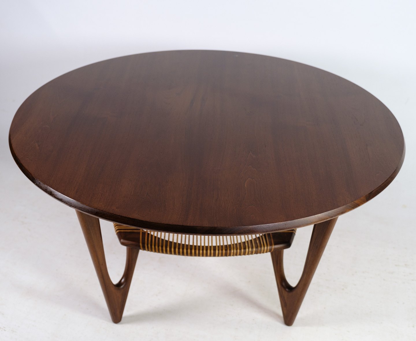 SoldRound coffee table, designed by Kurt Østervig from around the 1960s. The coffee table is made of teak and has a wicker. Appears in very nice used condition.