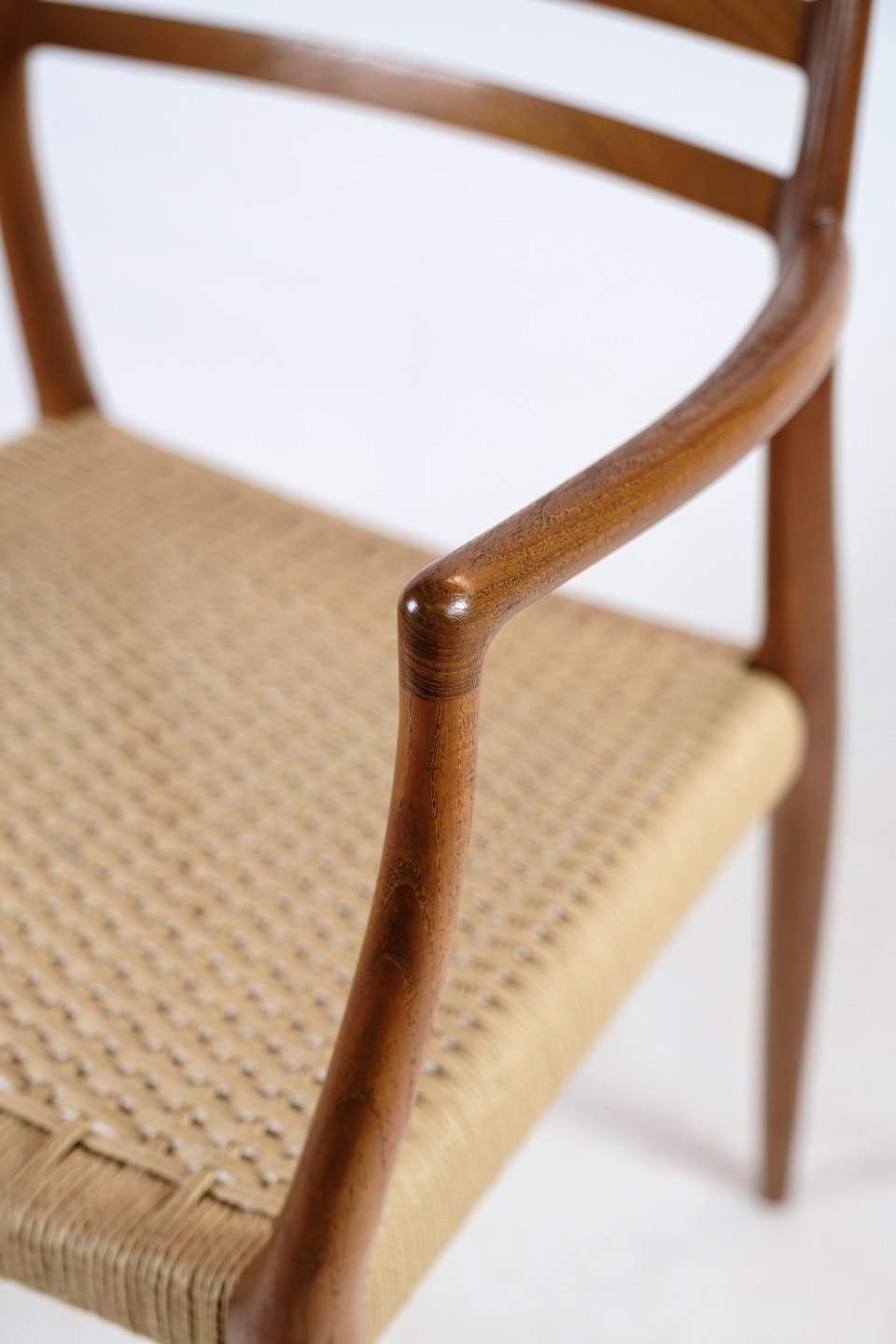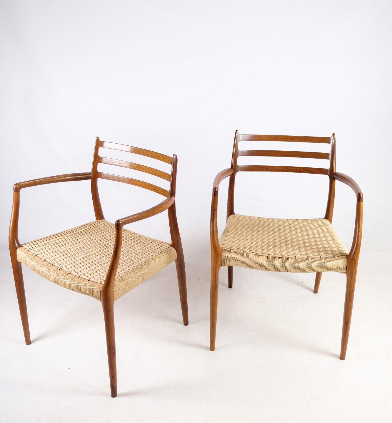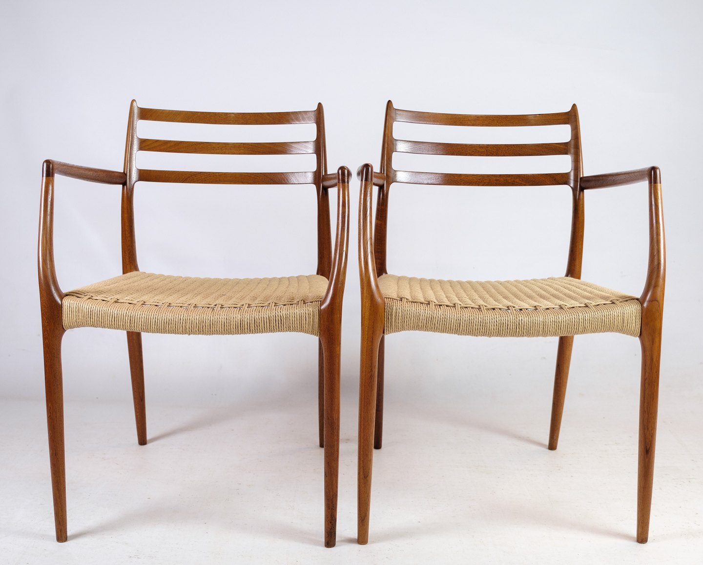 These armchairs are a rare and beautiful example of the iconic design of N.O. Møller and is an investment in a classic and timeless piece of Danish design. They will add style and elegance to any living room decor and will be enjoyed for many years to come.