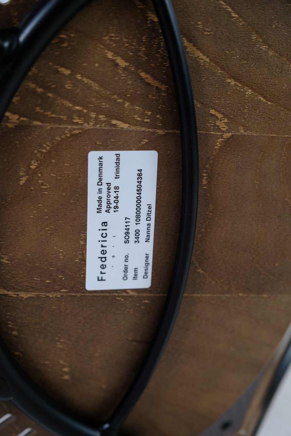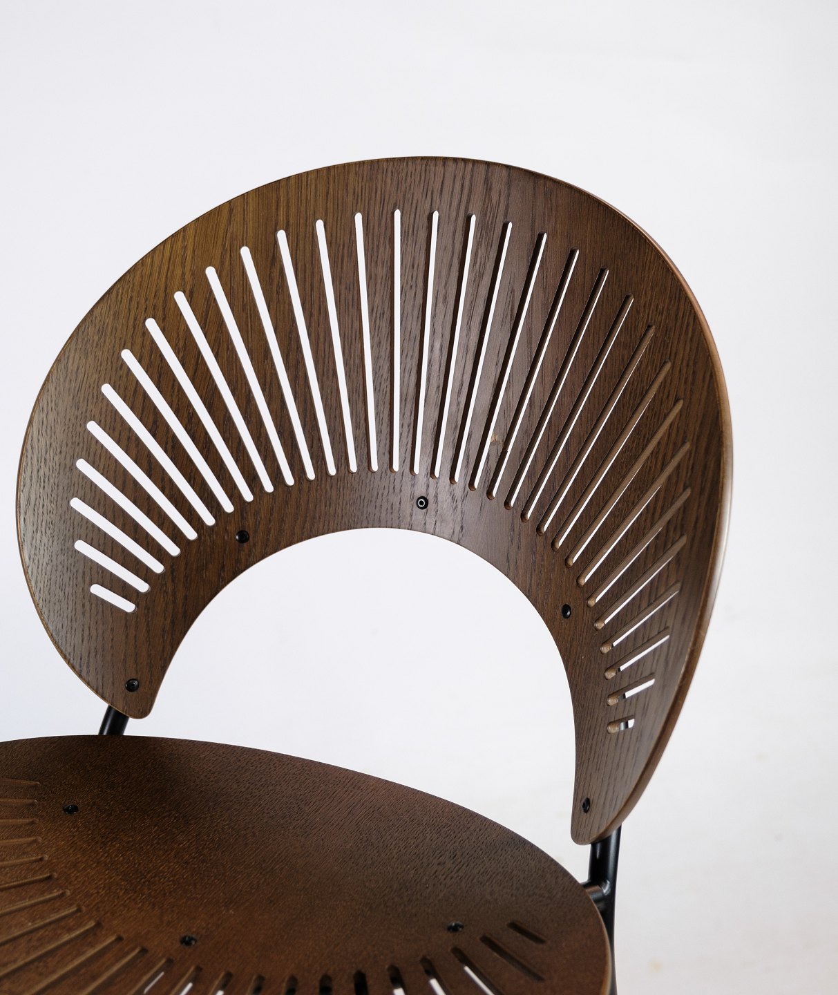 Trinidad barstol i bejdset egetræ, designet af Nanna Ditzel til Trinidad-serien i 1998. Den er fremstillet hos Fredericia Furniture. Stolen har en formidabel siddekomfort med dens kurvede ryg.