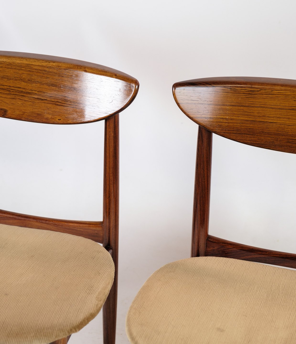 Sæt af 2 stole, designet af Peter Hvidt & Orla Mølgaard-nielsen fremstillet af Orum møbelfabrik i 1960'erne. Står i meget fin stand med lyst betræk.