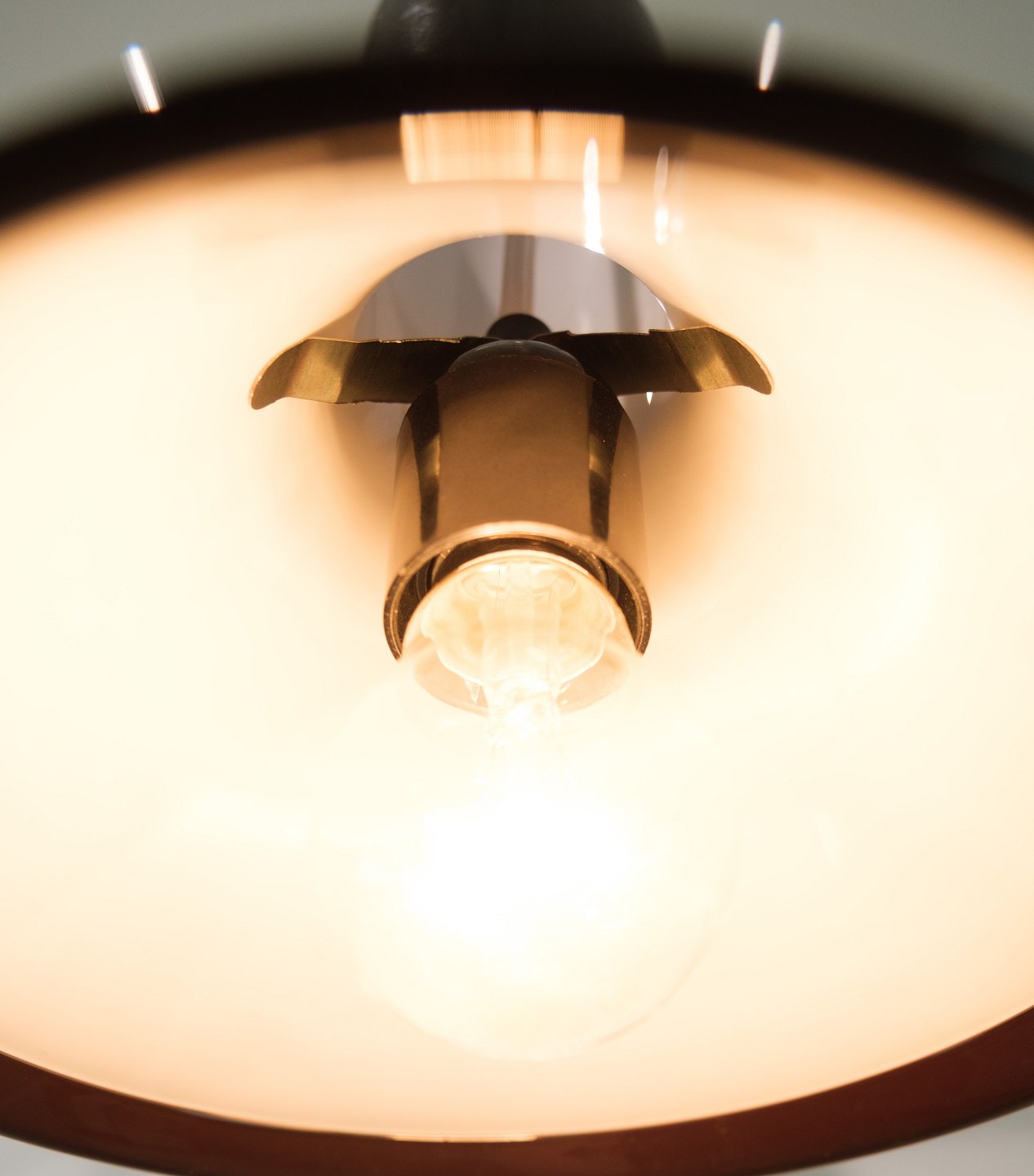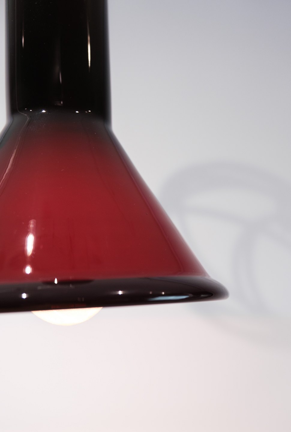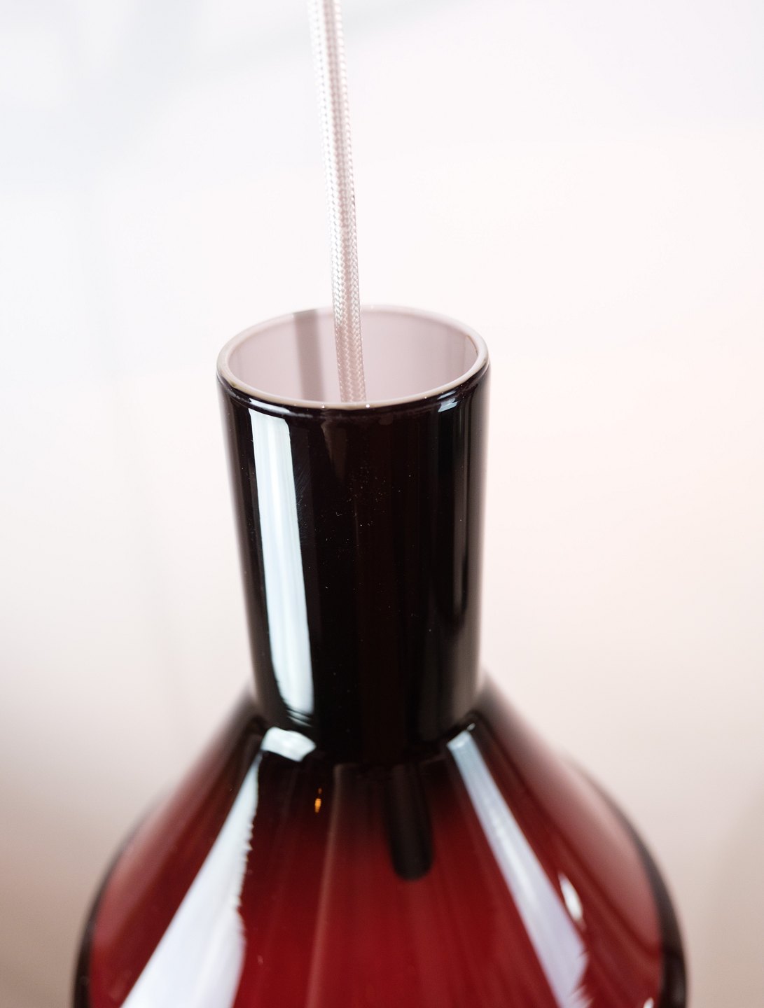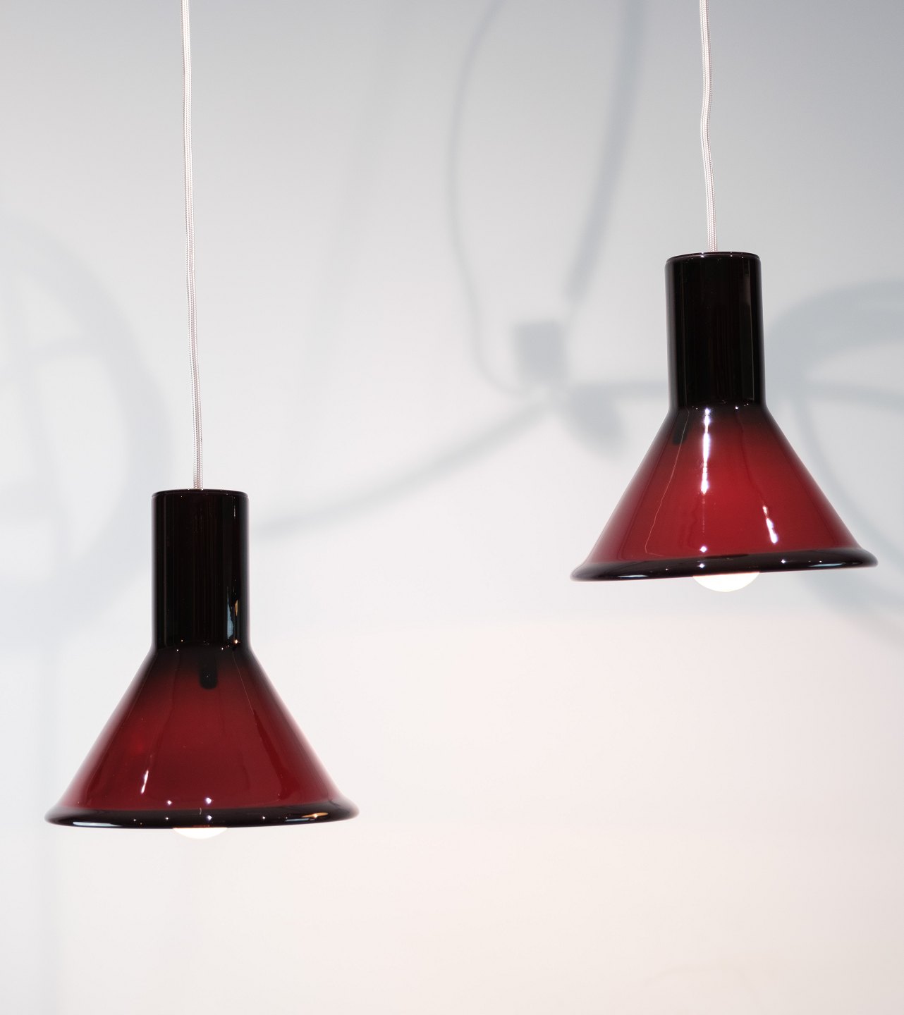 SoldA pair of pendants from Holmegaard in reddish colors from around the 1950s.